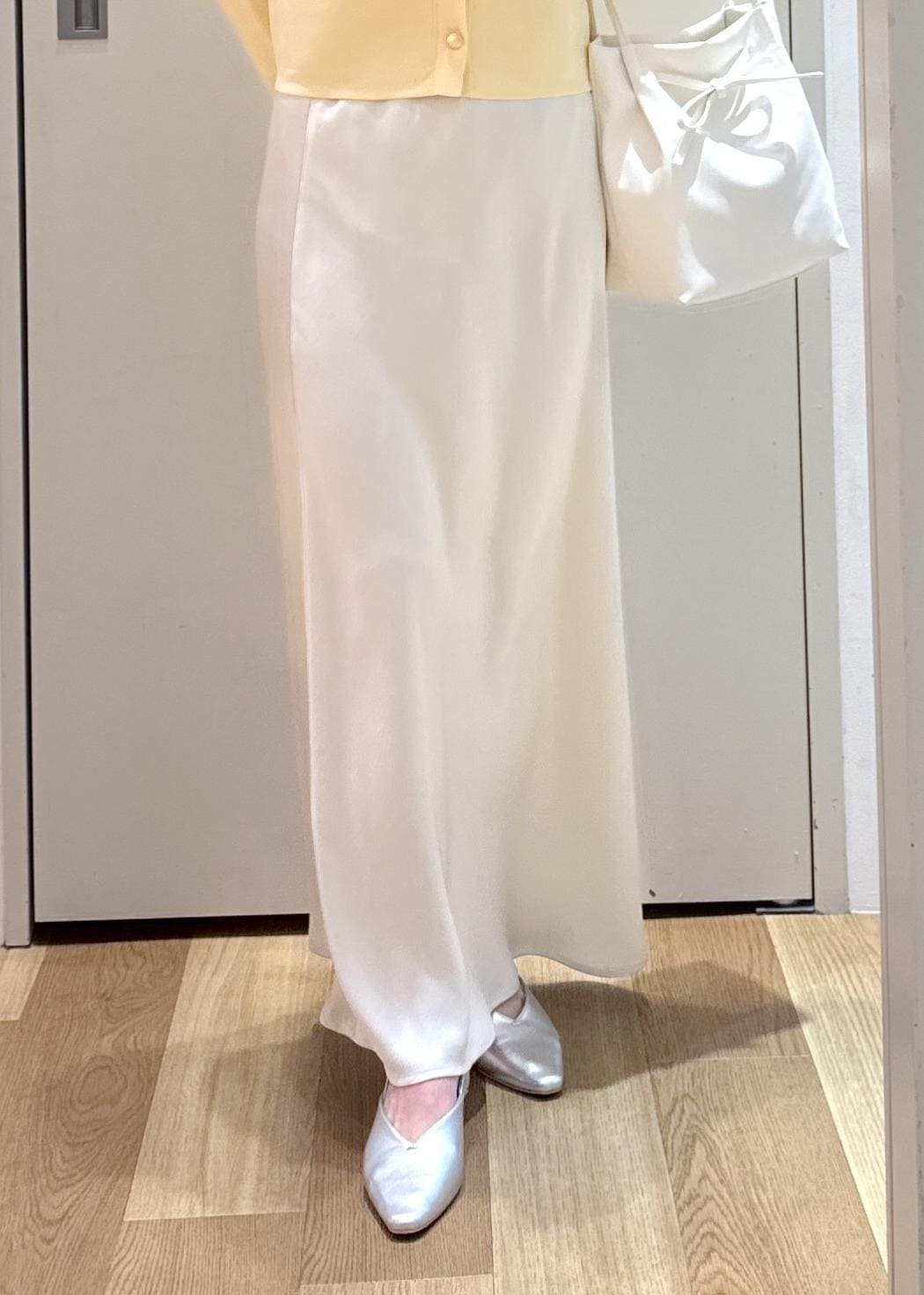 小物は春らしく白やシルバーといった明るいカラーをチョイス。