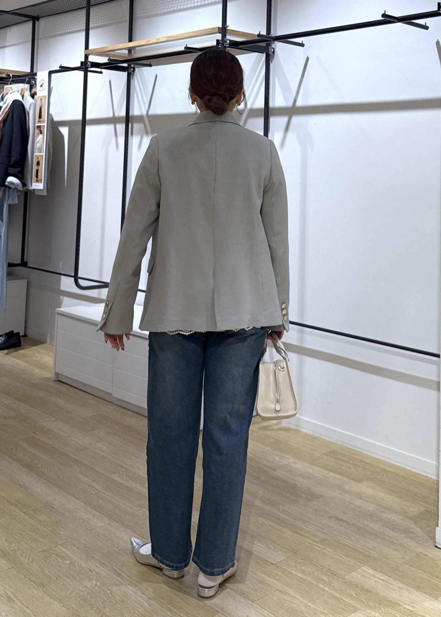 少しメンズライクやカジュアルにも使いたい方はLサイズもおすすめです◎オーバーサイズになりすぎず、着丈などもう少し長めに持って着用できます。
