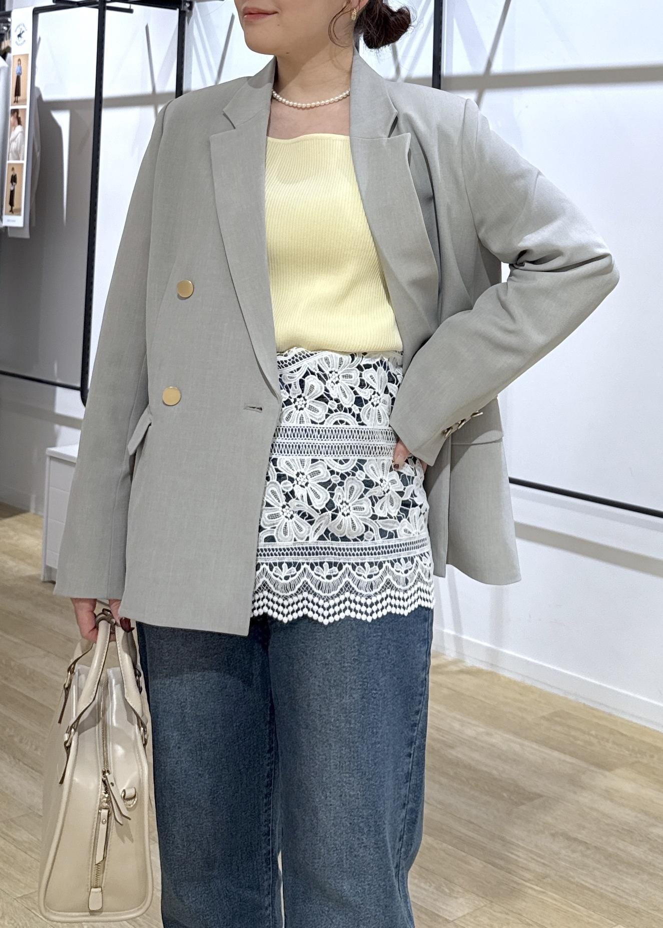 腰巻きアレンジしてトレンド感のあるスタイリングにしたところがポイントです◎