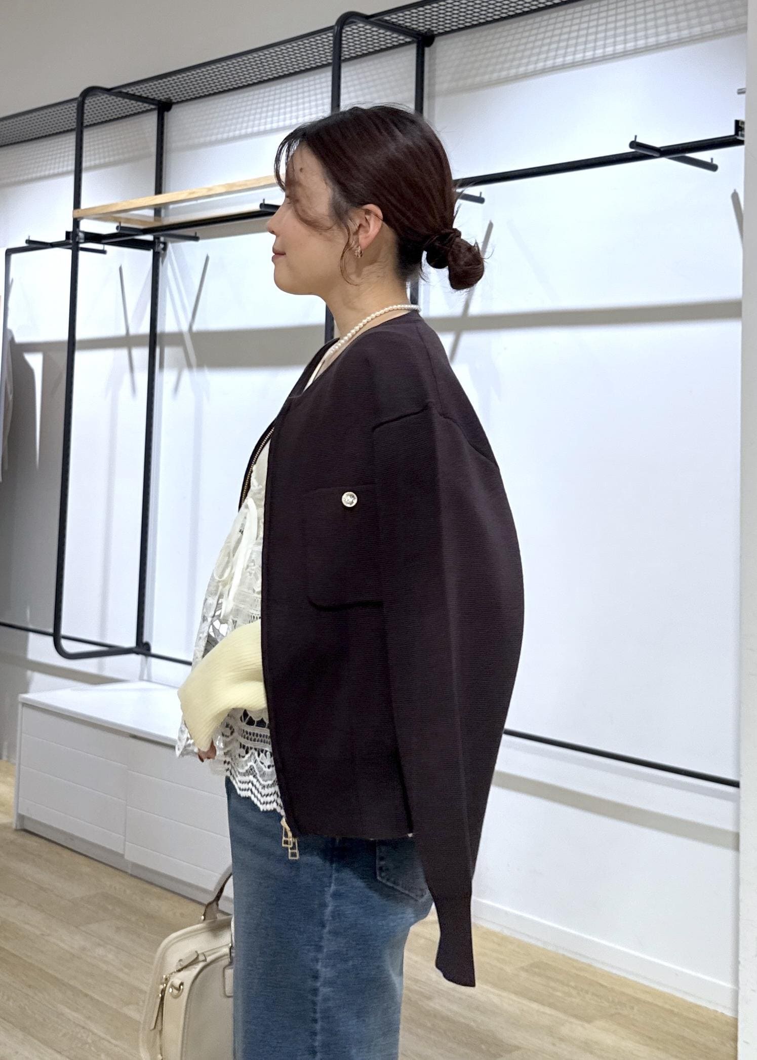 ミラノリブのカーディガンをジャケット風に