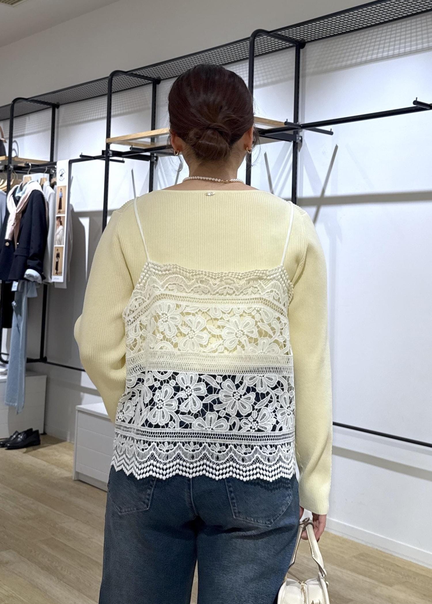 イエローのニットが少し落ち着いた印象に見えるので