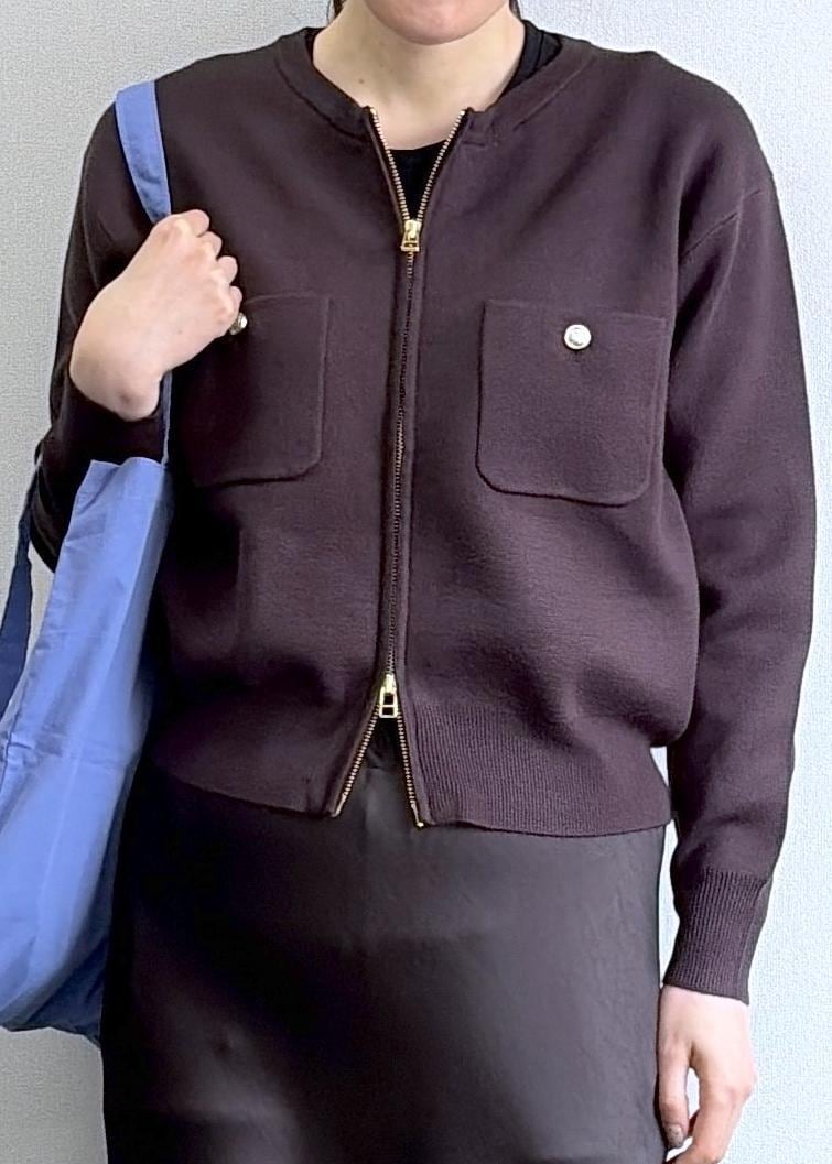 2BUY10%OFFROPÉ PICNICミラノリブダブルジップニットカーディガンダークブラウン / F¥6,490レビュー丈は腰までのすっきりした長さで、幅はゆったり着こなせるコンパクトな印象のカーディガン。柔らかなニット素材なのでシャツやカットソーを重ねても着膨れしません。