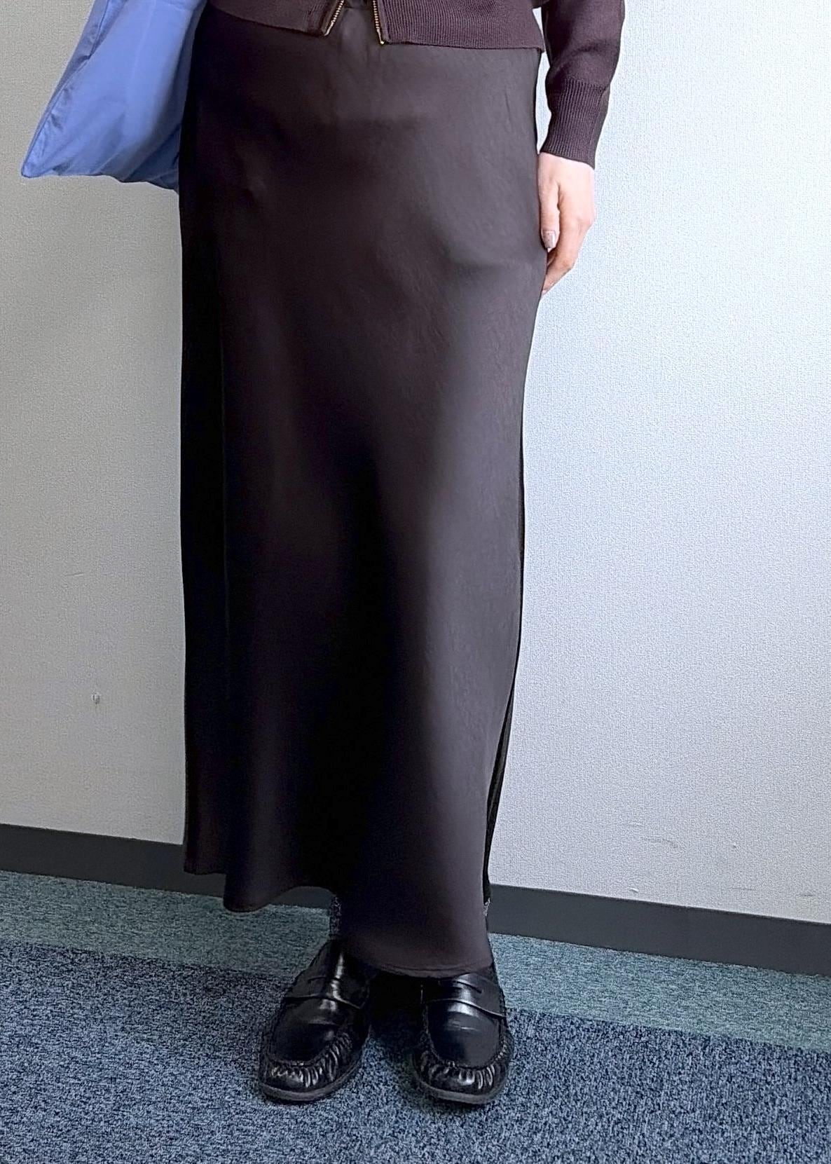 2BUY10%OFFROPÉ PICNIC細見えバイアスサテンスカート/イージーケアダークブラウン / F¥5,841レビューさらりとオチ感ある素材なので、柔らかな動きが女性らしいスカートです。ストレッチが効いているのでフィット感はありますが楽な履き心地です。