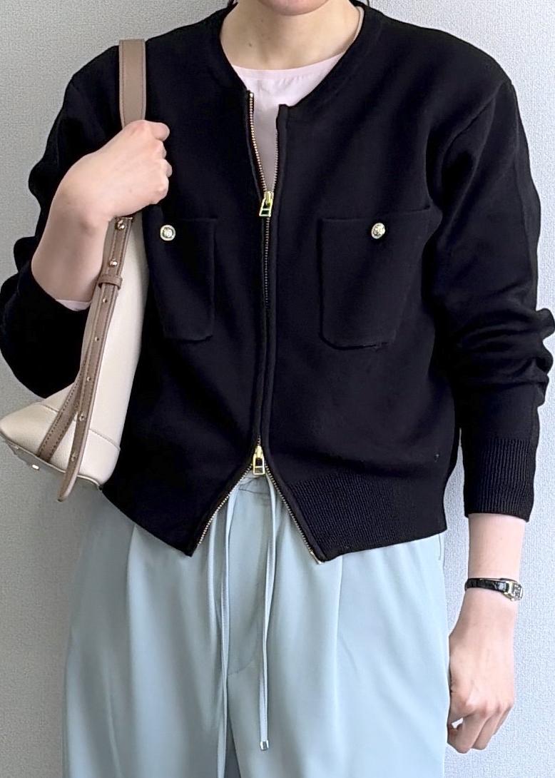 2BUY10%OFFROPÉ PICNICミラノリブダブルジップニットカーディガンブラック / F¥6,490レビュー丈は腰までのすっきりした長さで、幅はゆったり着こなせるコンパクトな印象のカーディガン。柔らかなニット素材なのでシャツやカットソーを重ねても着膨れしません。