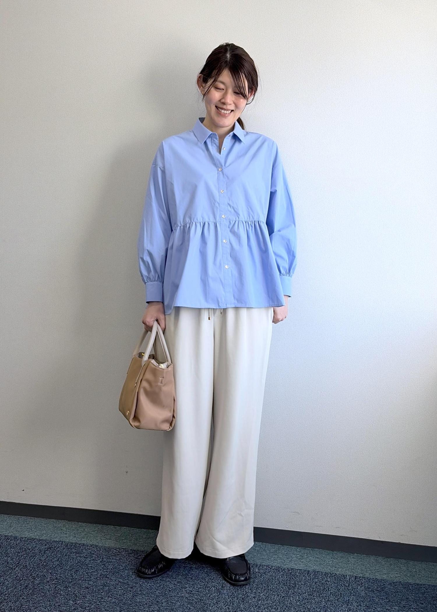 ROPÉ PICNICペプラムシャツブラウス/UVカット・防シワブルー / F¥4,994レビュー腰回りがちょうど隠れる長さで、ふんわりゆったり着られるサイズ感です。シワになりにくい素材なので、お手入れも楽ちん。