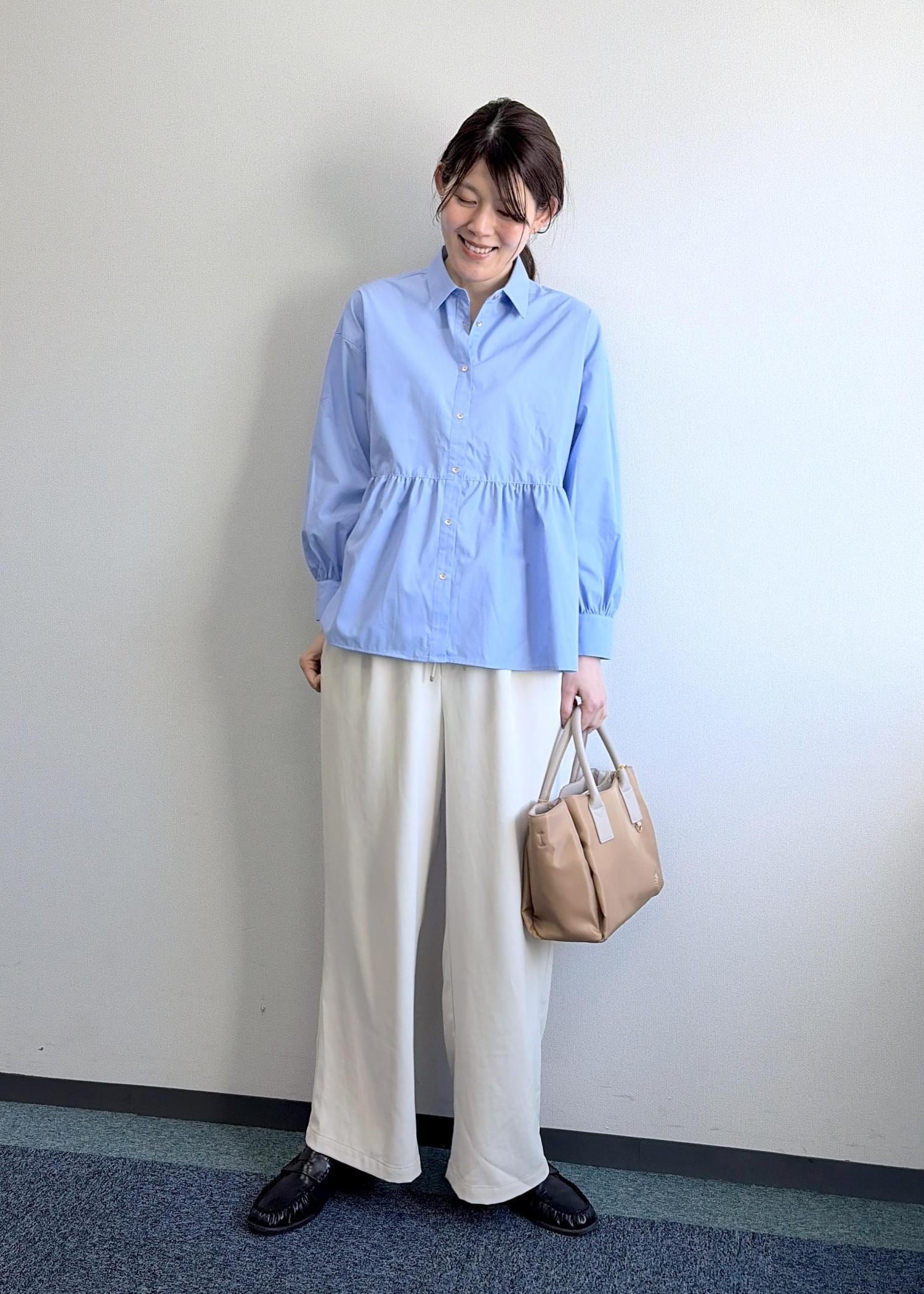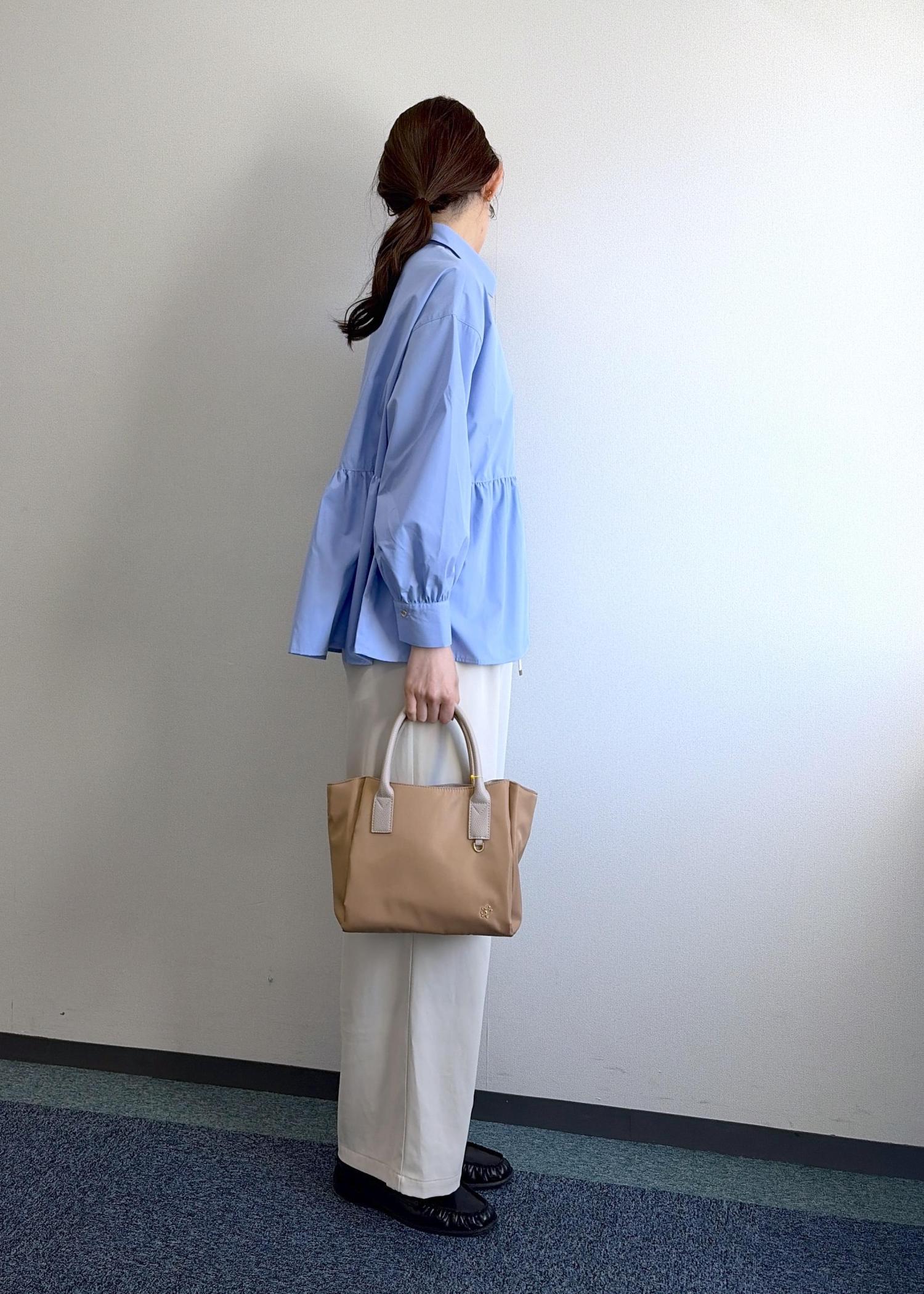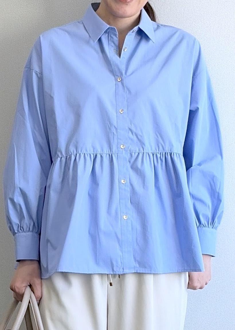 高い位置のウエストラインでペプラムのかわいいシルエットを楽しめます。一枚で着こなしてもおしゃれに、インナーでも羽織っても使える優秀シャツです!