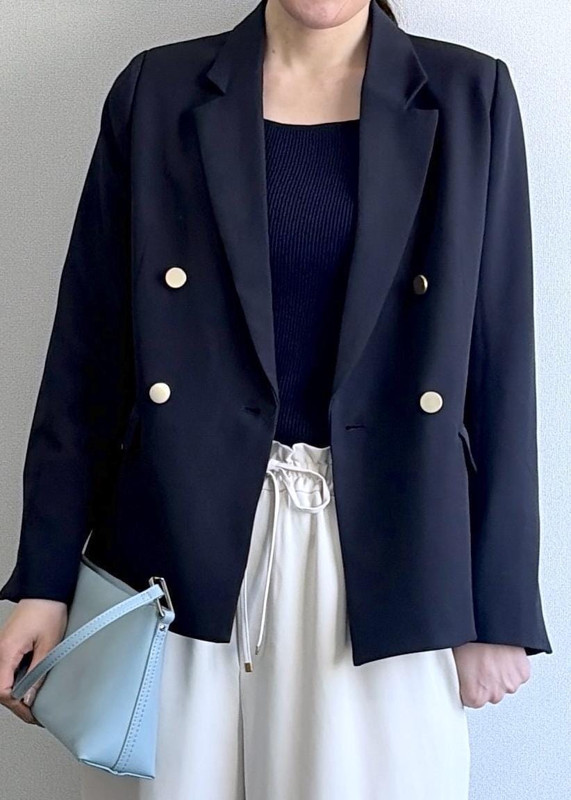 ROPÉ PICNICクリアツイル金ボタンジャケット/セレモニー・セットアップ対応ネイビー / L¥8,098レビュー金釦のダブルジャケットはオンオフ使える優秀アイテム!薄い肩パッドが入っていますが、肩幅のある私でも気にならず綺麗に着こなせました!