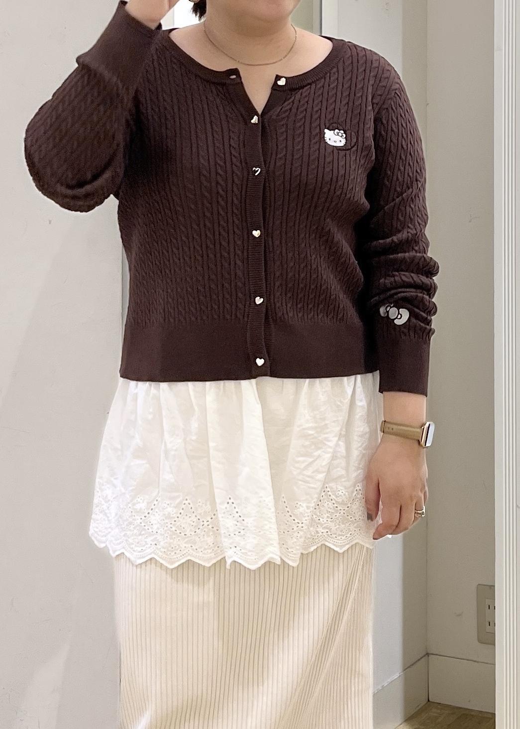 【ROPE' PICNIC×ハローキティ】ワッペンケーブルニットカーディガン