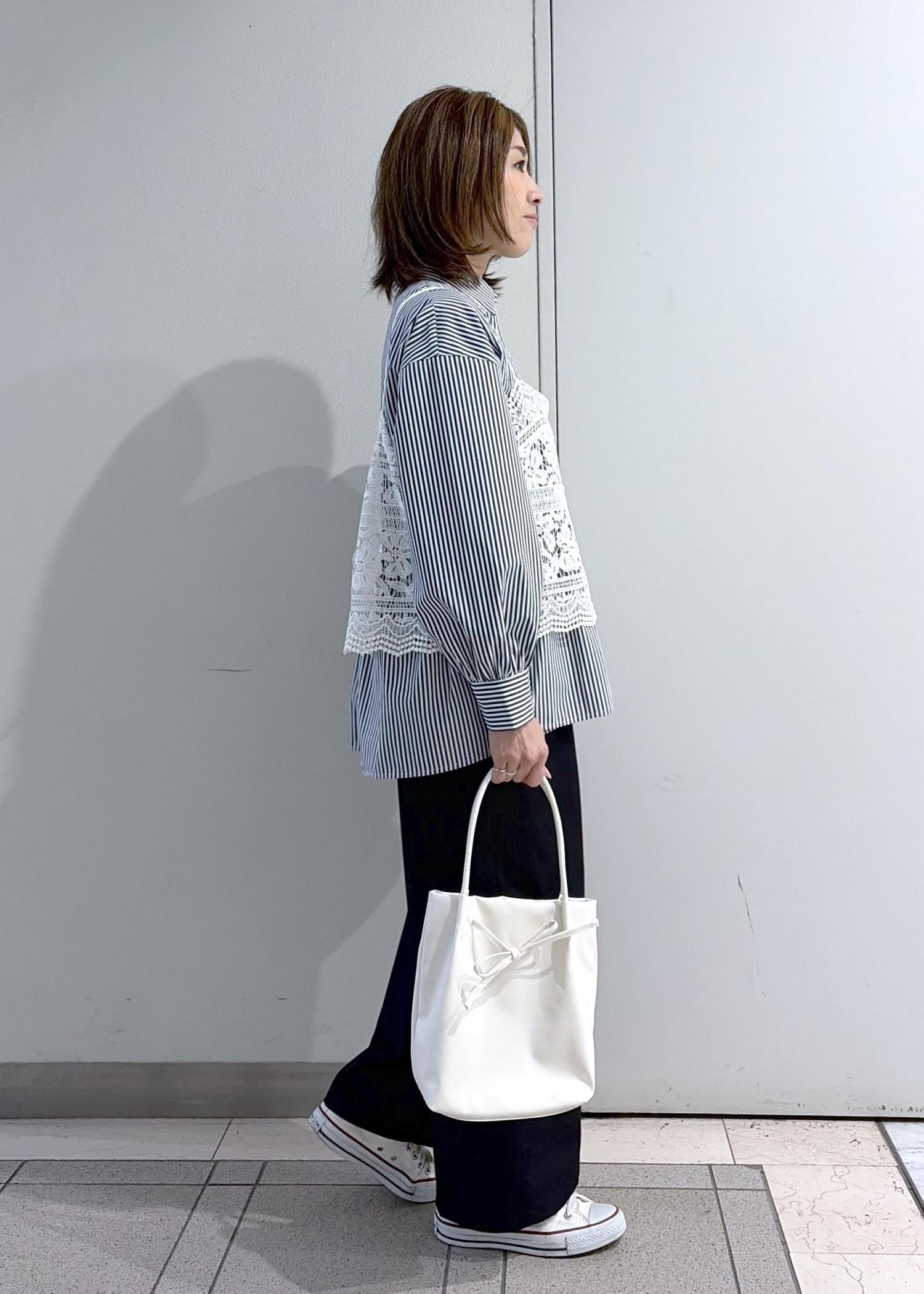 ハリのある素材感で綺麗めアイテムとも合わせやすいデザインです。