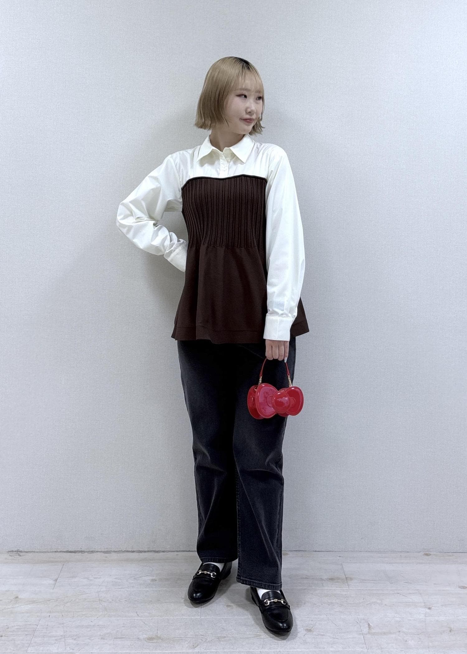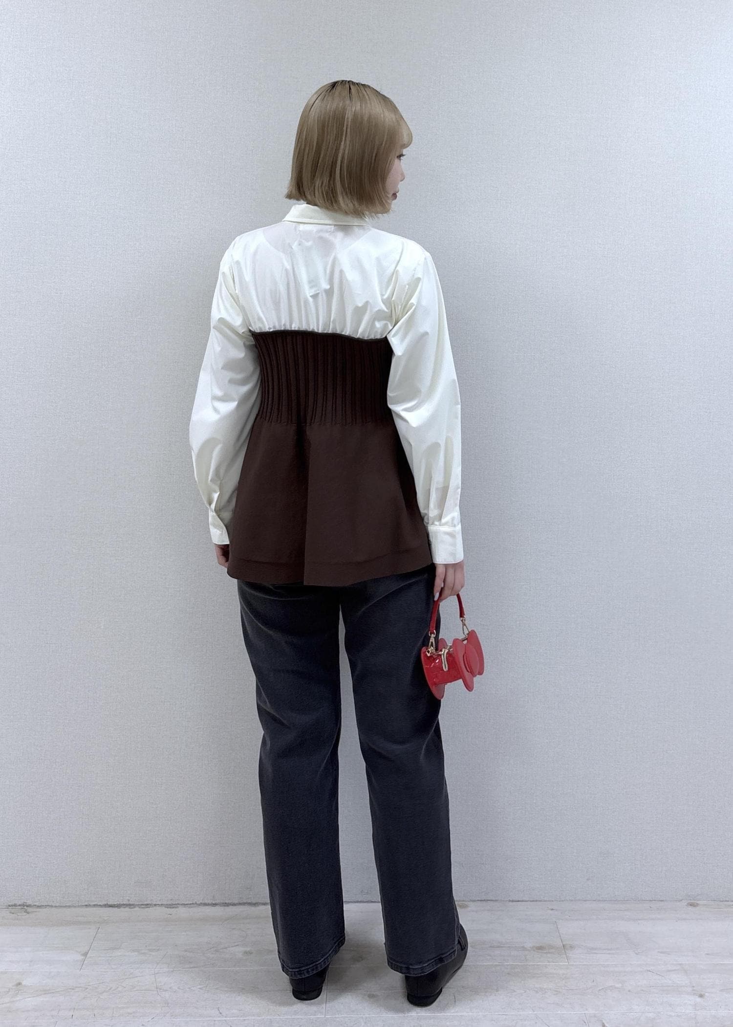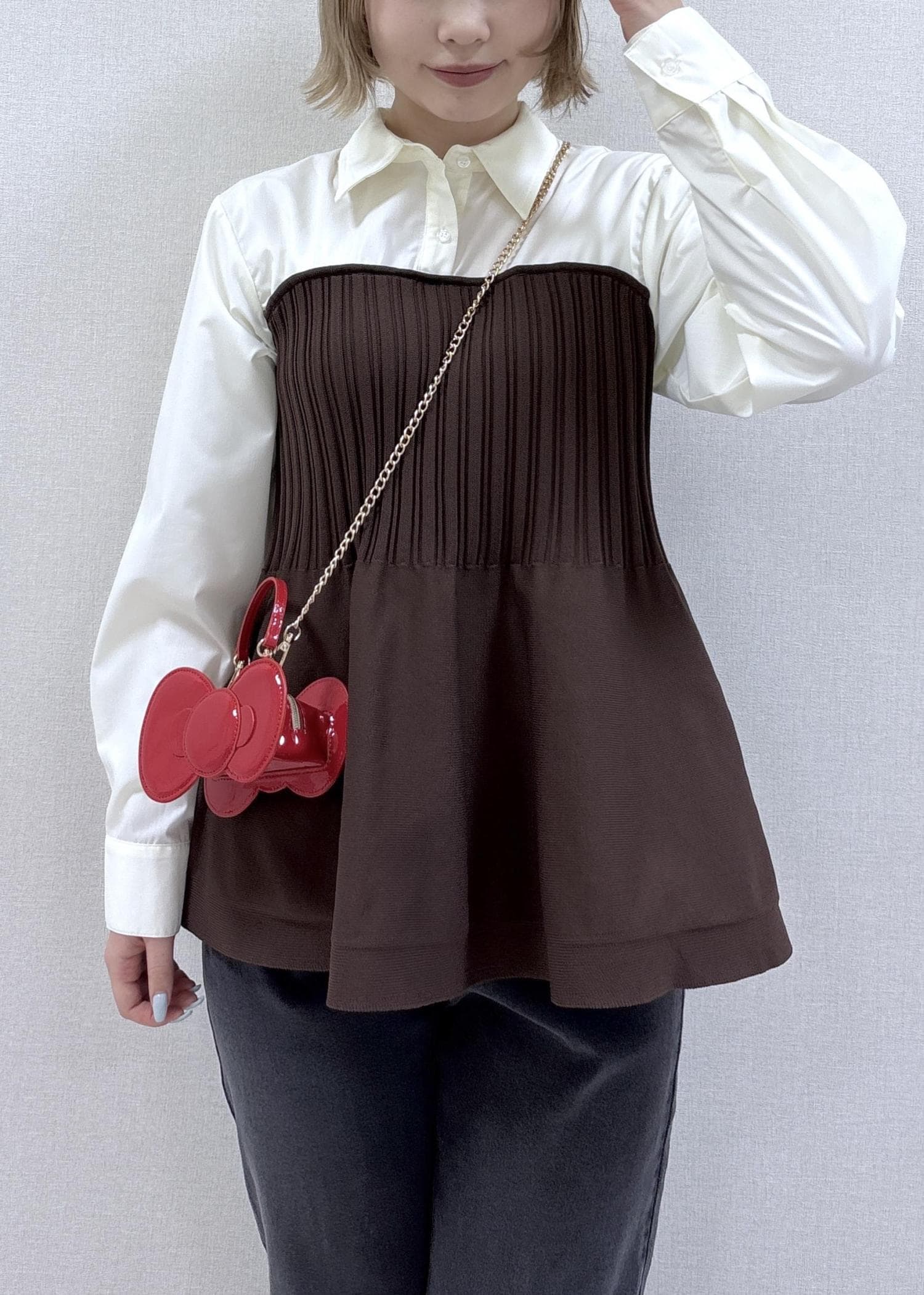 2BUY10%OFFROPÉ PICNICシャツドッキングペプラムニットブラウン / F¥5,995レビュードッキングのデザインで、1枚で着映えするトップスです。