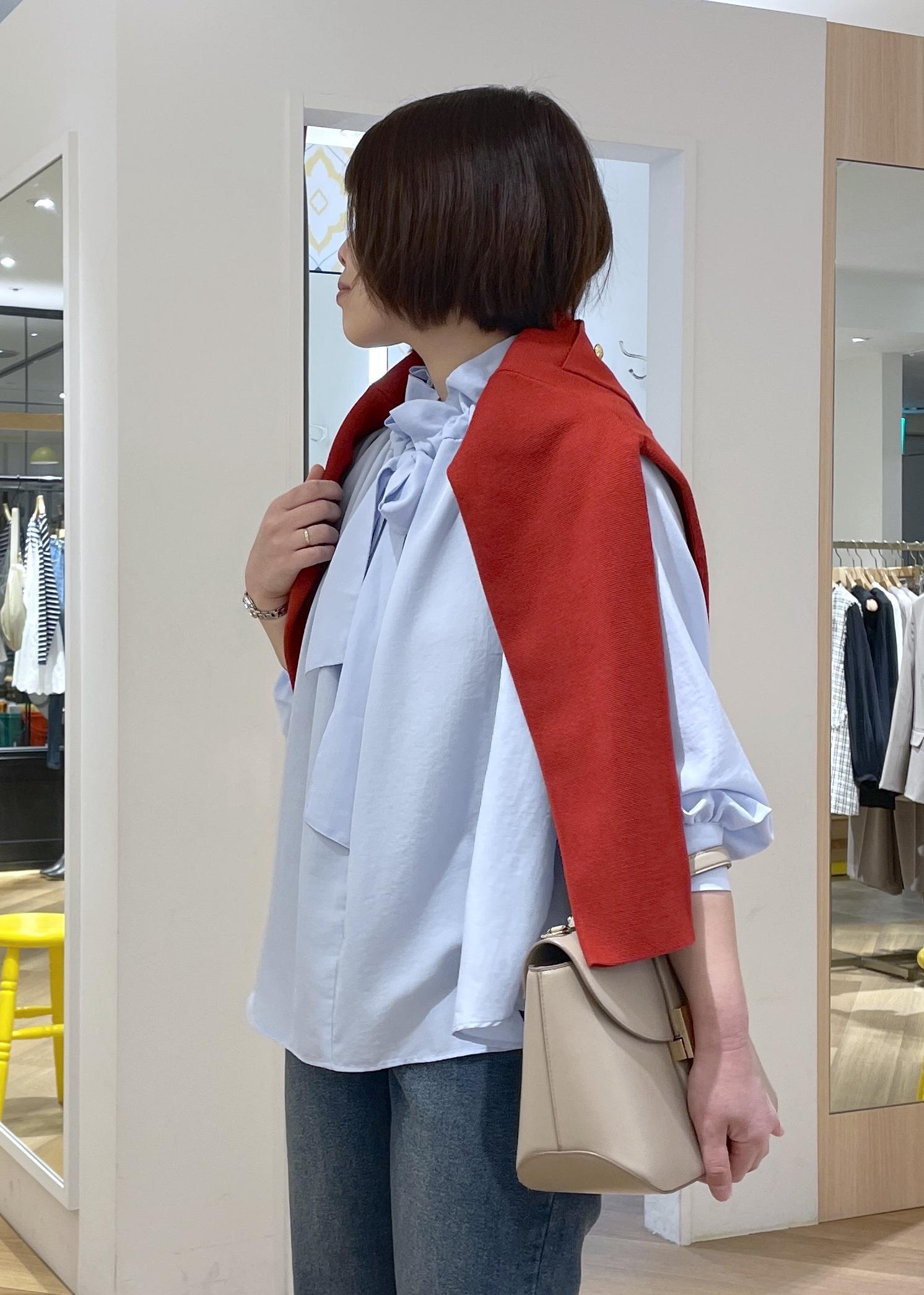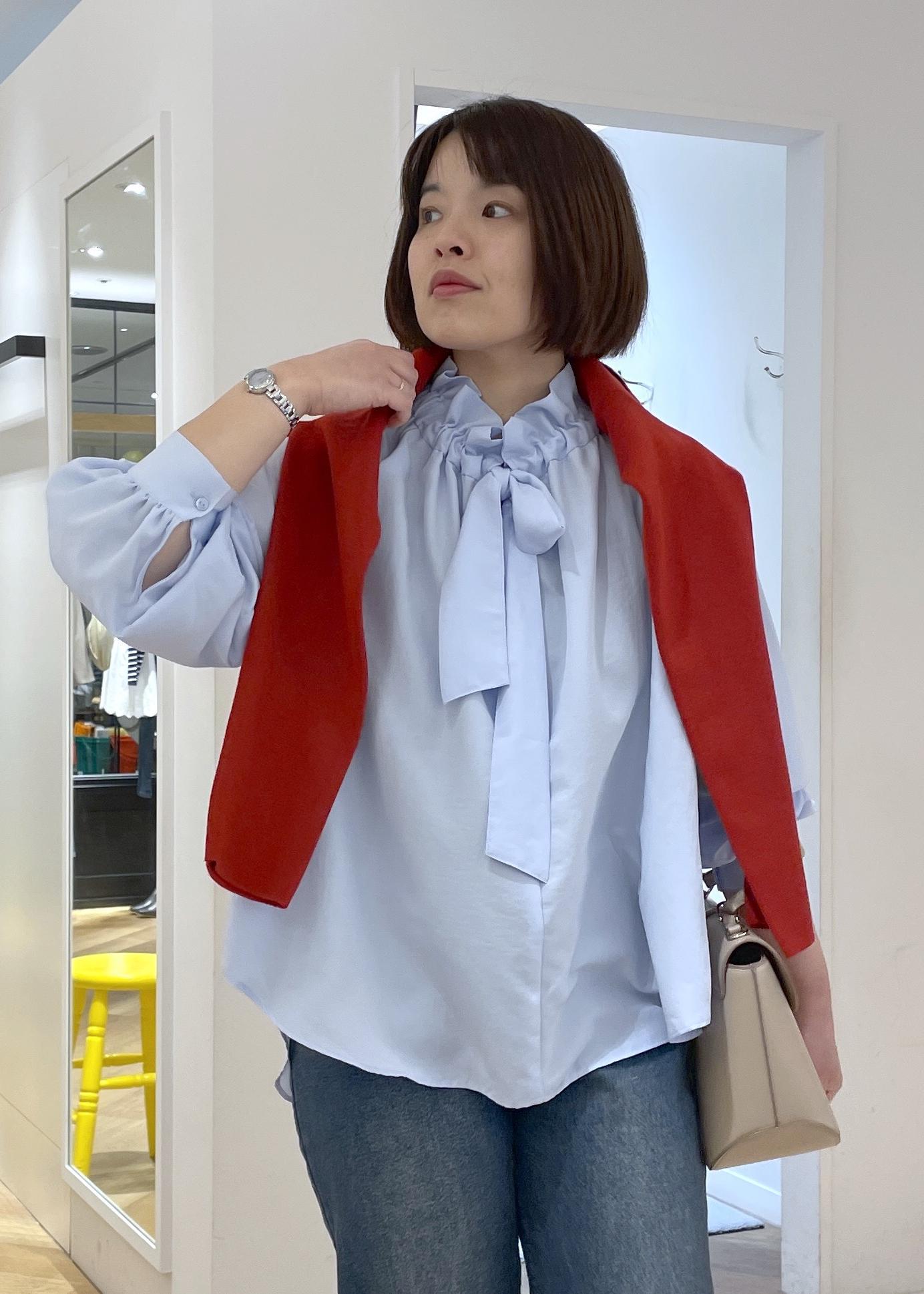 ROPÉ PICNICネックコンシャスデザインシャツサックス / F¥5,995レビュー軽く柔らかな素材のシャツでニットやジャケットのインナーに合わせても、ごわつかずに合わせて頂けます。襟元のフリルとボウタイが華やかさのあるシャツです。肩回りや身頃はゆったりとしたサイズ感です。