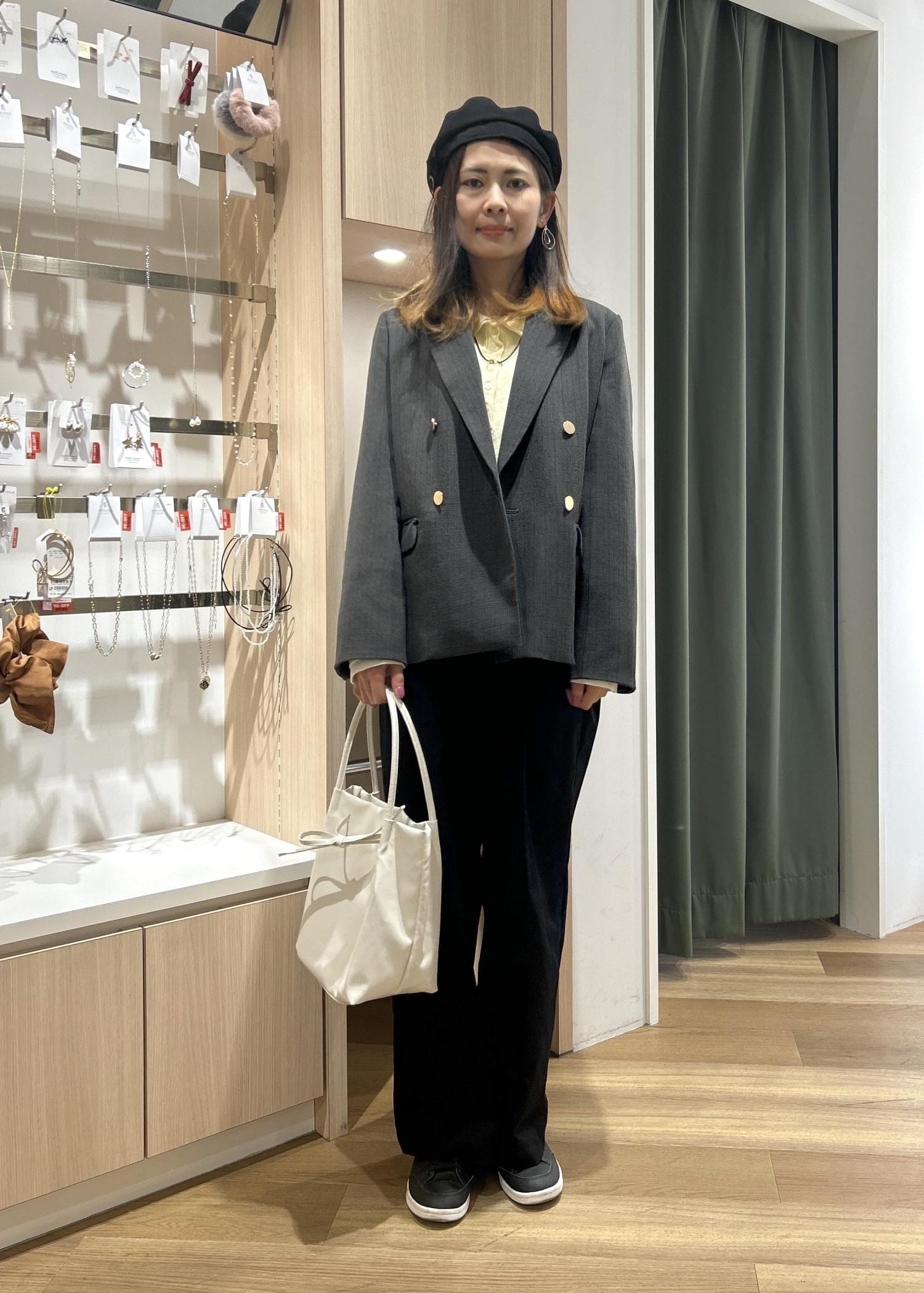 (帽子、スニーカー、アクセサリーは私物です)