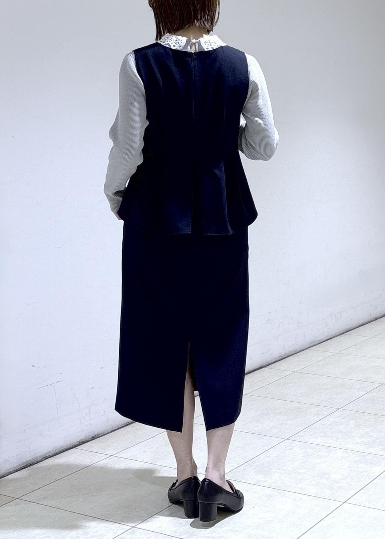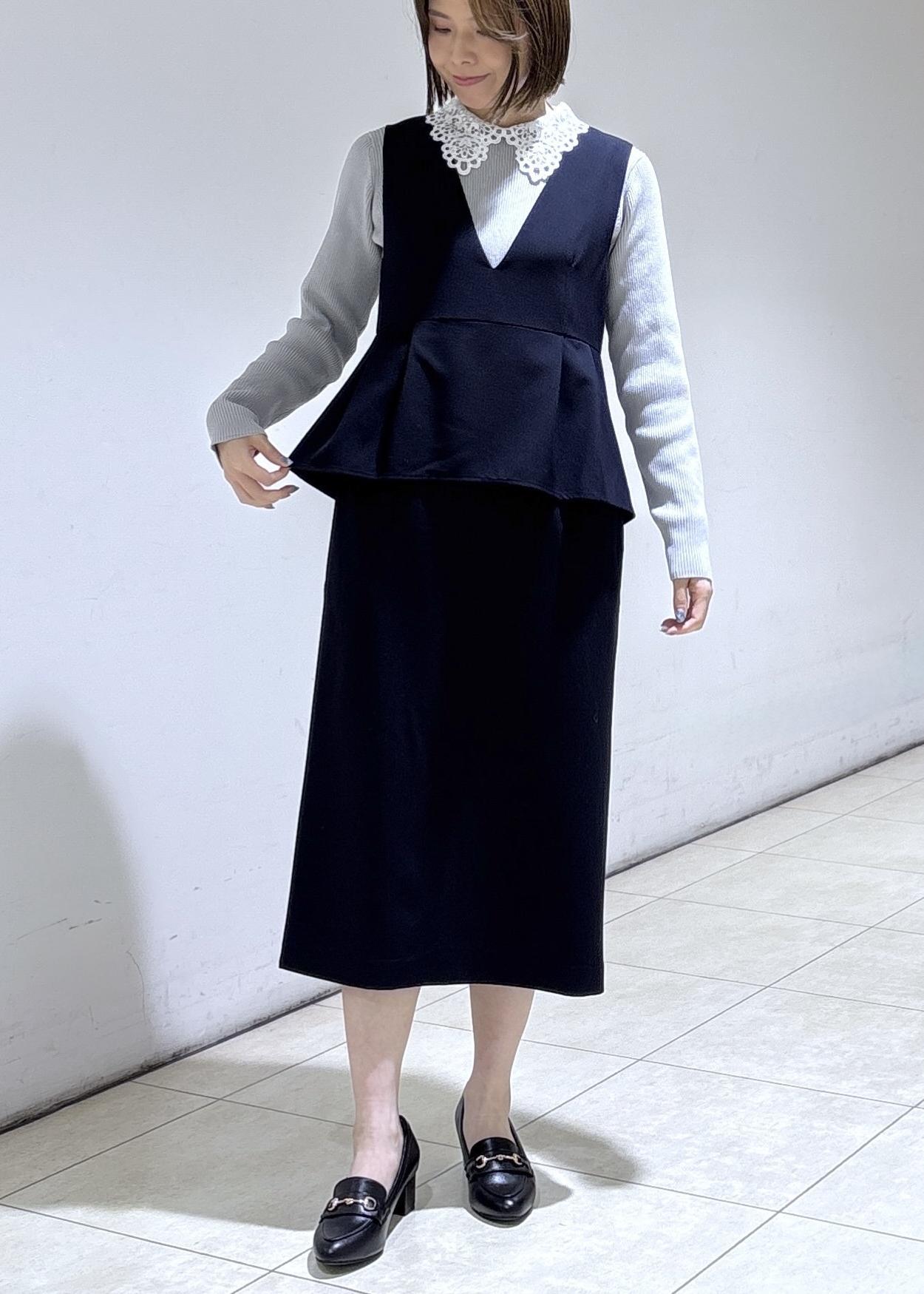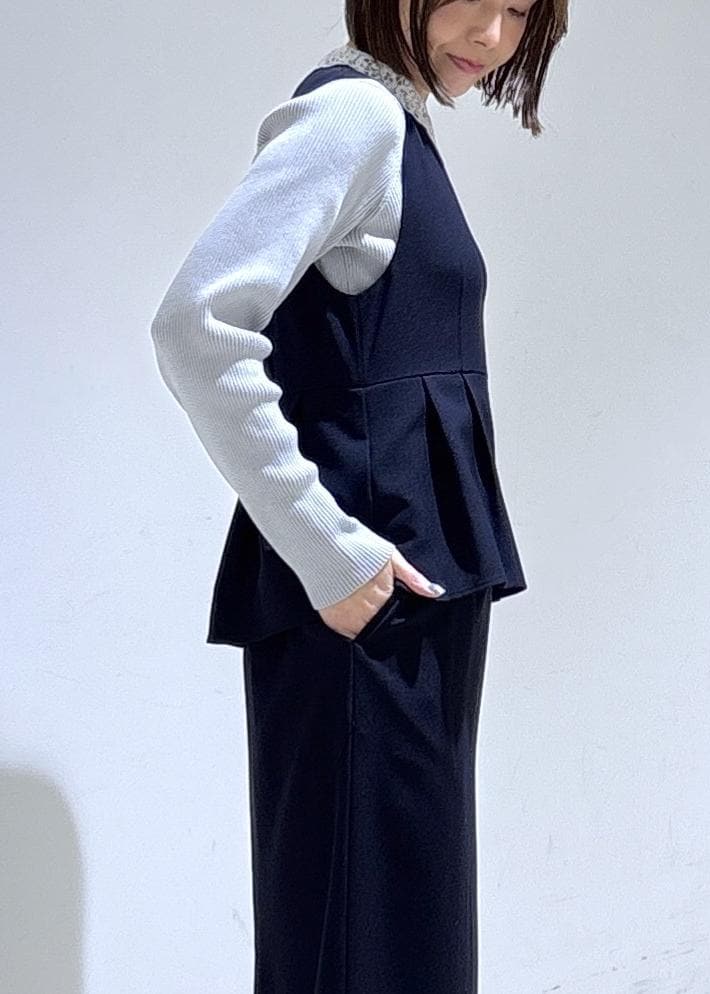 ペプラムデザインがおしゃれなネイビーのジャンスカに