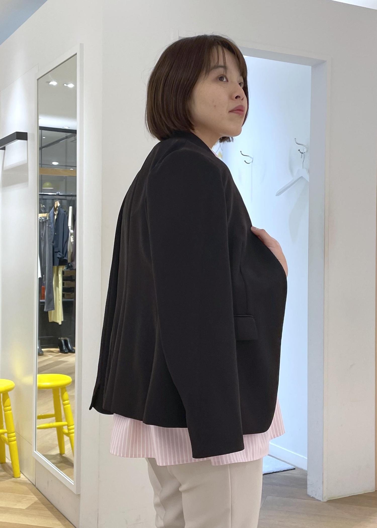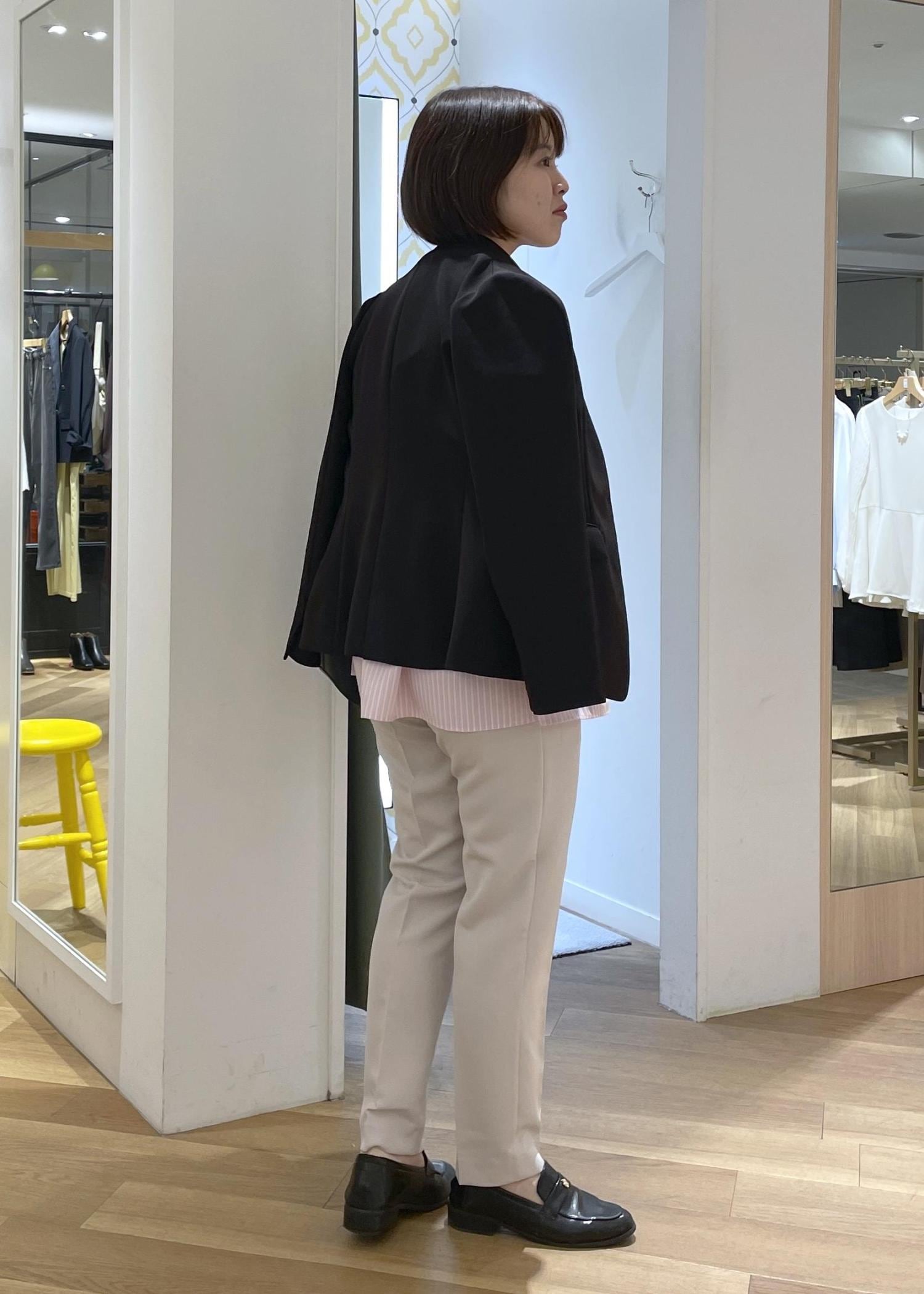 淡いカラー合わせだったので、ブラックのジャケットを合わせて引き締め役に◎