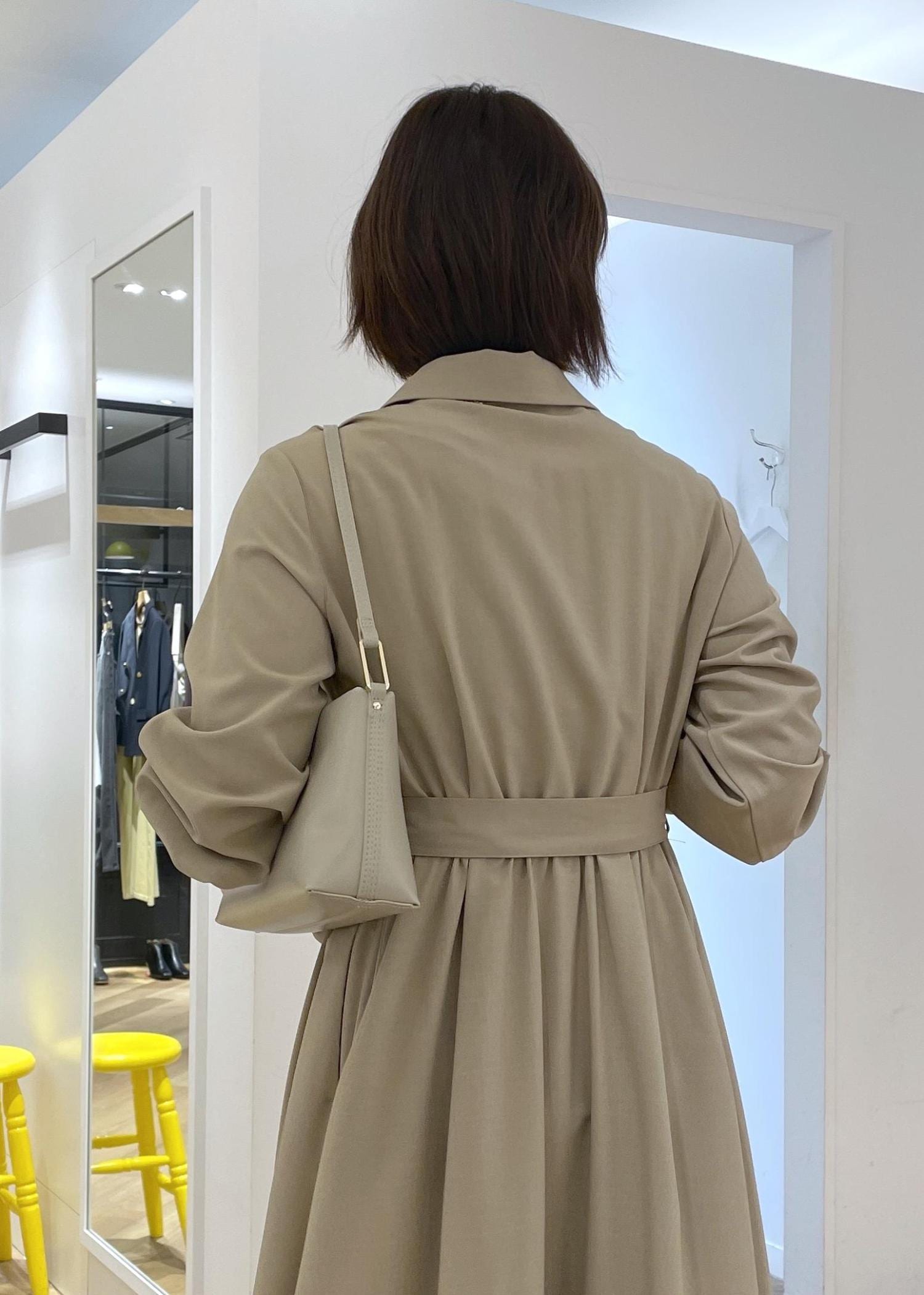 バッグは統一感のあるベージュを、足元は白のヒールアップローファーを合わせて、きちんと感もありつつ軽やかな印象で合わせました◎