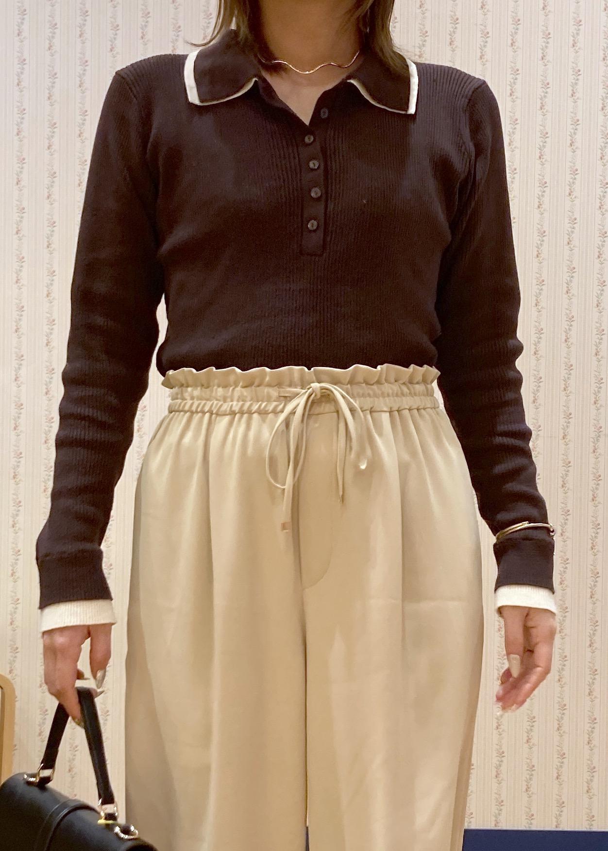 ピタッとしすぎないリブニットで程よく体のラインを拾い、女性らしい雰囲気で着れます!