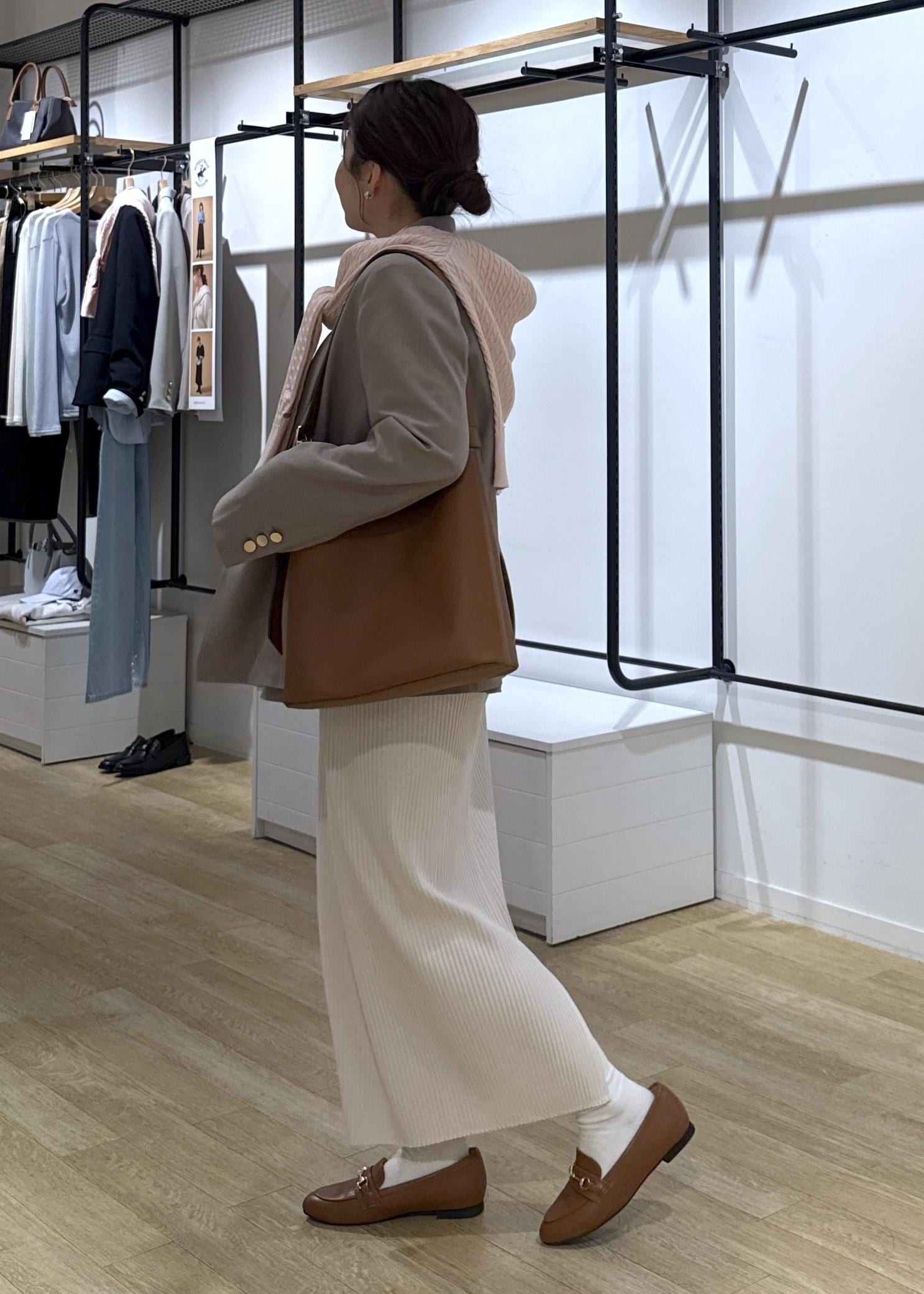 普段にもお仕事にも使えるアイテムで、お仕事にも使えるスカートコーデにしてみました!