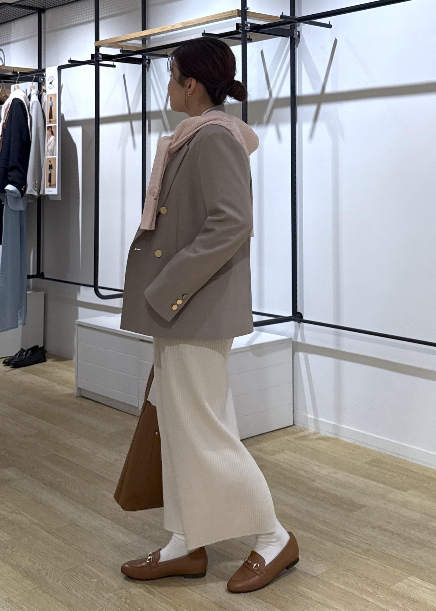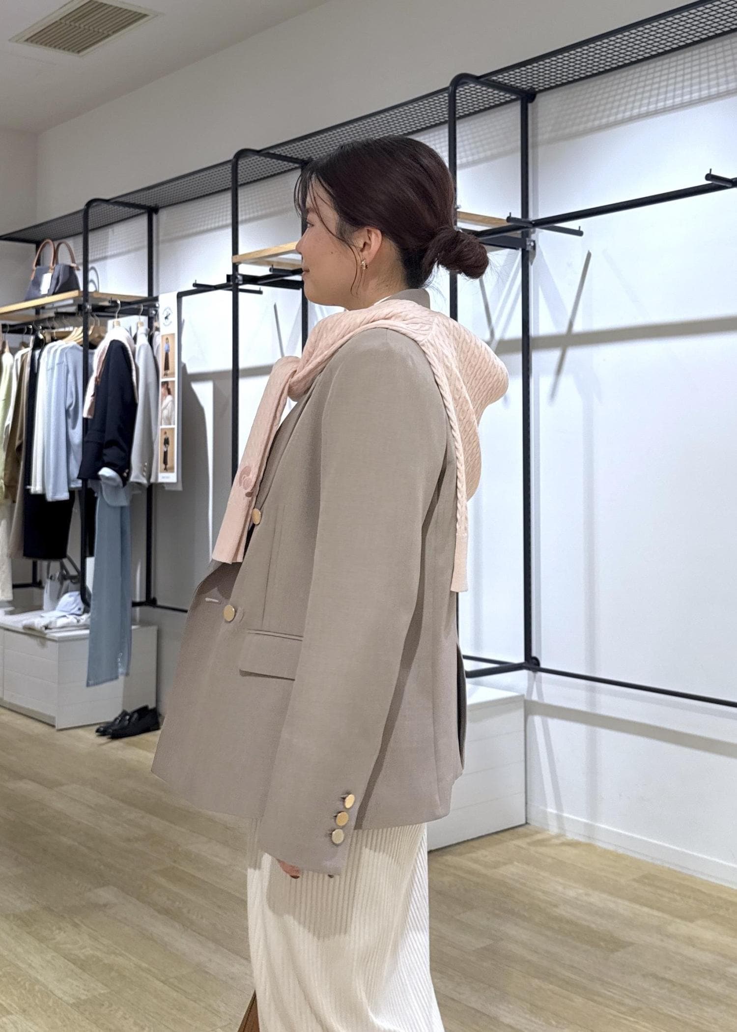 少しメンズライクやカジュアルにも使いたい方はLサイズもおすすめです◎オーバーサイズになりすぎず、着丈などもう少し長めに持って着用できます。 -