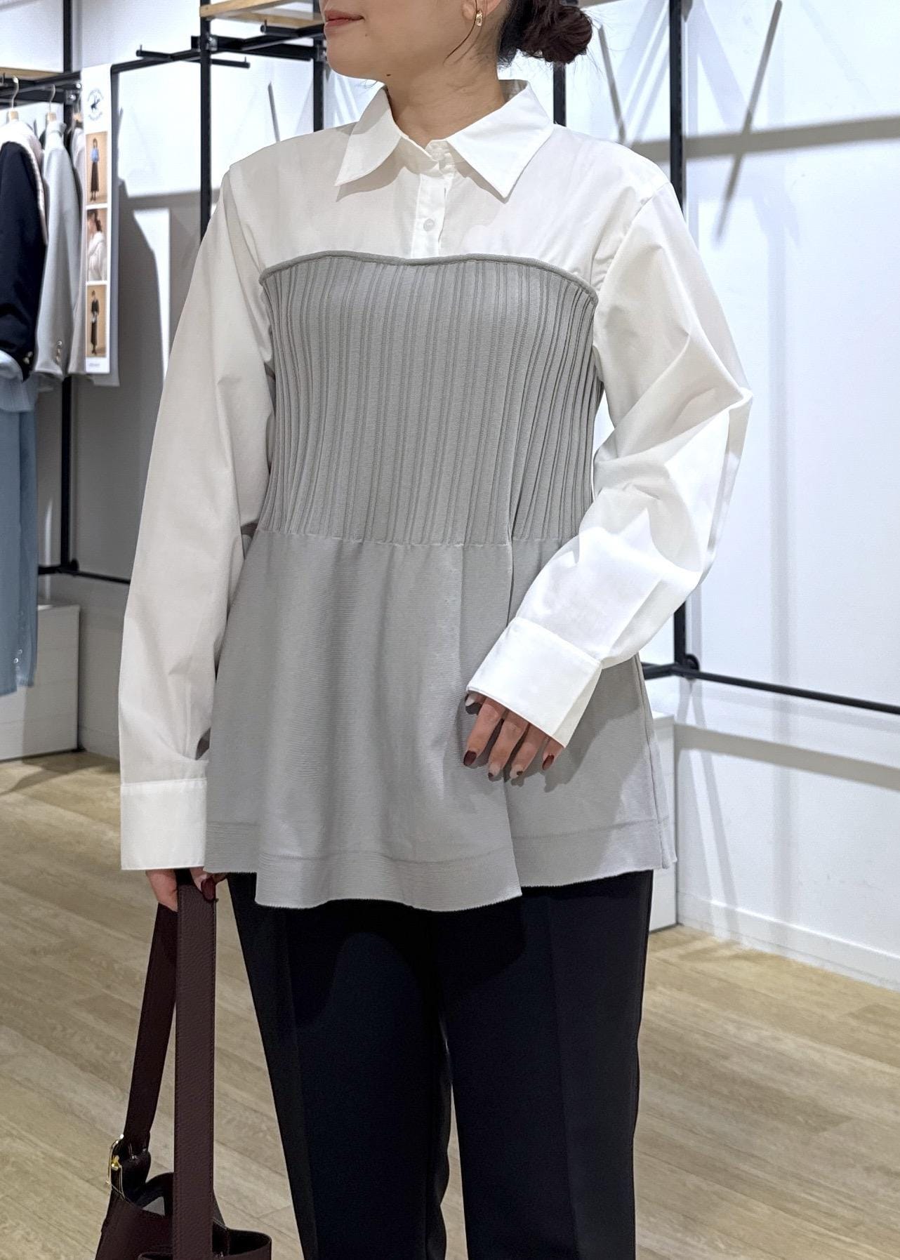 ROPÉ PICNICシャツドッキングペプラムニットライトグレー / F¥5,995レビュー着丈がヒップが隠れる長さです。