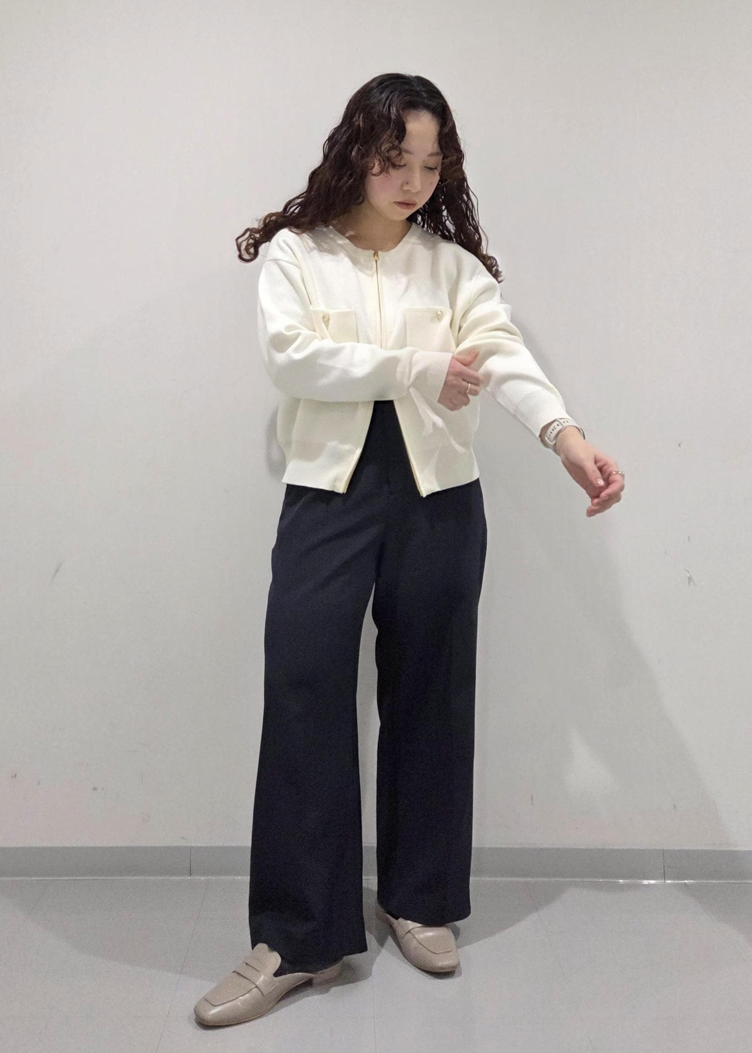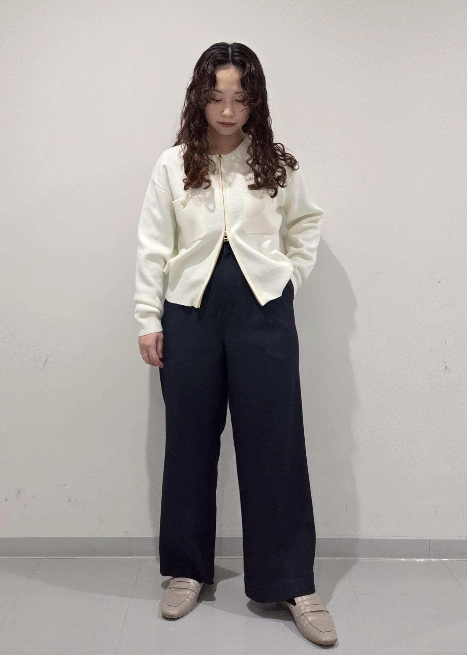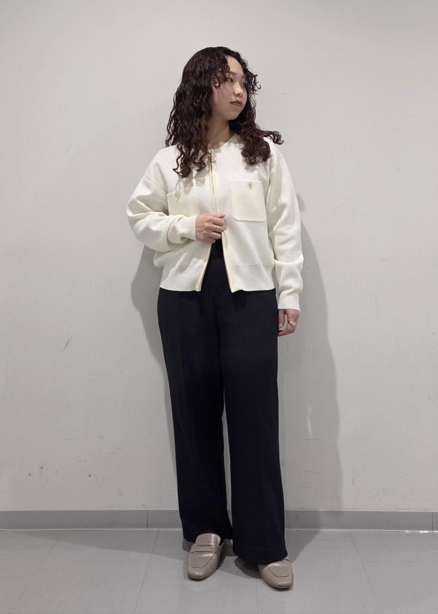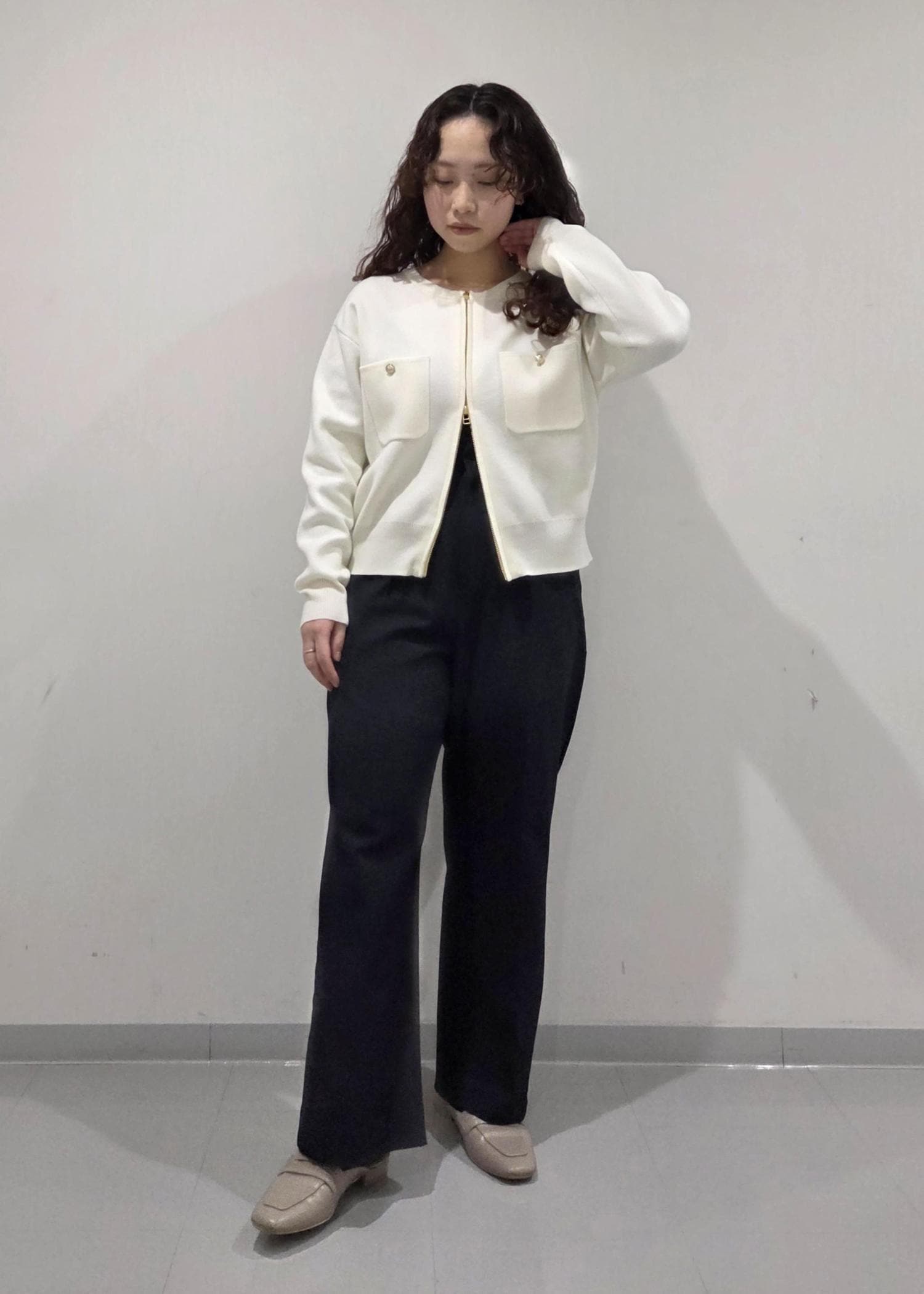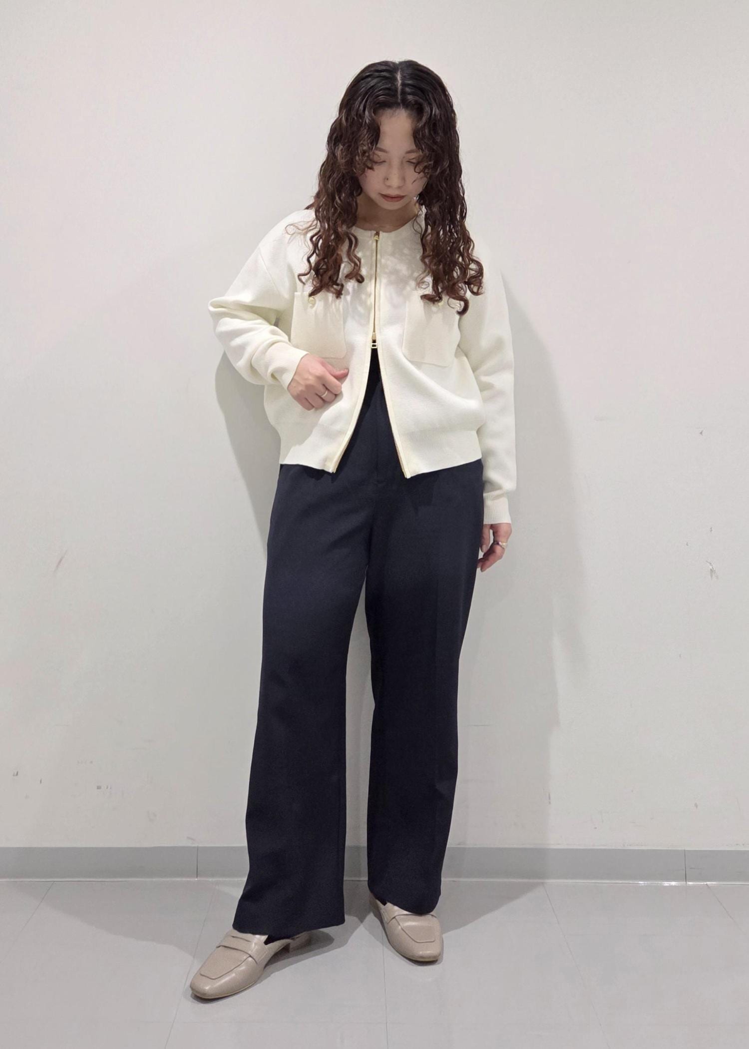 低身長さんには特におすすめで、下のジップをあけるとスッキリ見え+腰回りカバーでスタイルアップしてくれます!◎