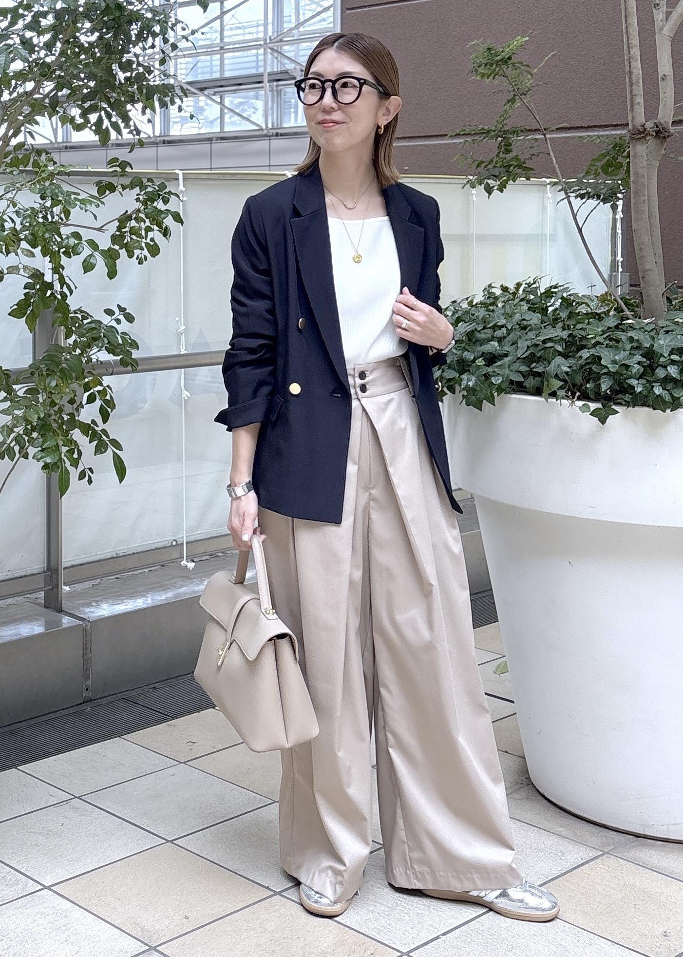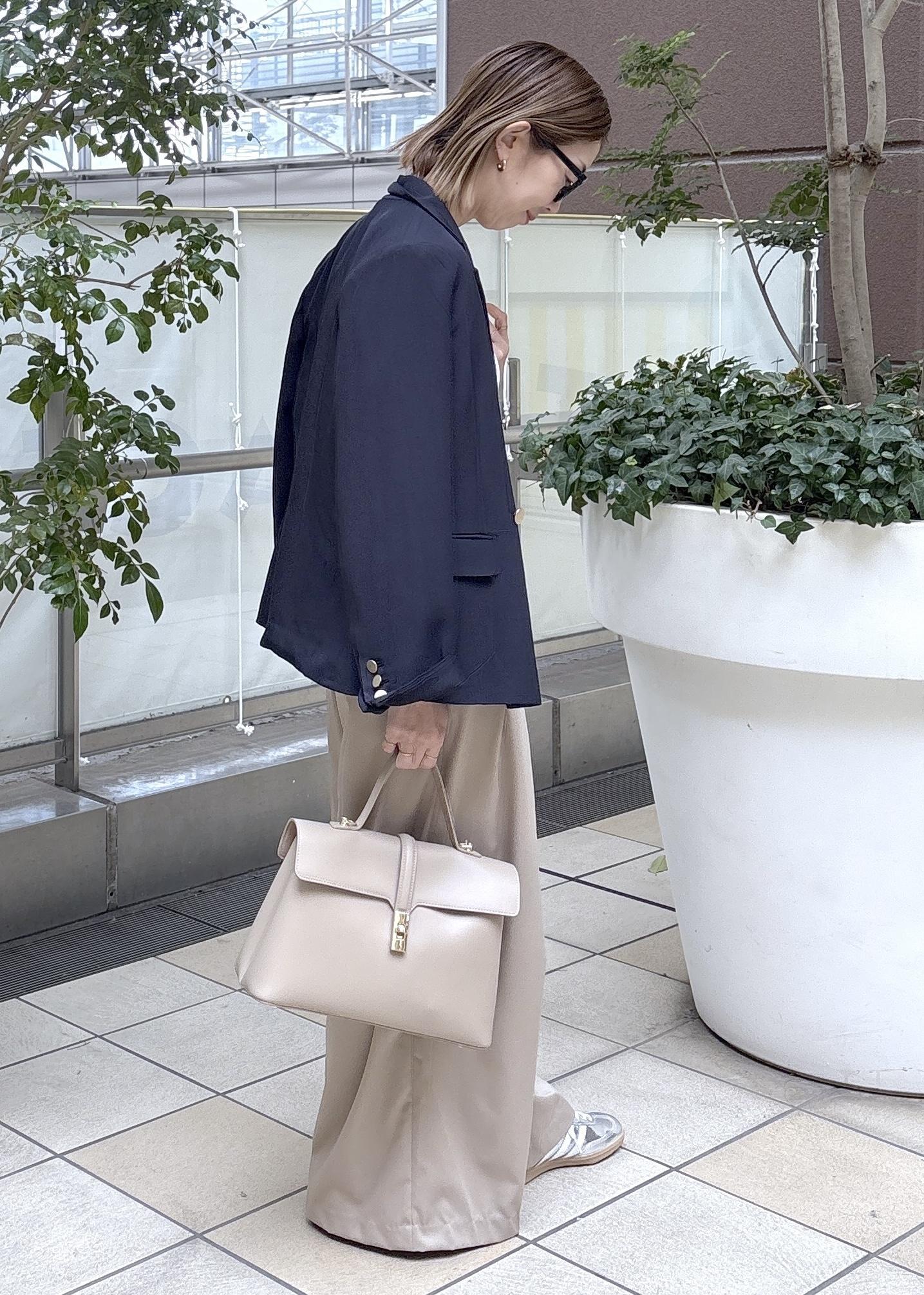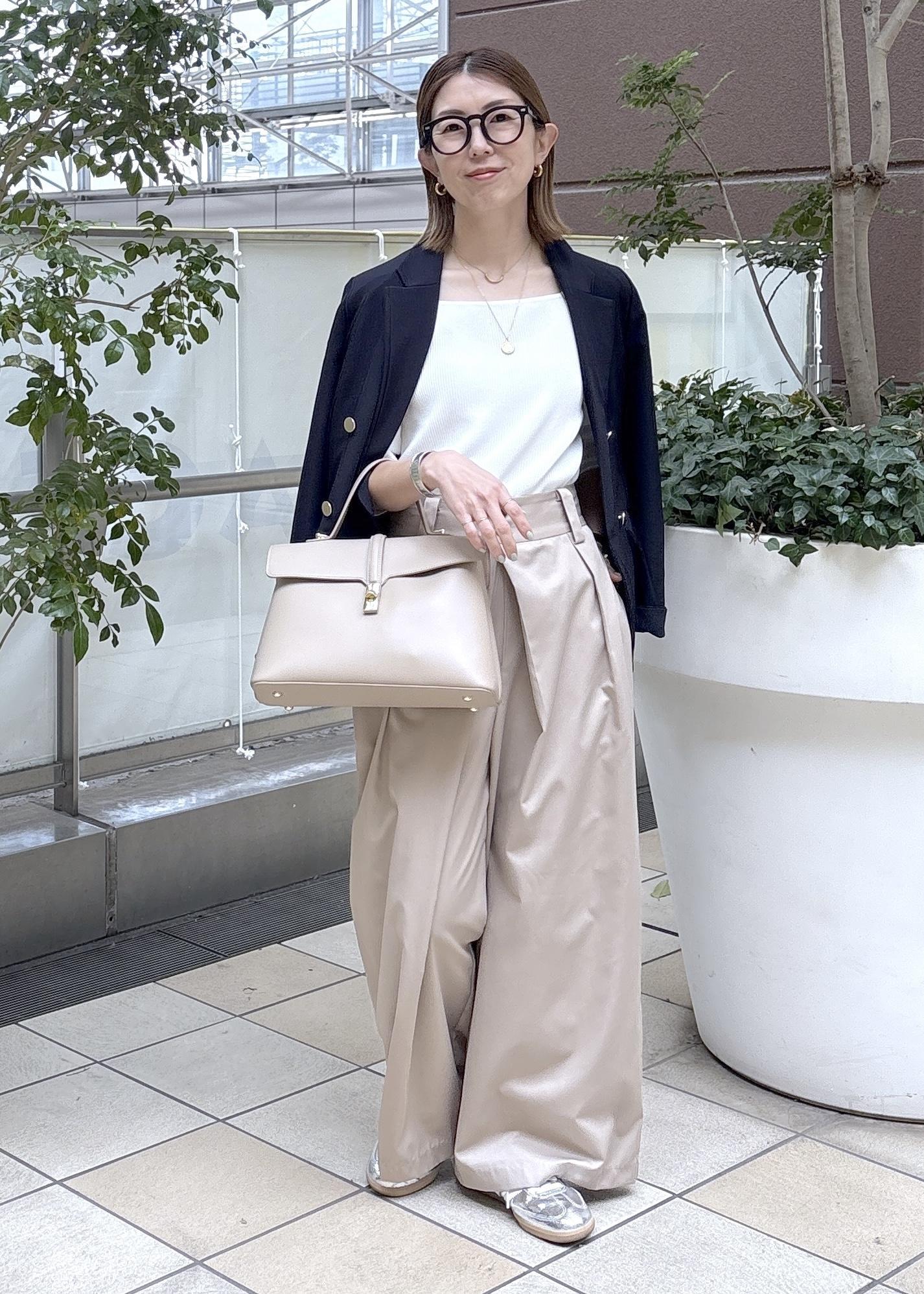 シンプルな中にデザイン性があり、大人カジュアルなスタイリングにピッタリです。 -