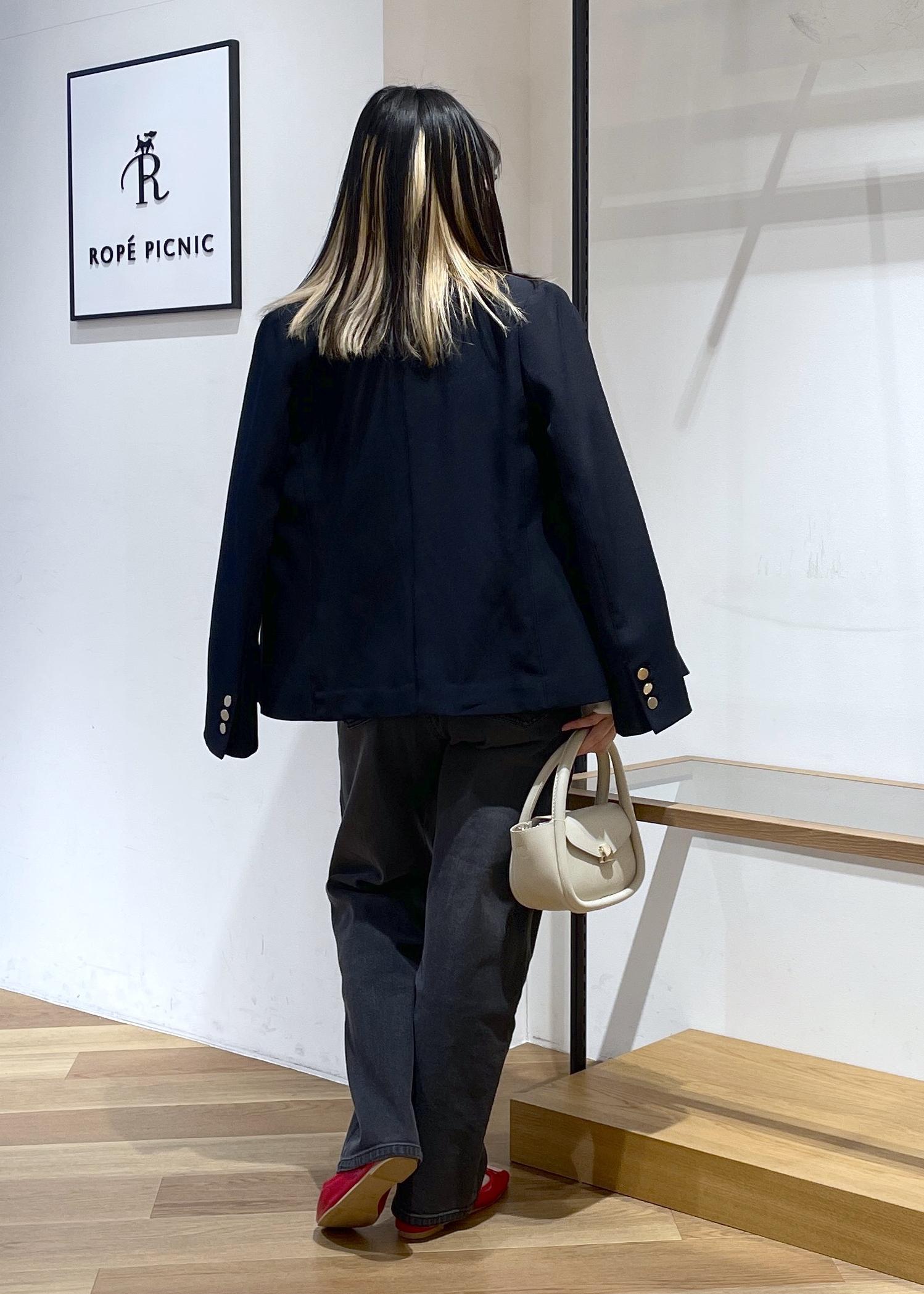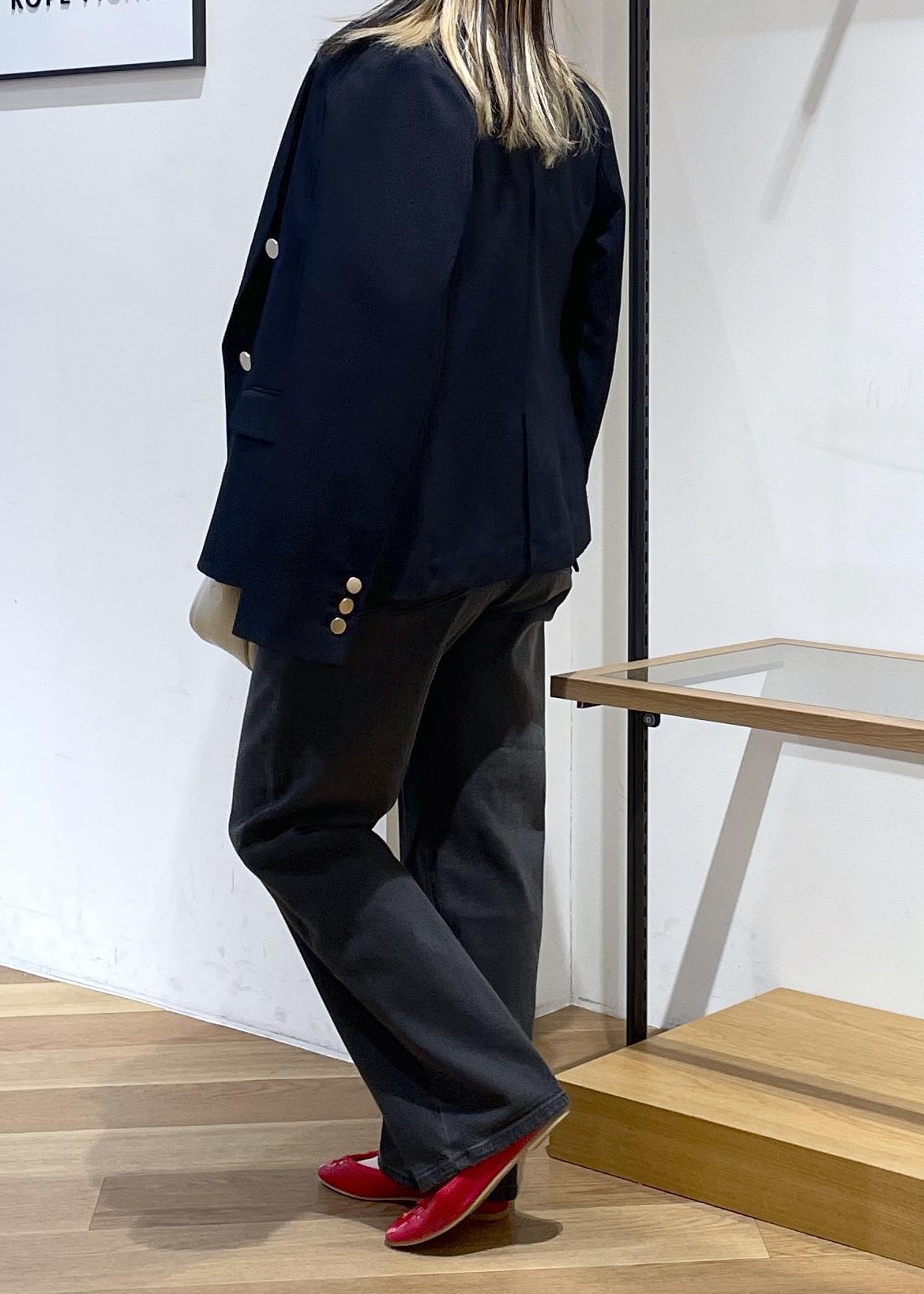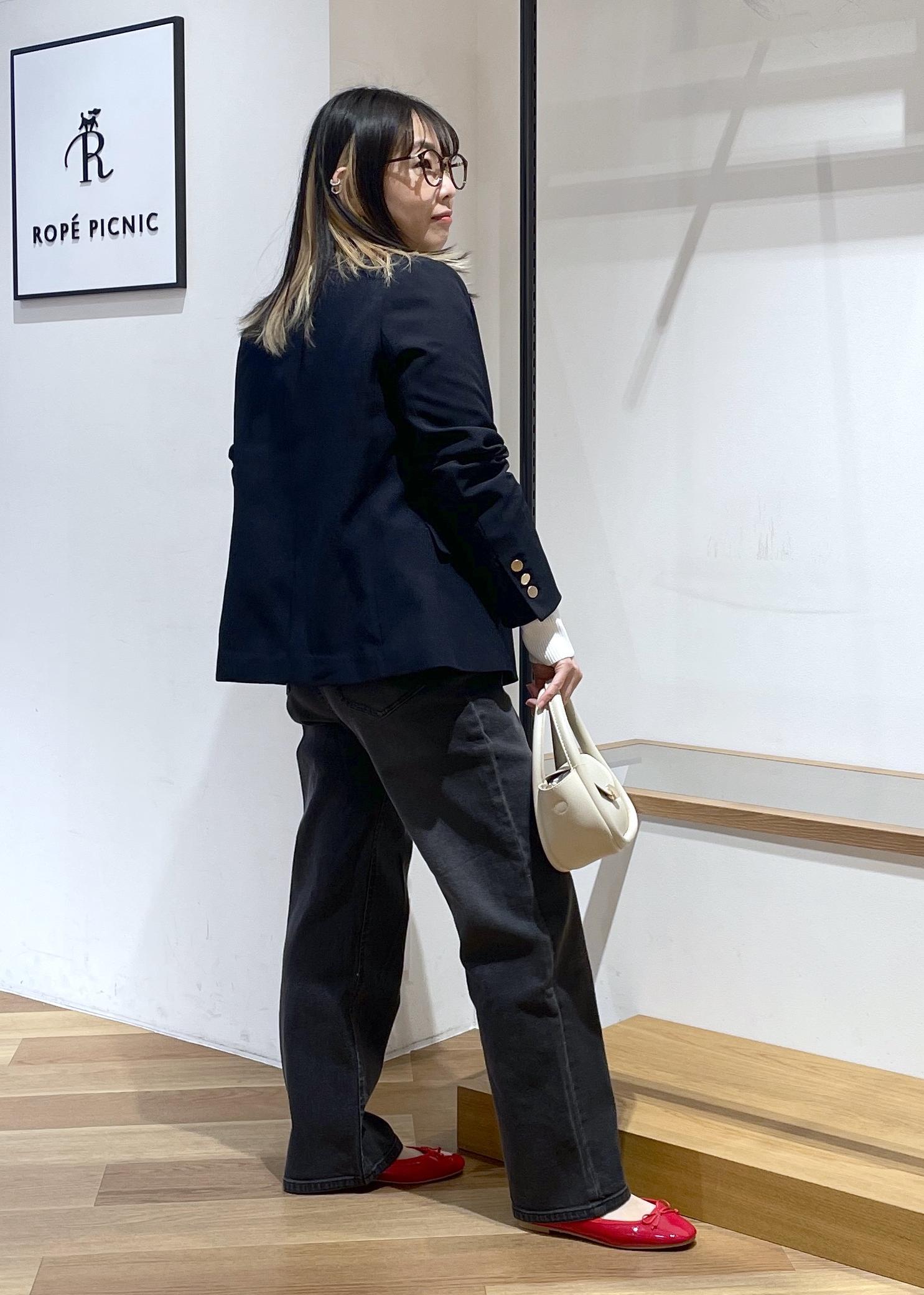 毎シーズン大人気の金ボタンジャケットです。小柄さんタイプは肩幅や袖丈が148センチの私でもピッタリで着用できるのでキチンと感がバッチリです。