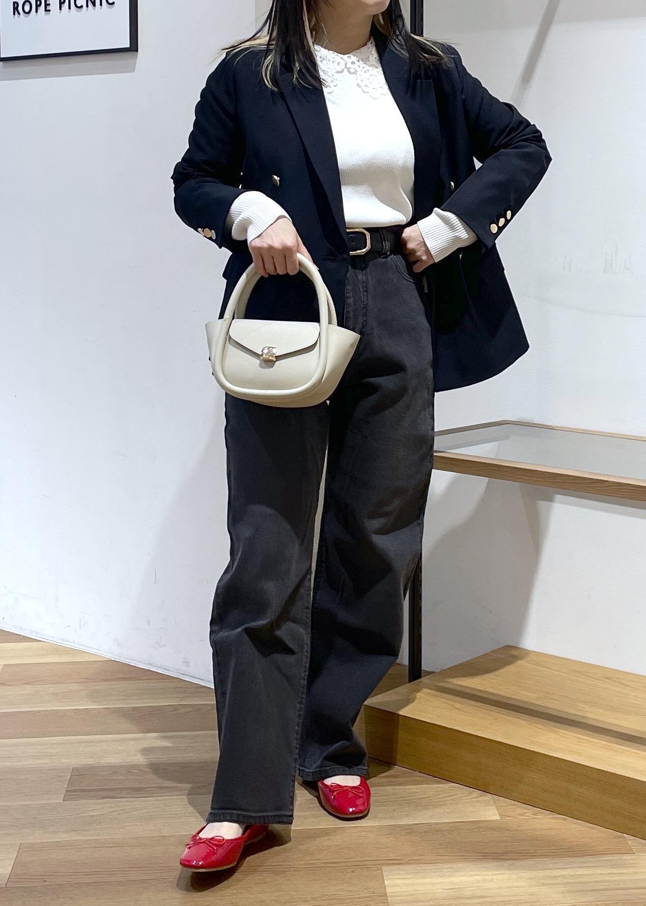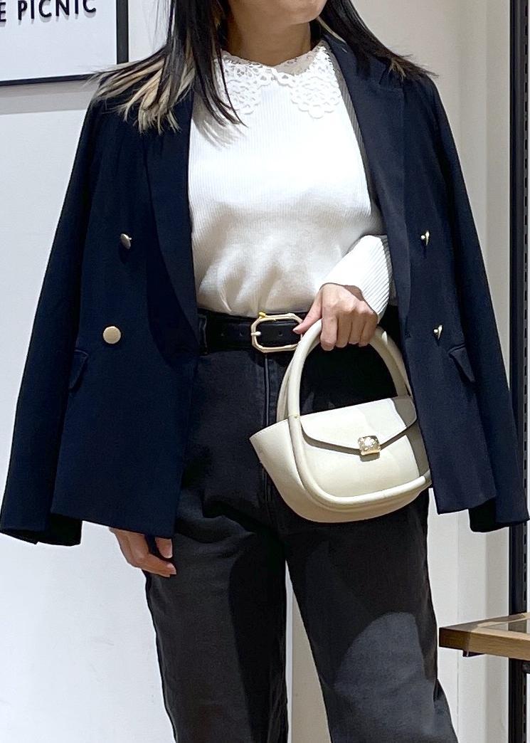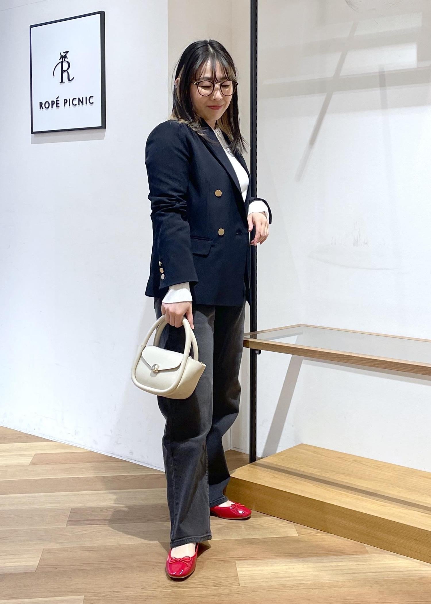 毎シーズン大人気の金ボタンジャケットです。小柄さんタイプは肩幅や袖丈が148センチの私でもピッタリで着用できるのでキチンと感がバッチリです。