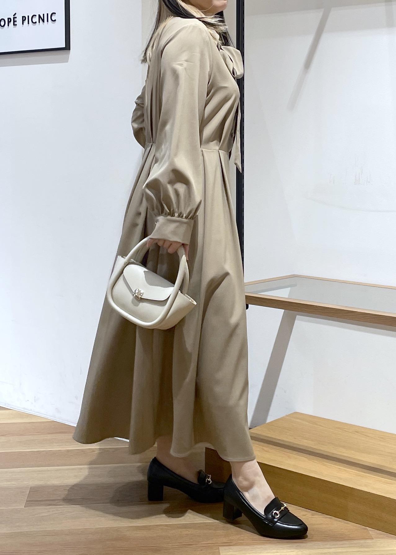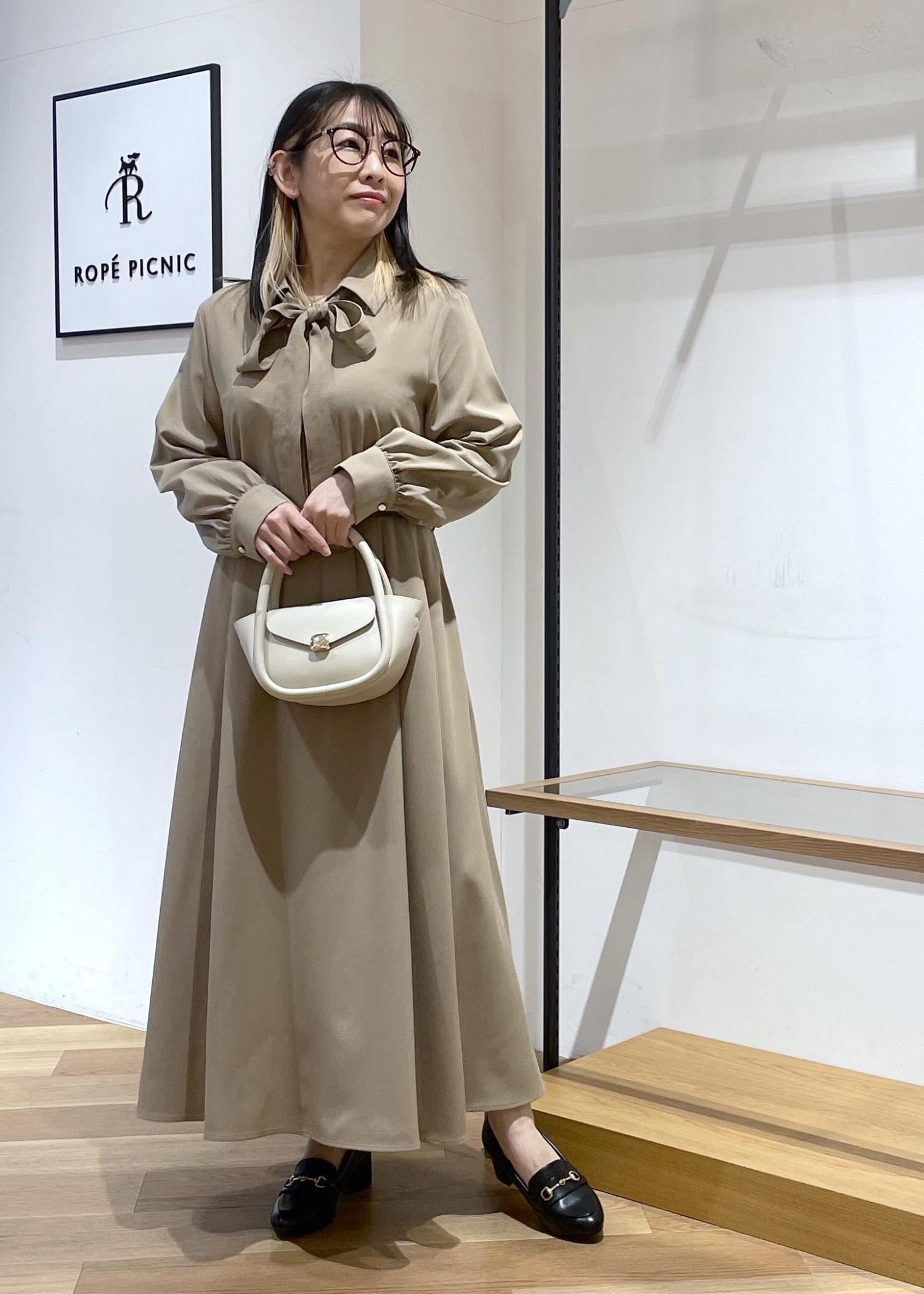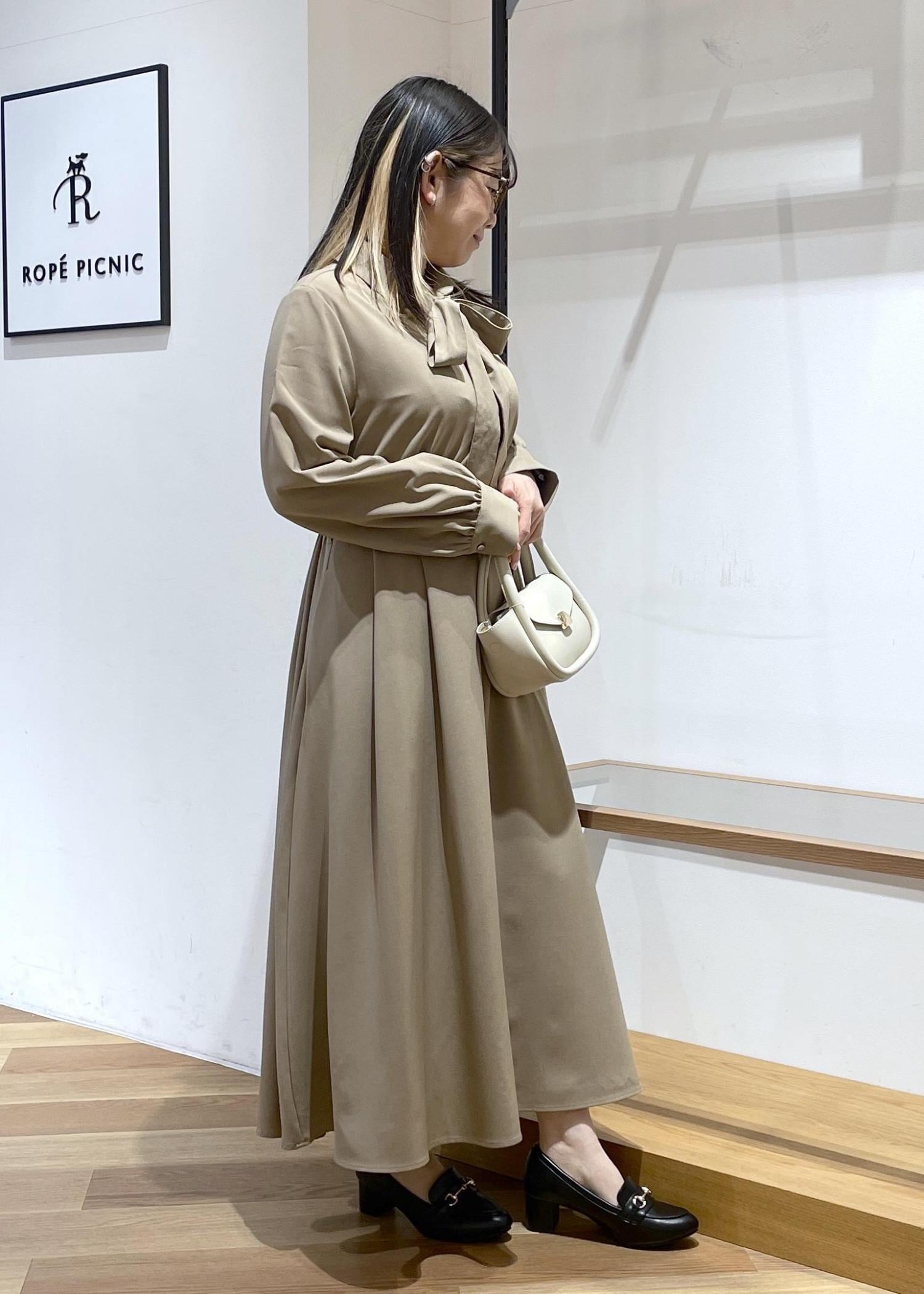 ROPÉ PICNICリボンシャツワンピースベージュ / M¥8,492レビューラインがとてもキレイなシャツワンピースです。1枚でちゃんと可愛いです。ストレッチ素材で着心地楽ちんです○リボンはお首でもウエストでもどちらでも使えます。