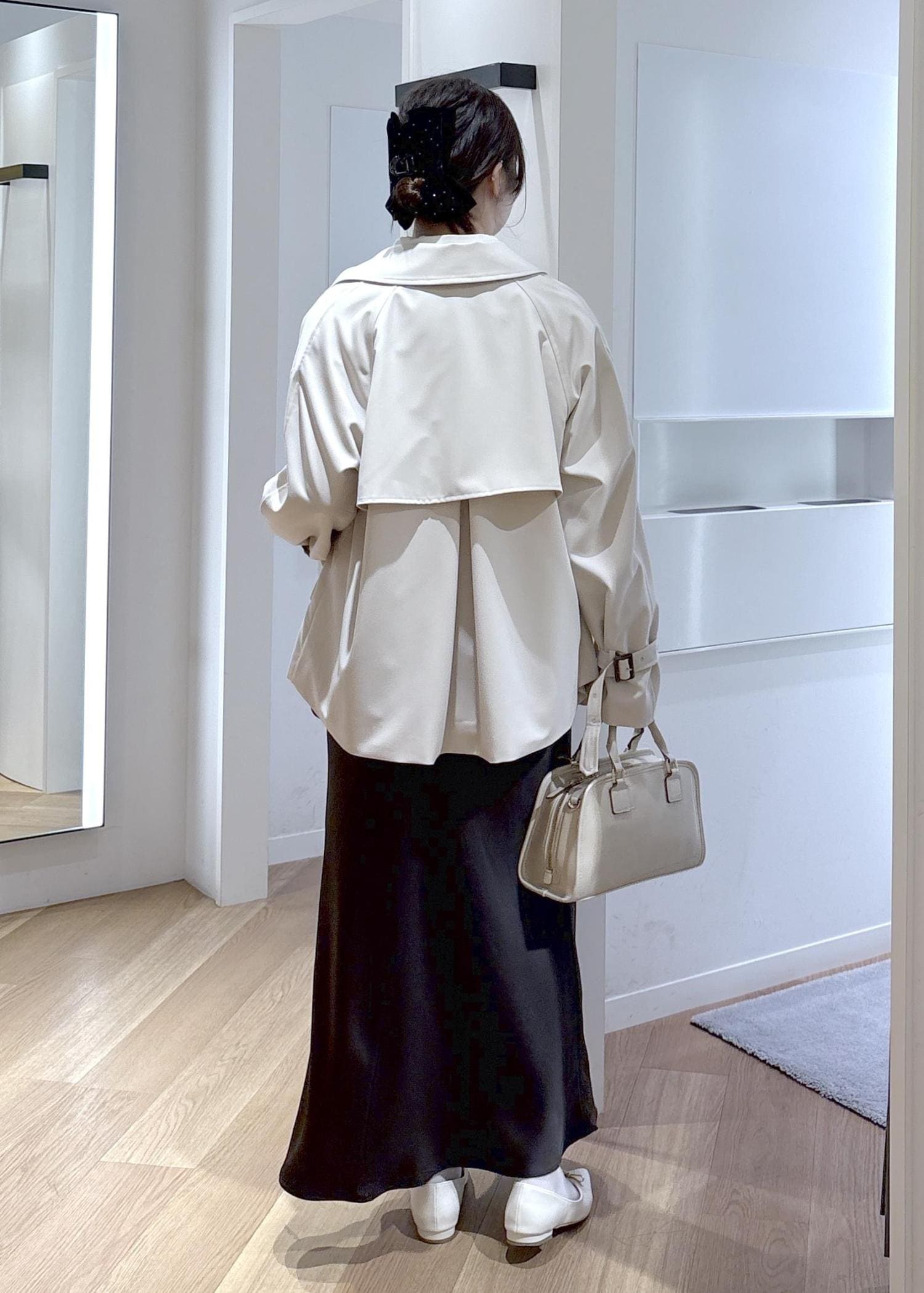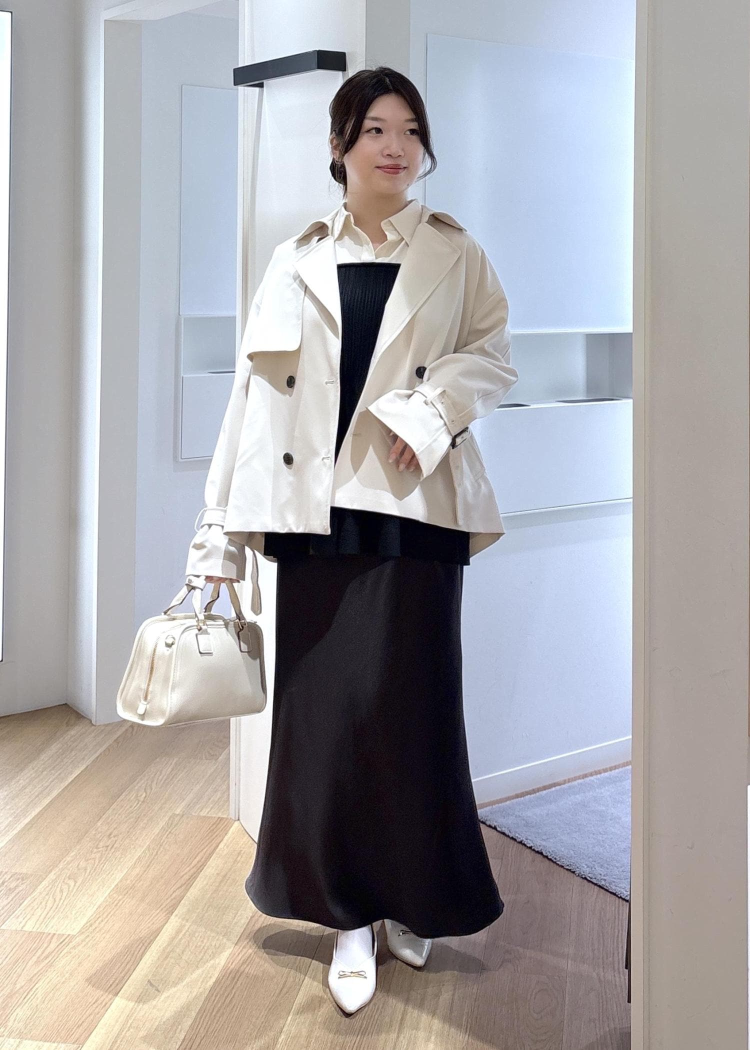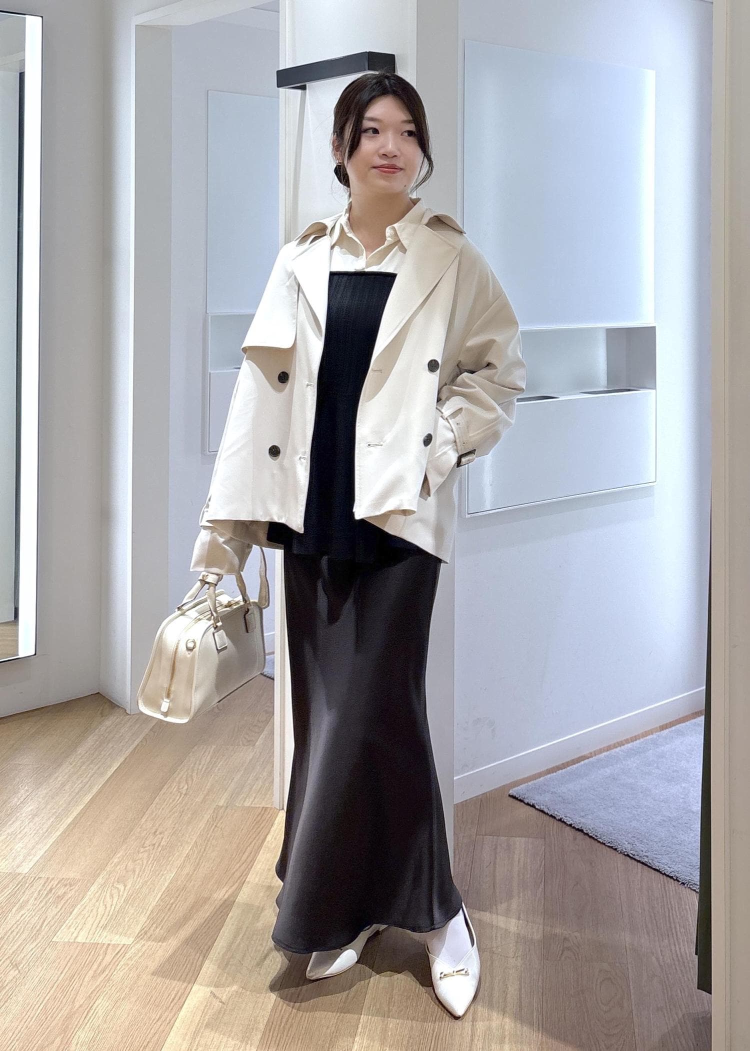 ROPÉ PICNICショート丈トレンチコート/撥水・花粉ガードベージュ / F¥13,200レビュー中にニットを着てもゆとりがあるサイズ感です。