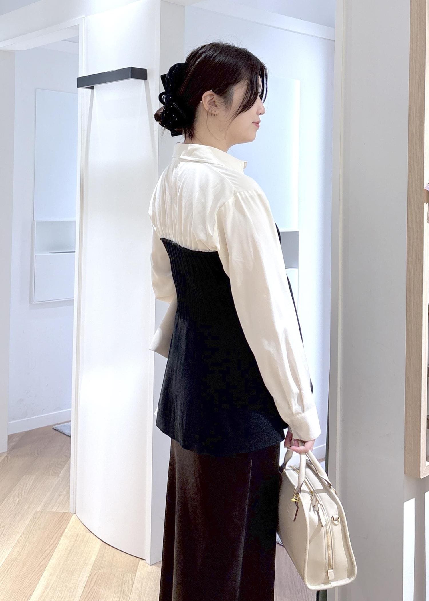 ニットのペプラム部分はハリ感のある生地で、ふんわりと広がります。