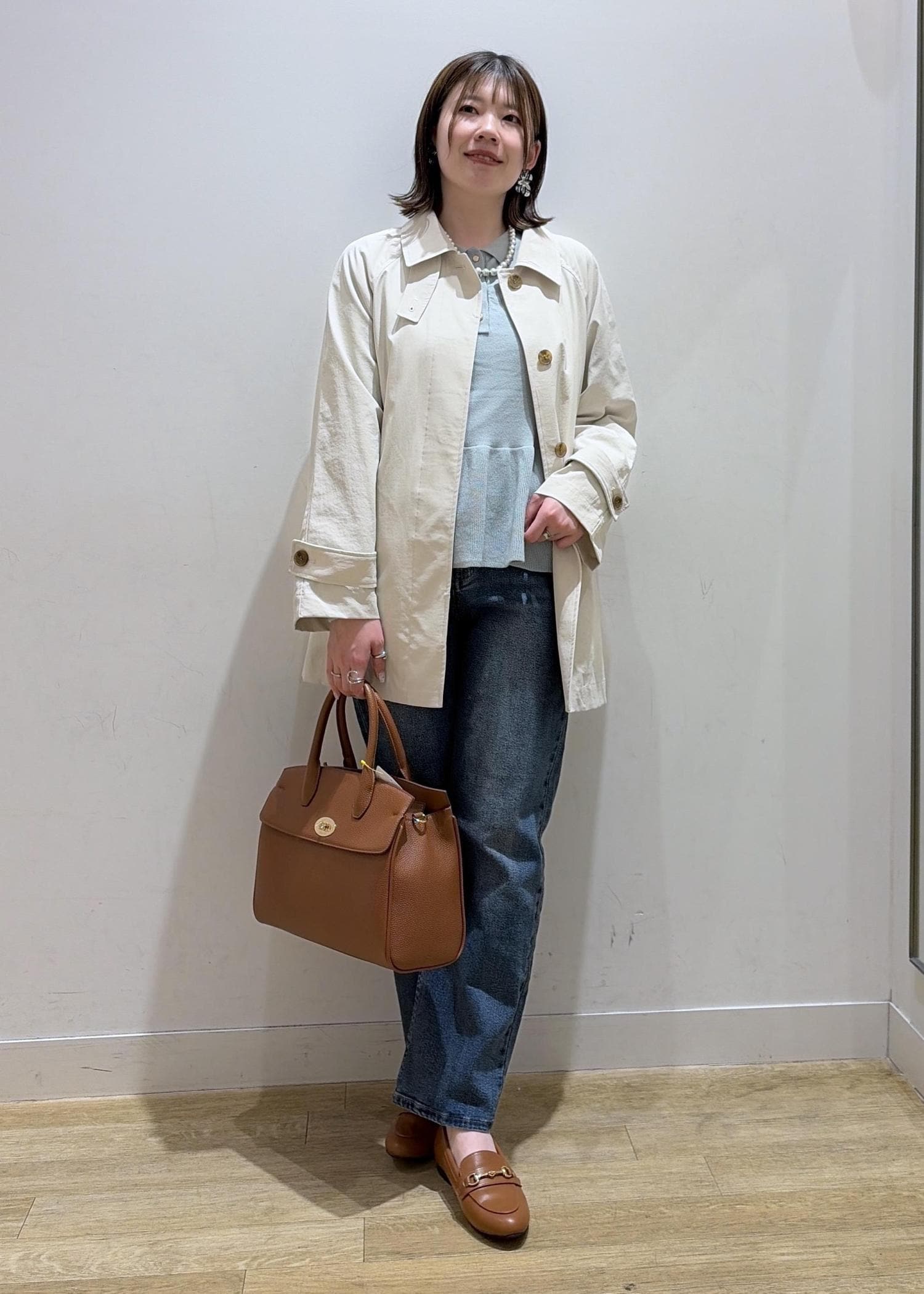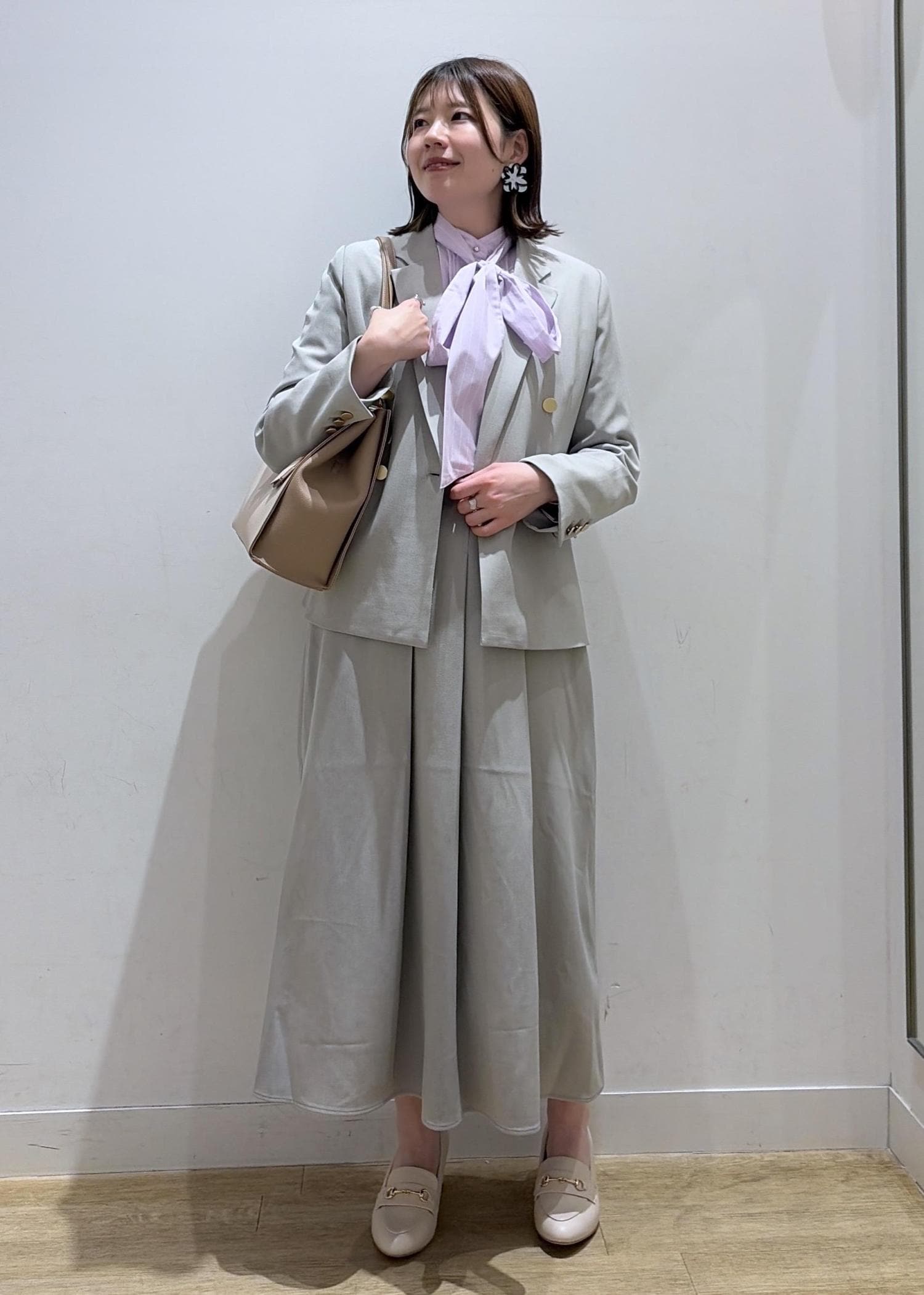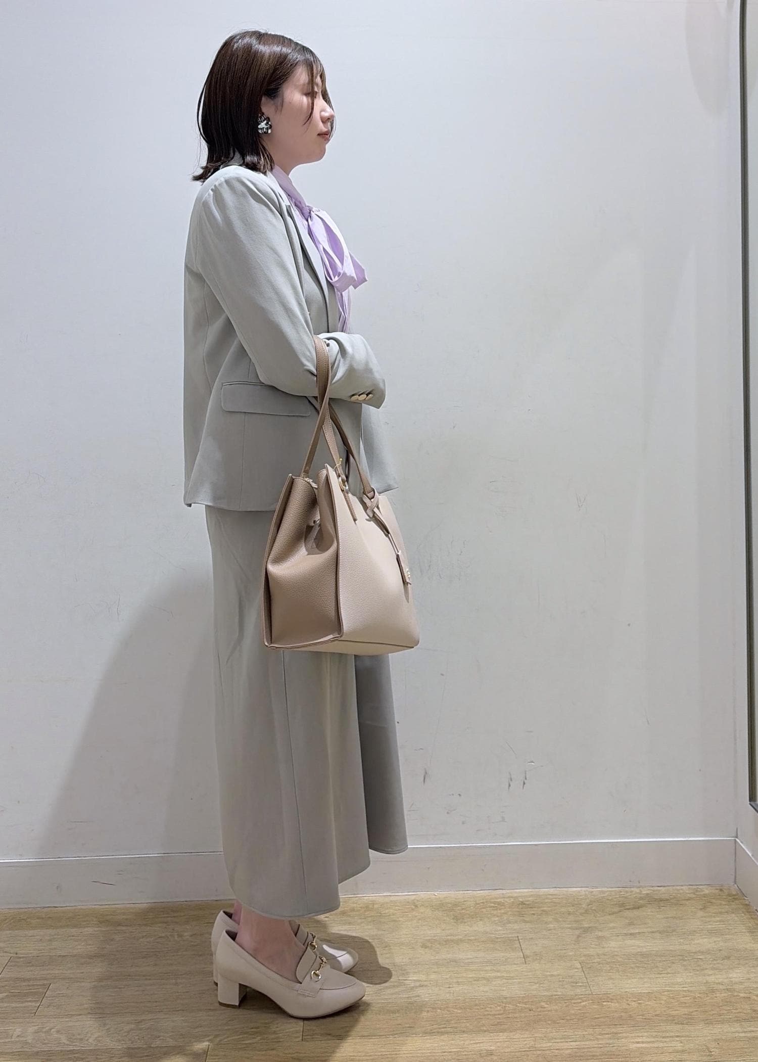 今回は、春らしいカラーで通勤スタイルを組みました♩