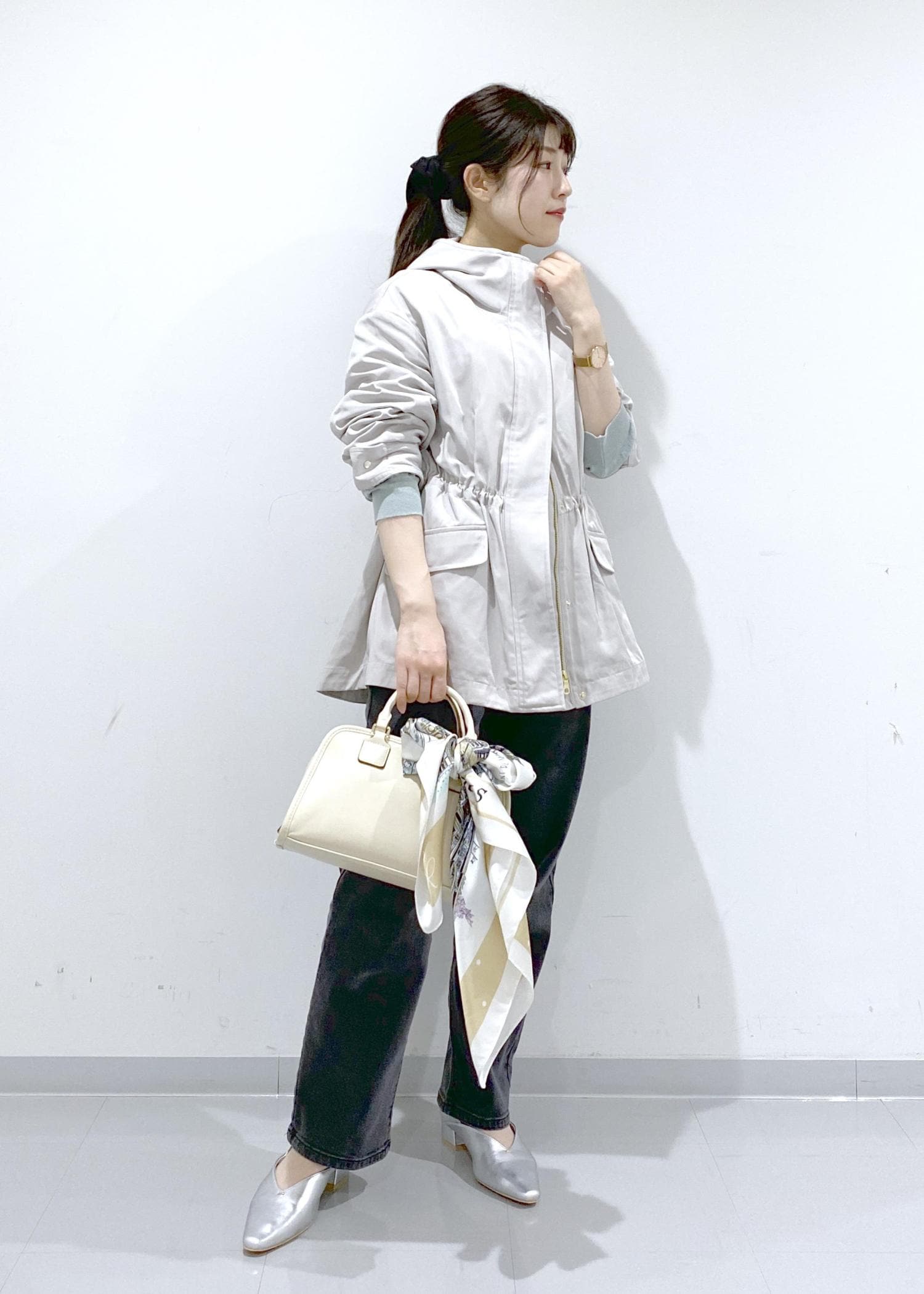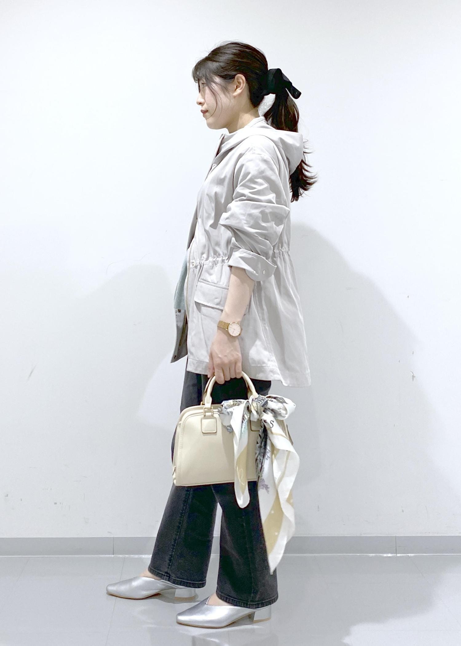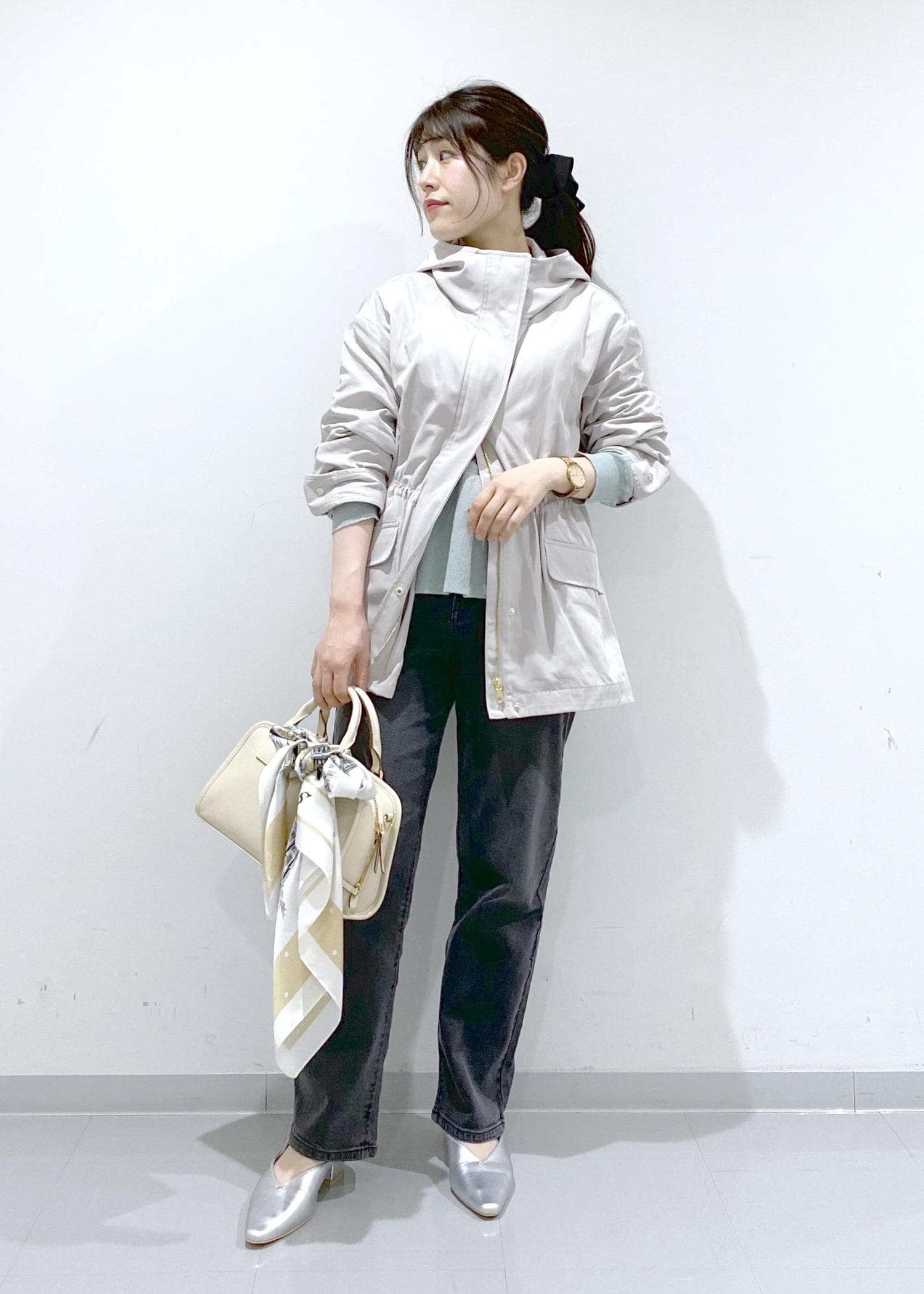 光沢感のある素材でカジュアルすぎないので、きれいめコーデにも着回しできます。
