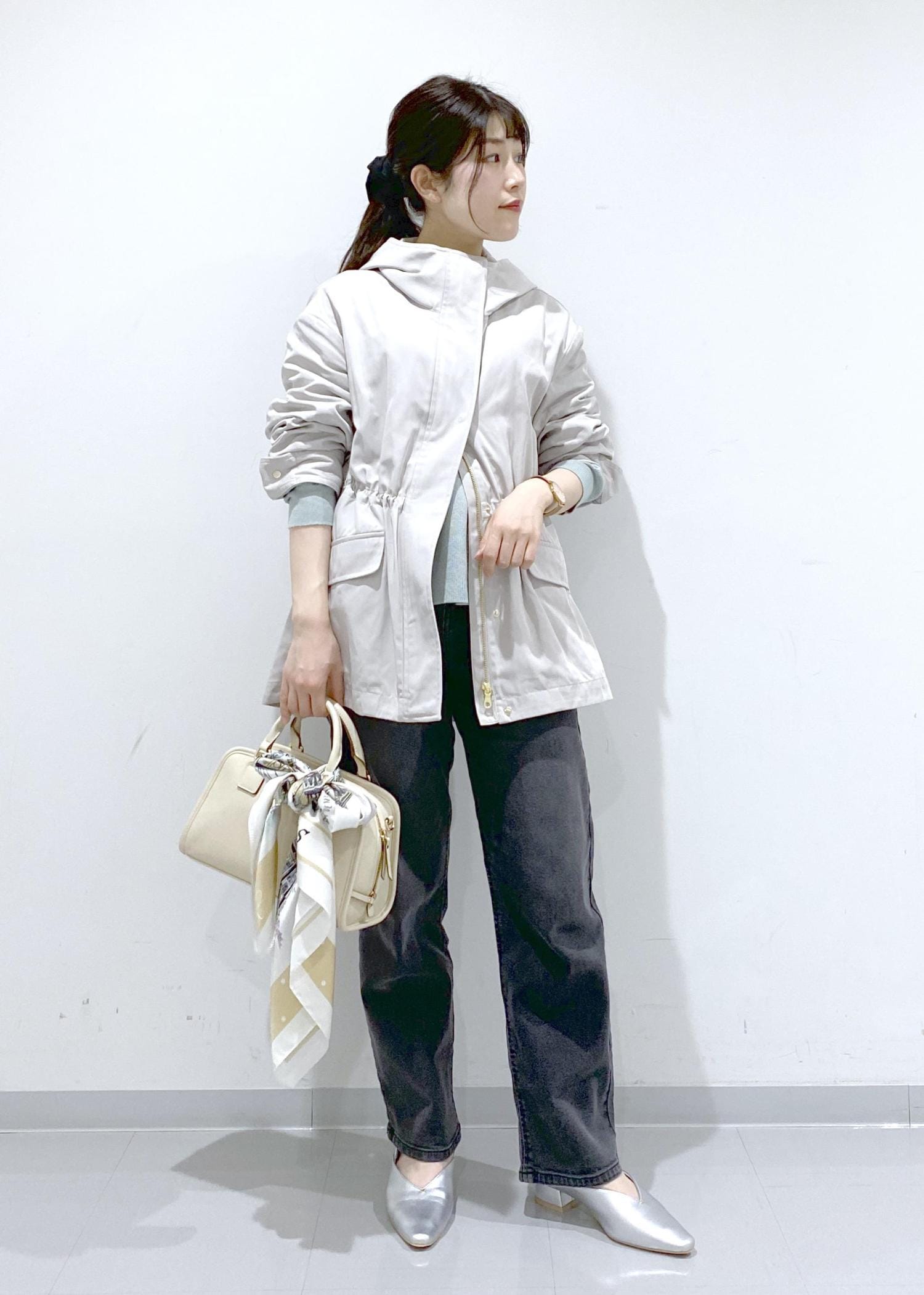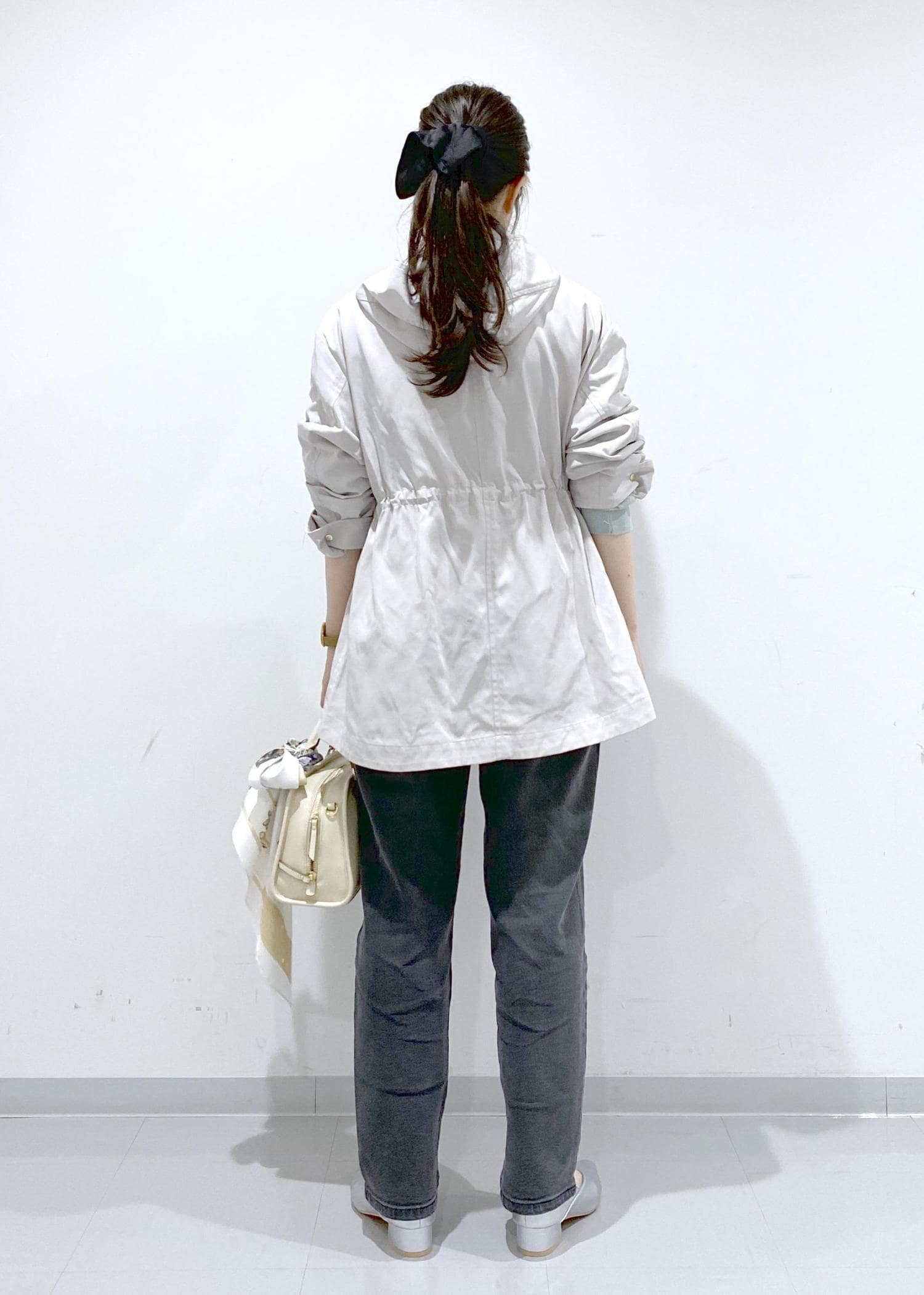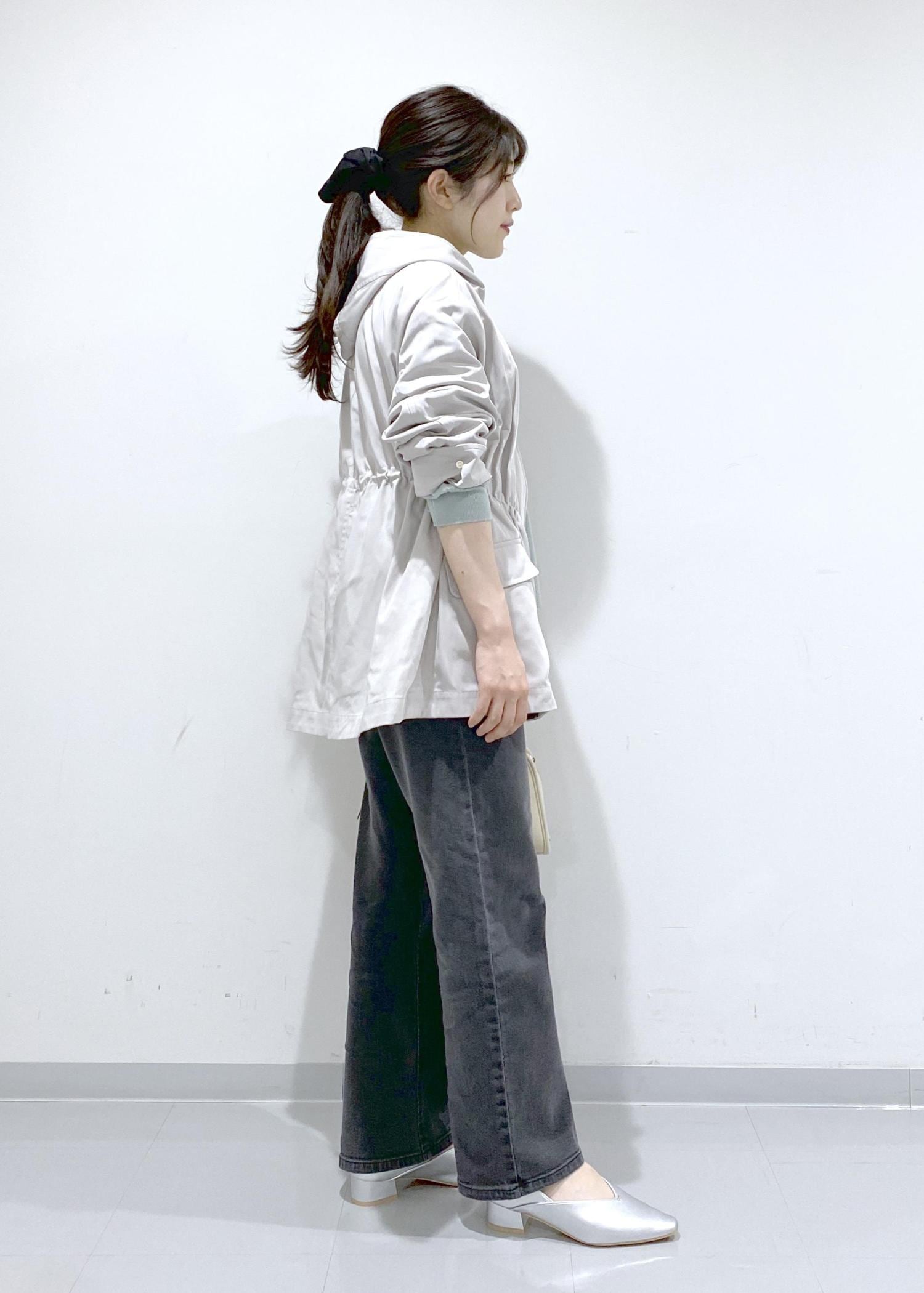 ヒップが半分隠れる丈感で、ウエスト周りをカバーできるシルエットです。
