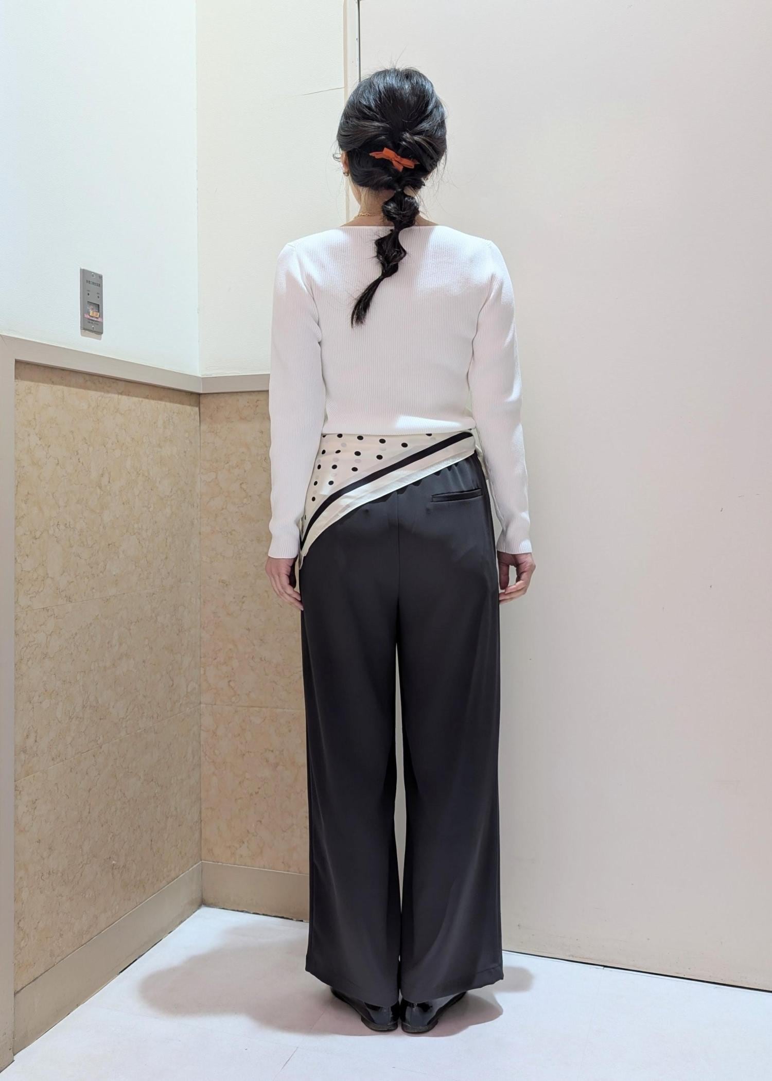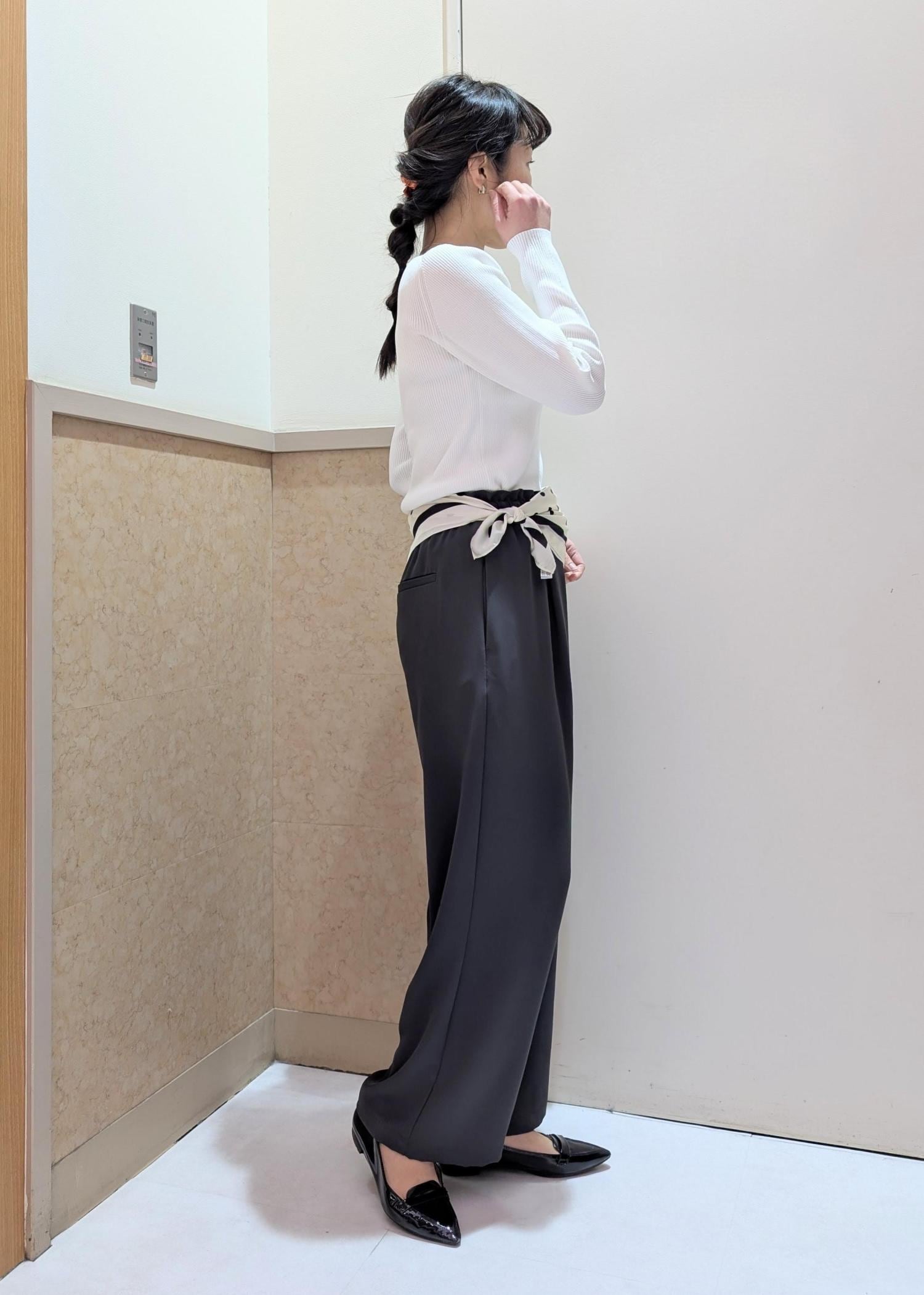 トップス×ワイドパンツのシンプルコーデなので、アクセントにスカーフを腰巻きしました(^.^)