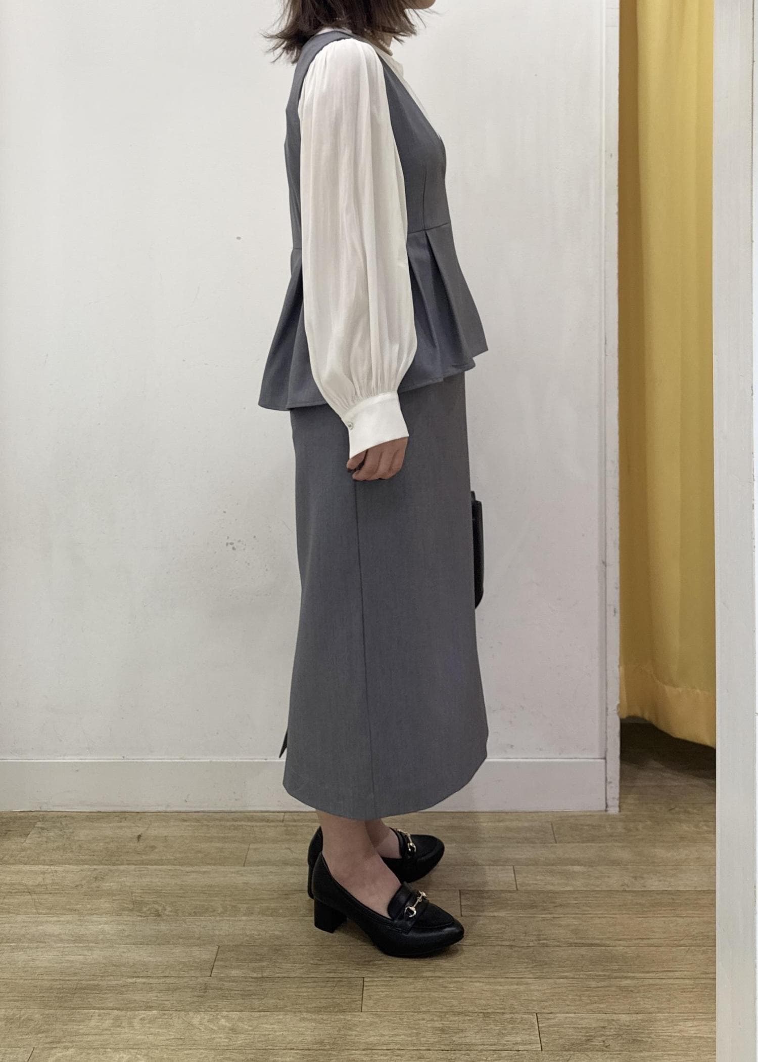 身幅はSサイズで薄手のニットやブラウス合わせでジャストなサイズ感。 -