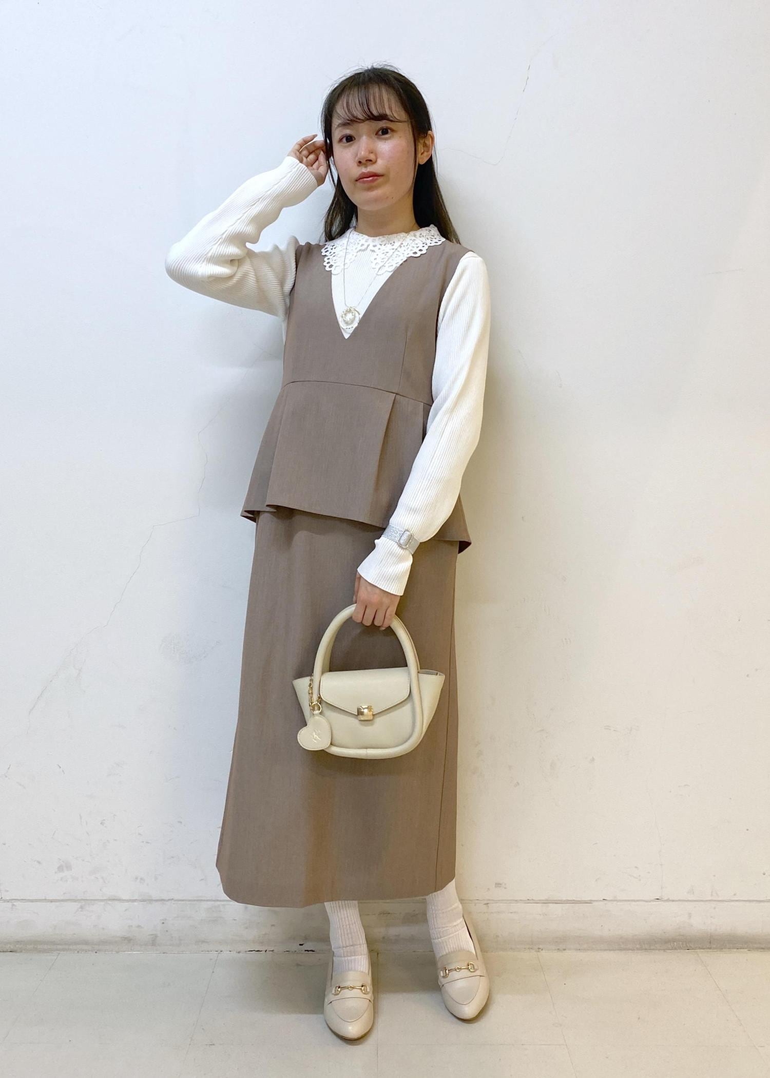 人気のジャンパースカートに新作デザインが出たので、ワントーンコーデを組んでみました♪