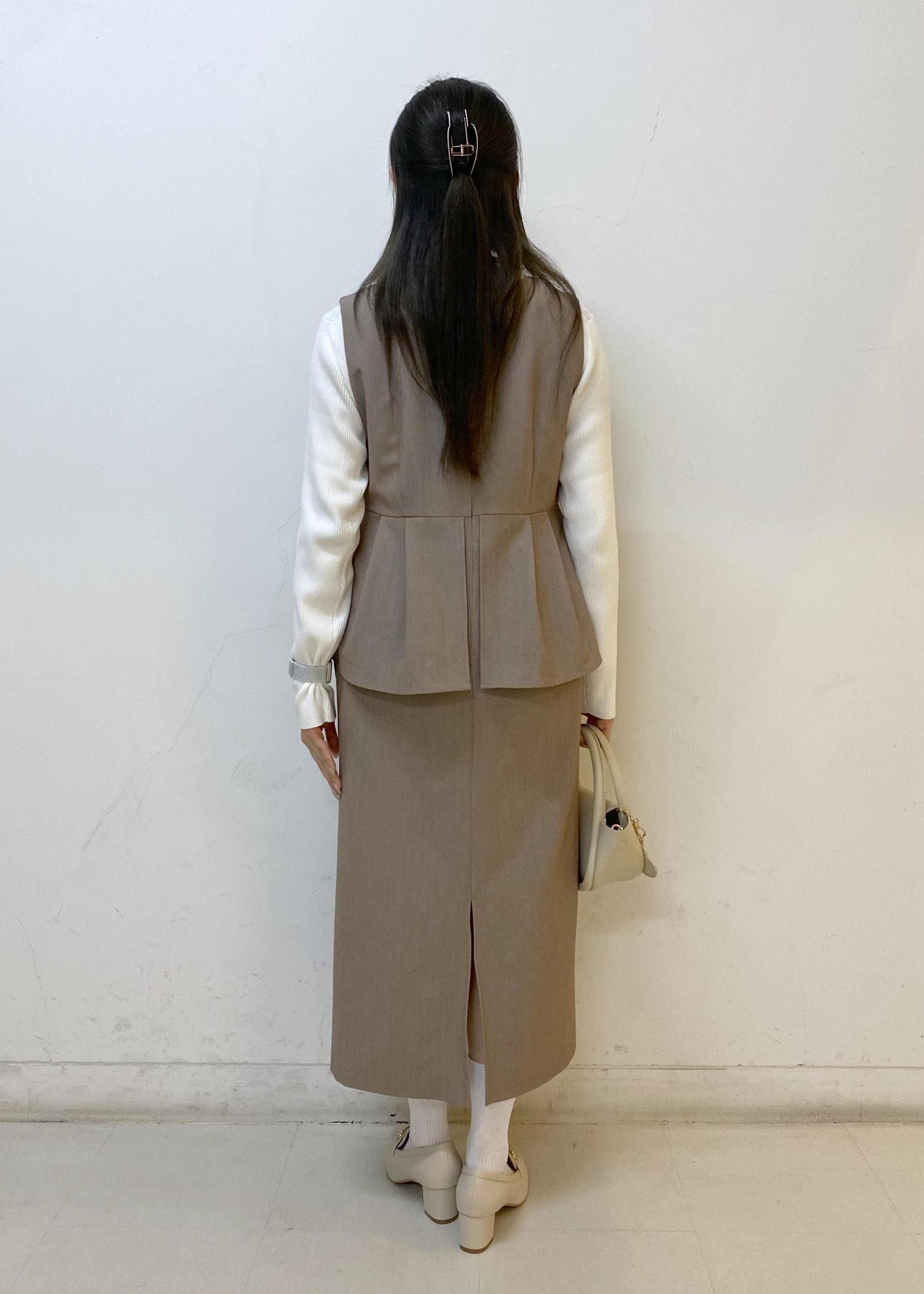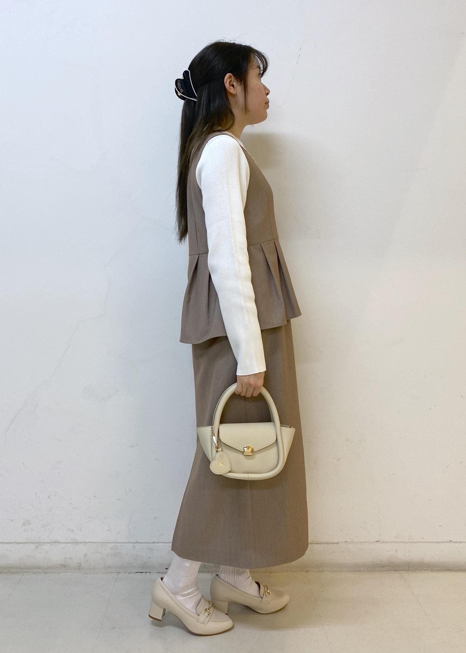 ペプラムジャンスカのきれいめワントーンコーデ