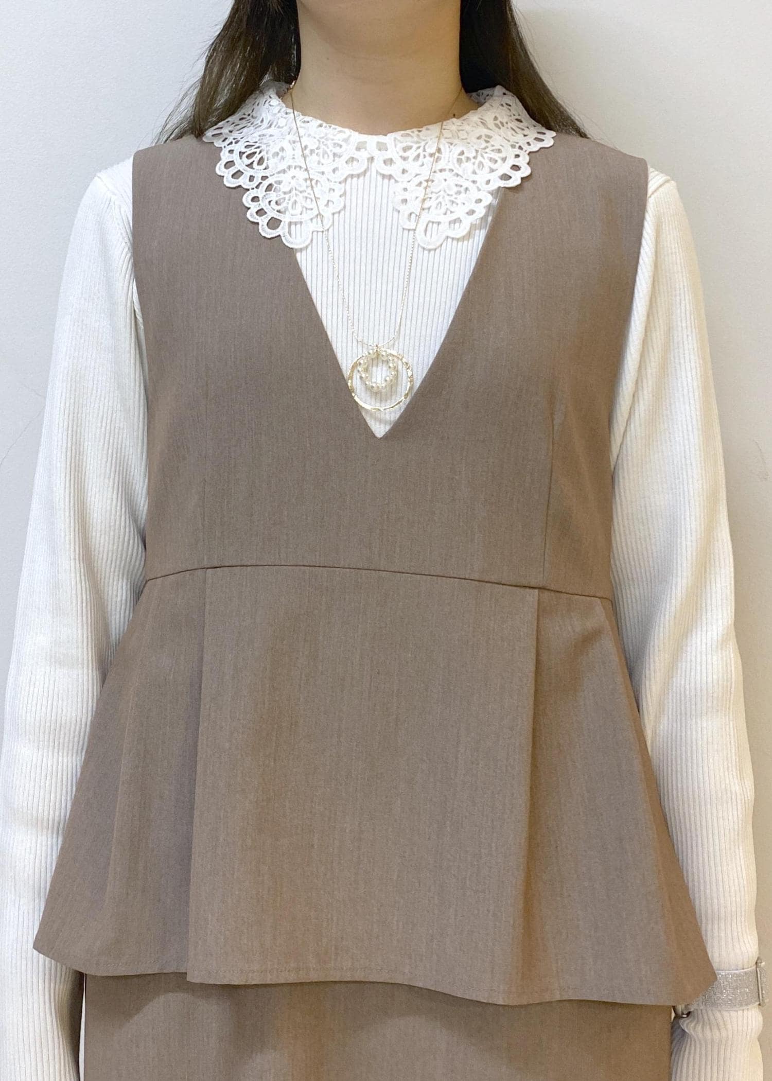 深めのVネック×レース襟の相性◎