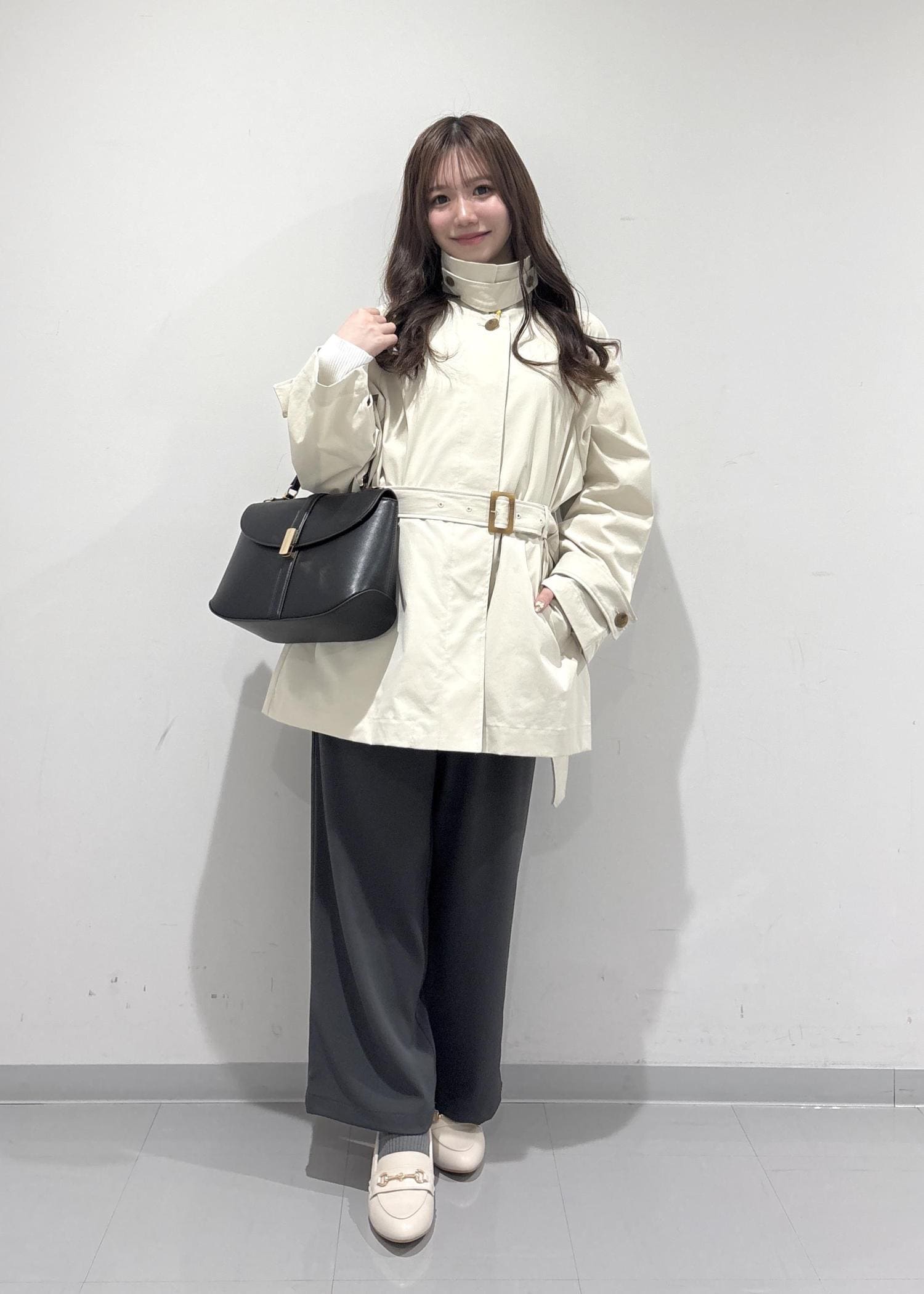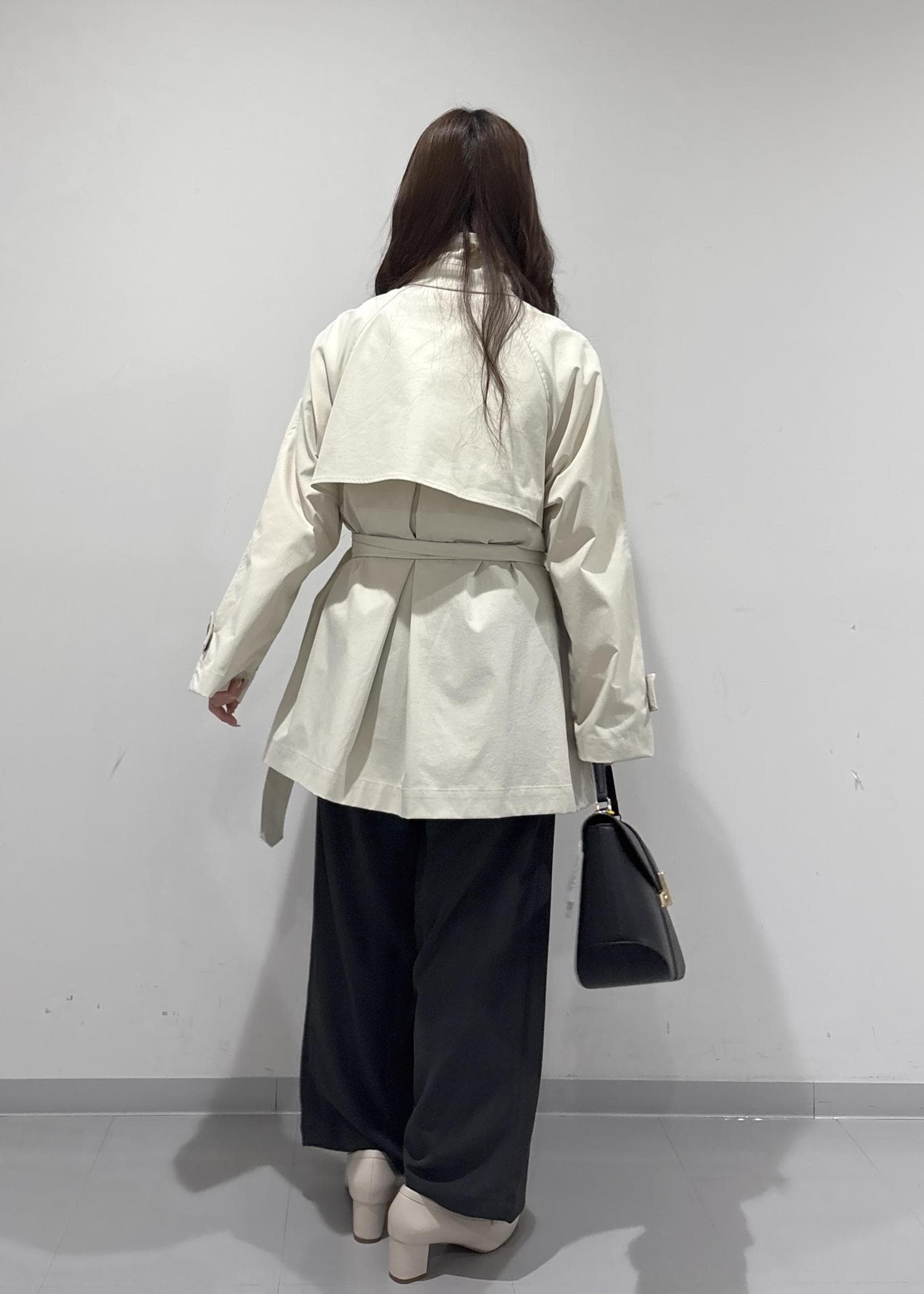 こちらのトレンチコートは、春に嬉しい撥水加工と花粉ガード機能があります!ウエスト部分にベルトが付いているので、シルエットが綺麗に見えたりスタイルアップができます!サラッと軽く羽織れるので春や雨の日にもピッタリなアイテムです!