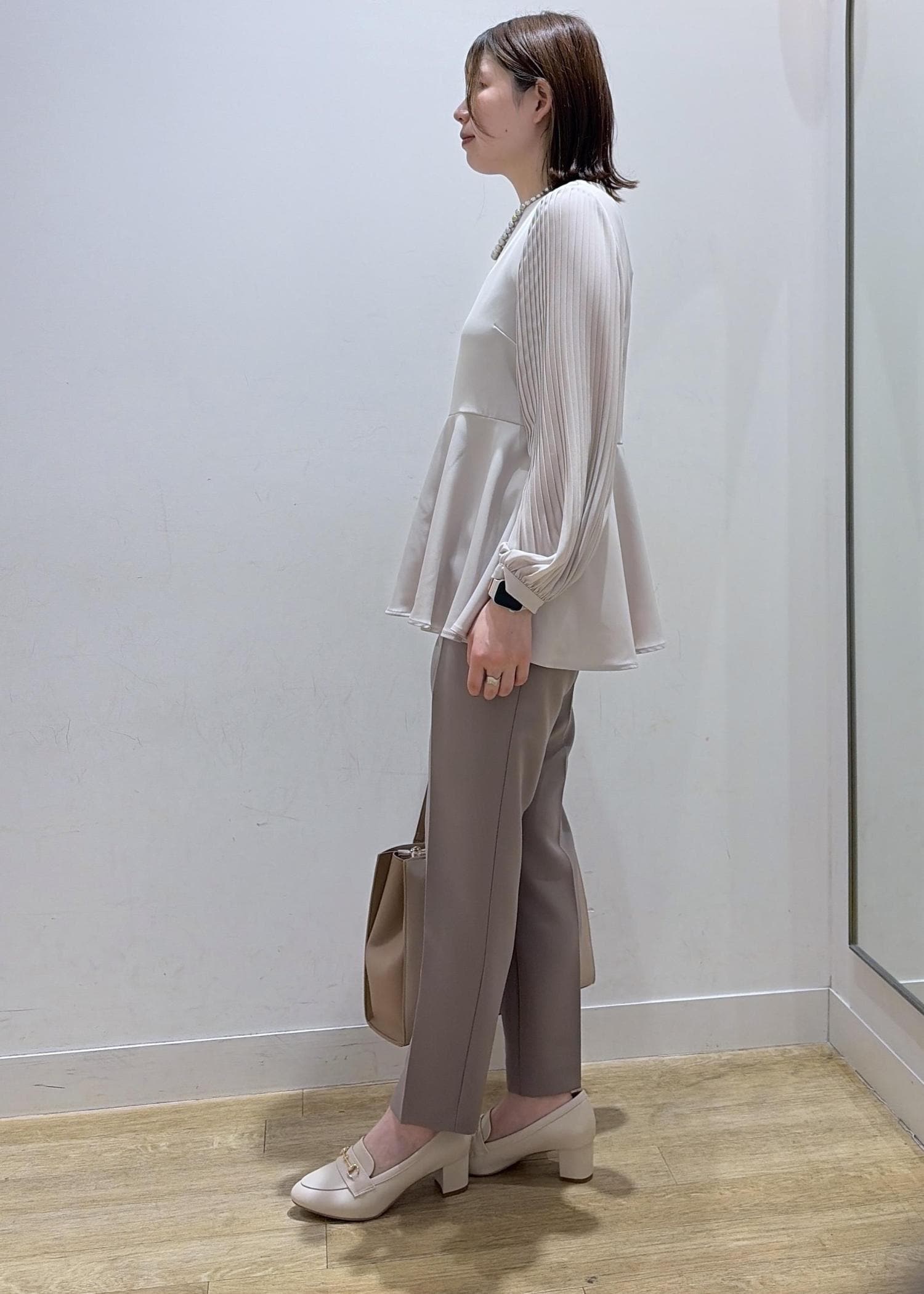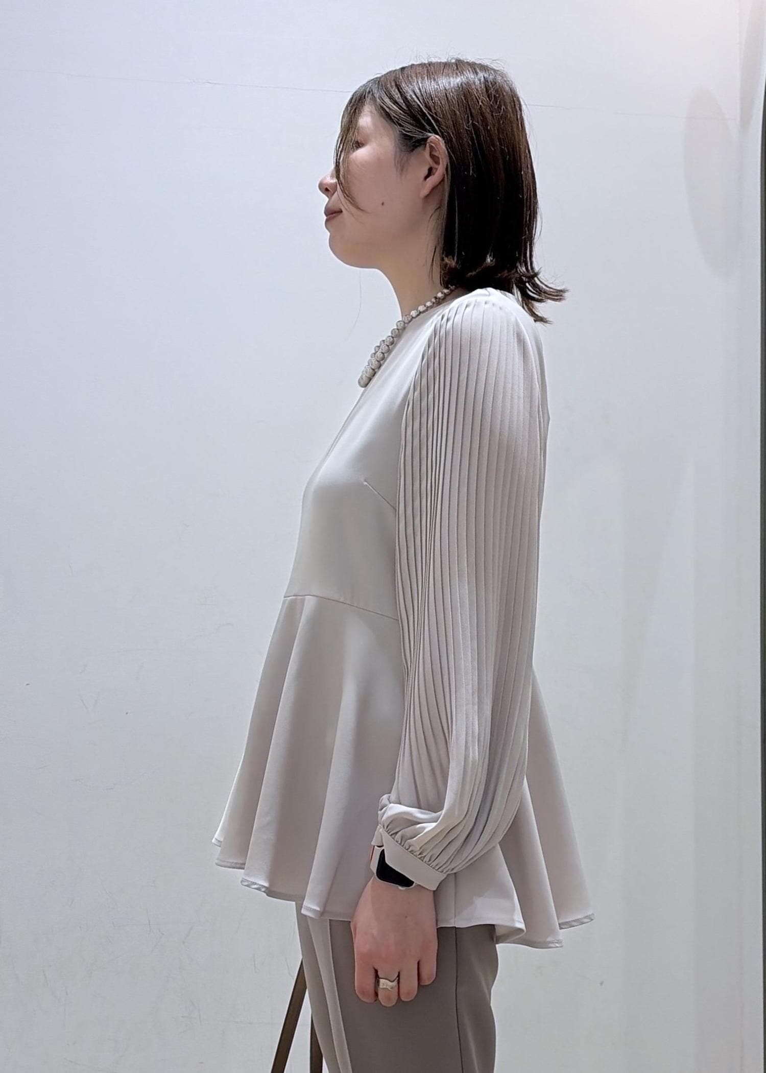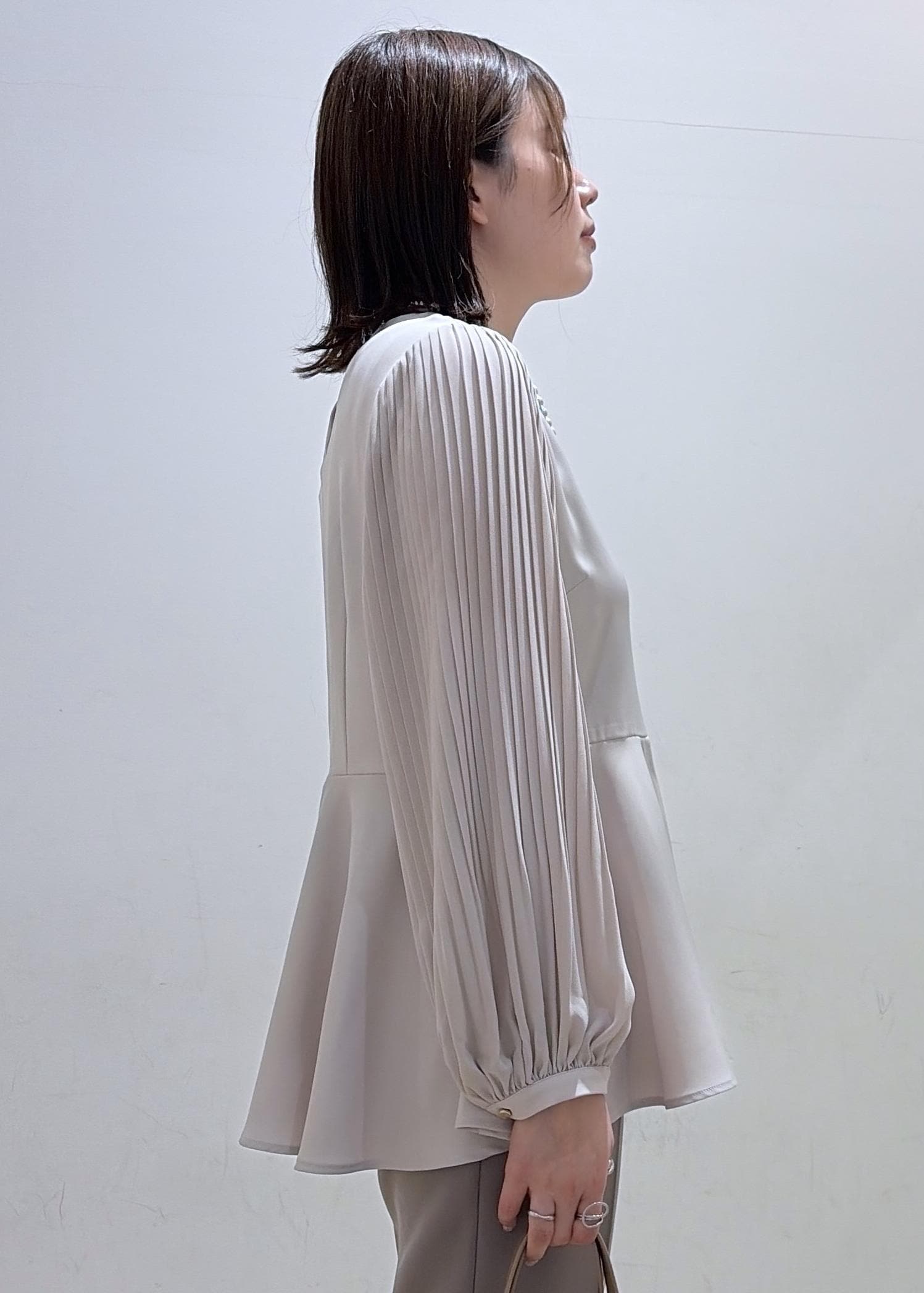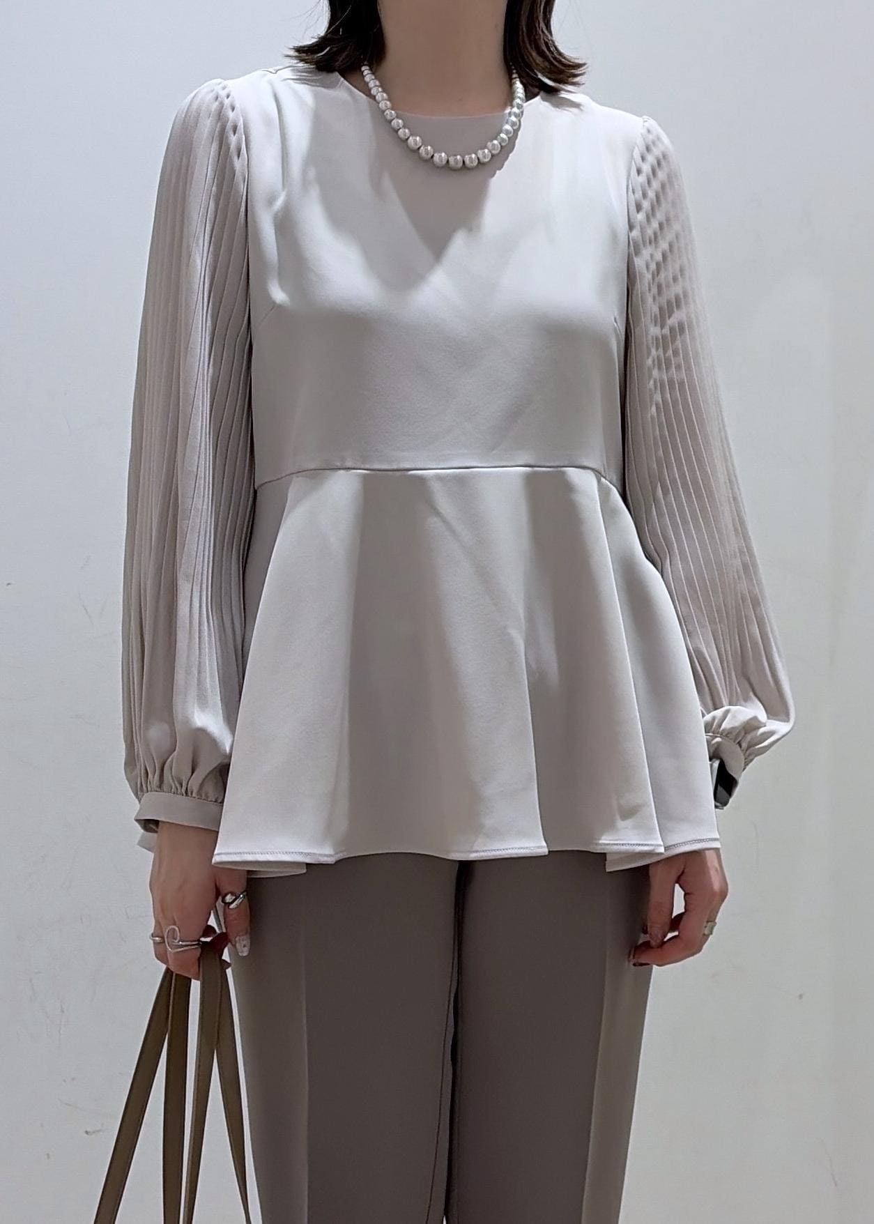 袖プリーツフレアブラウス