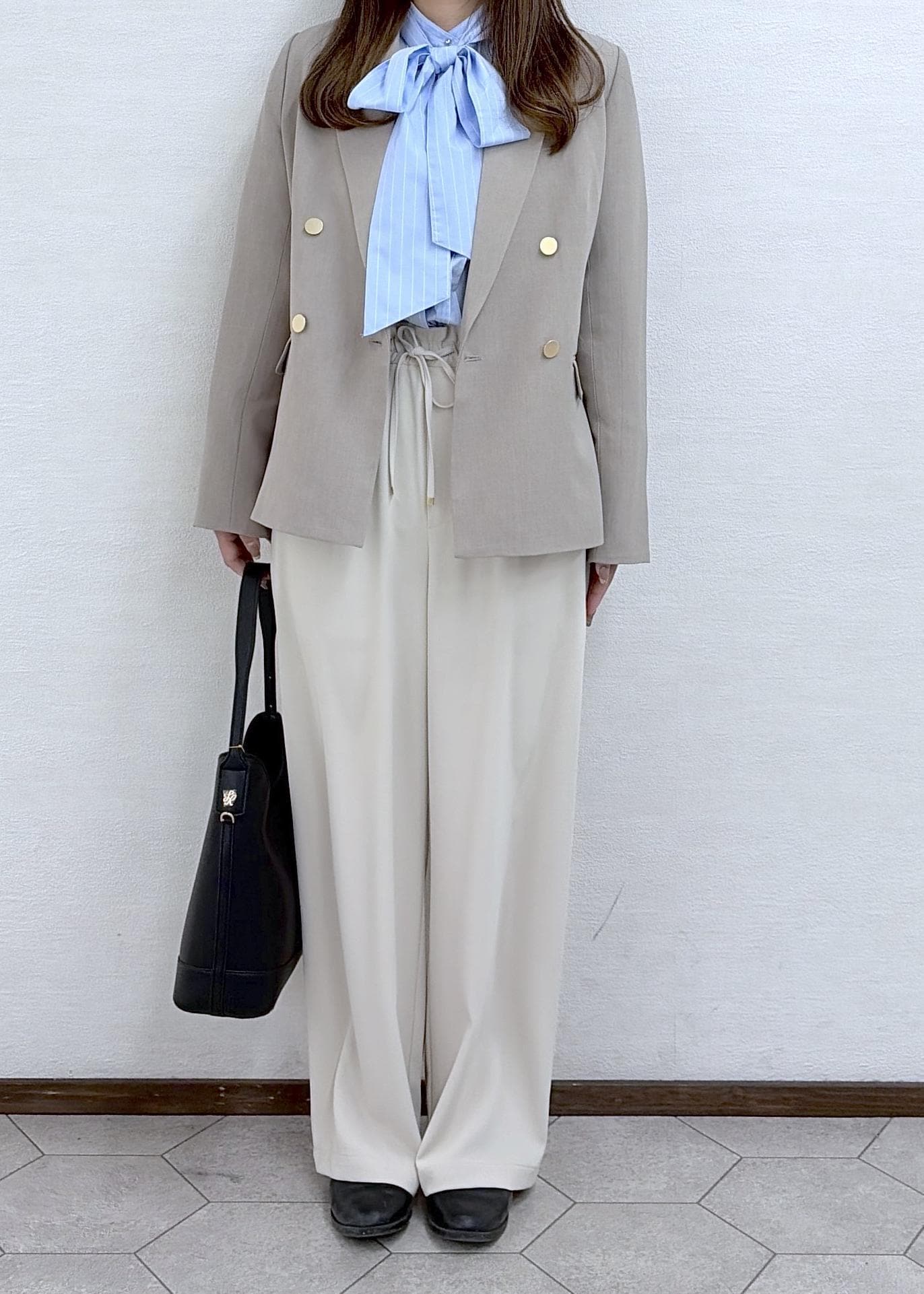 ROPÉ PICNICボウタイリボンシャツ/花粉ガード・防シワサックス / F¥5,995レビューリボンは取り外し可能。ブラウスはゆったりとしたサイズ感。