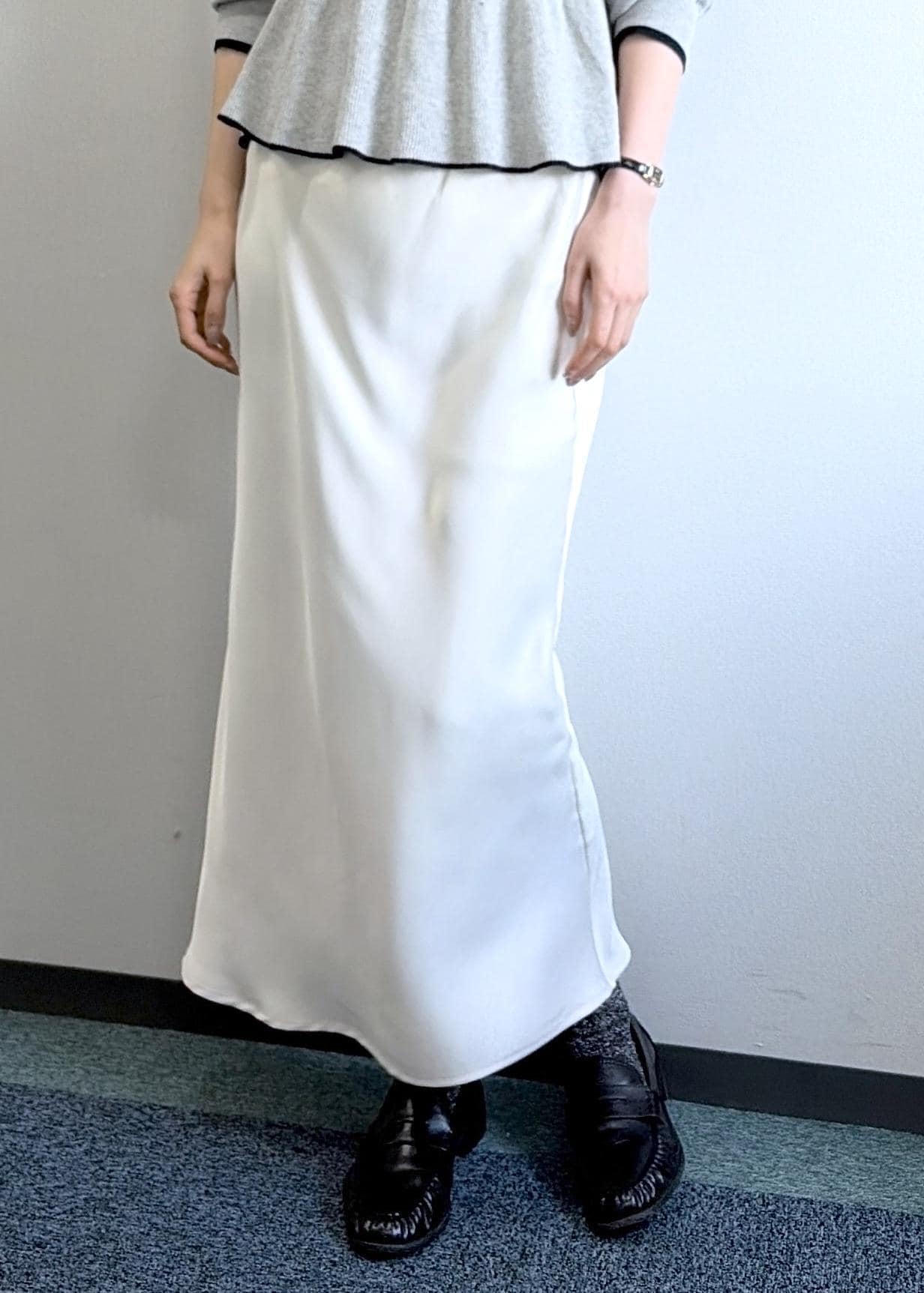 2BUY10%OFFROPÉ PICNIC細見えバイアスサテンスカート/イージーケアオフホワイト / F¥6,490レビューさらりとオチ感ある素材なので、柔らかな動きが女性らしいスカートです。ストレッチが効いているのでフィット感はありますが楽な履き心地です。