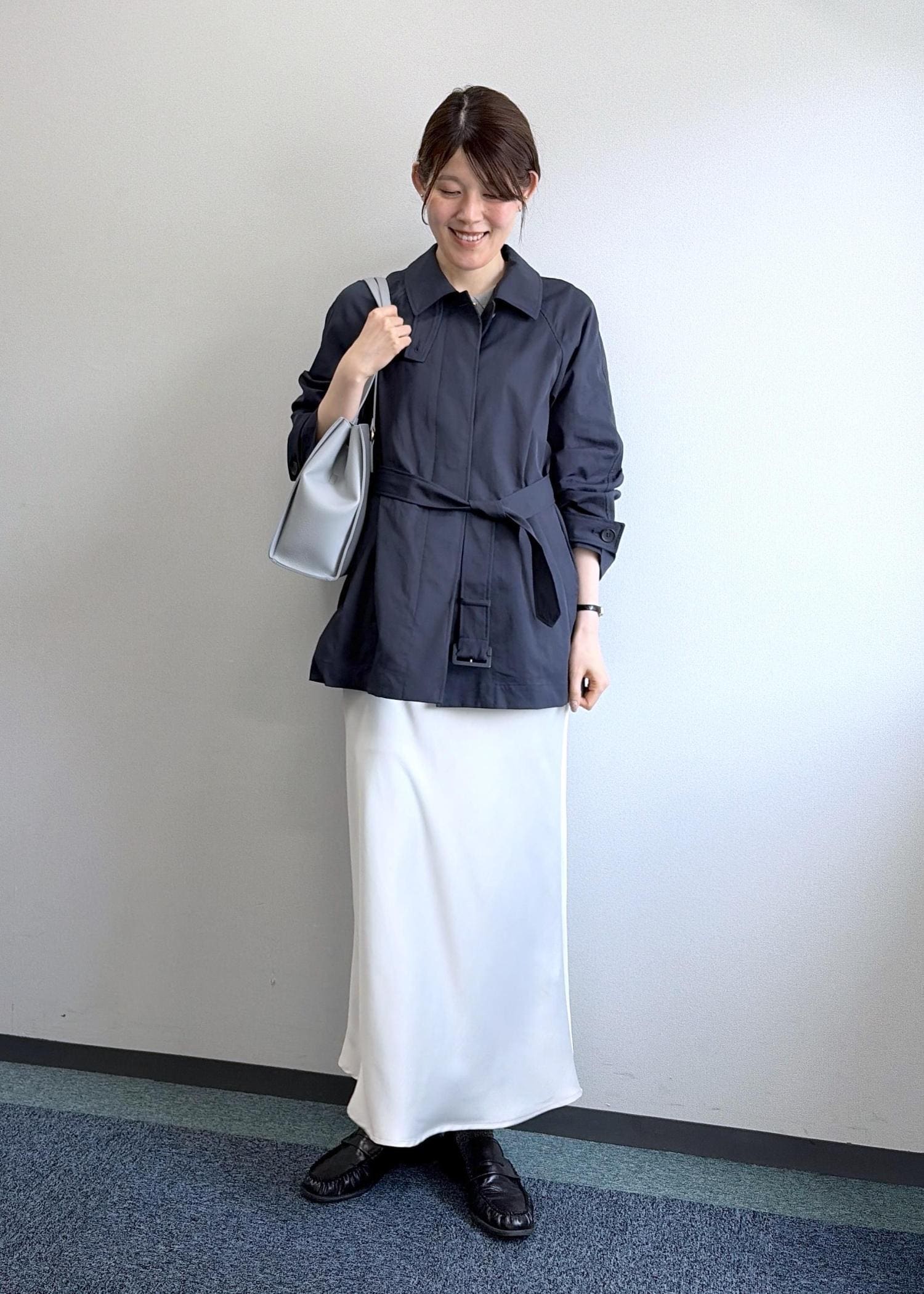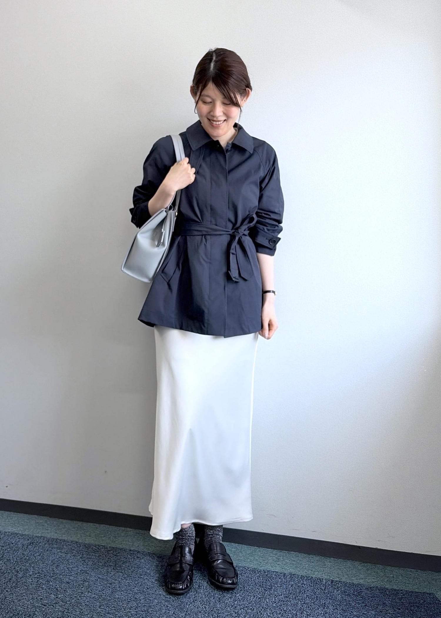 NEW! 2BUY10%OFFROPÉ PICNICミドル丈ステンカラーコート/花粉ガード・撥水ネイビー / F¥11,880レビュー腰回りまで隠れる長さで、身幅や腕周りも程よくゆとりを持って着られるサイズです。裏地が無いので、長い期間着られるデザインです。