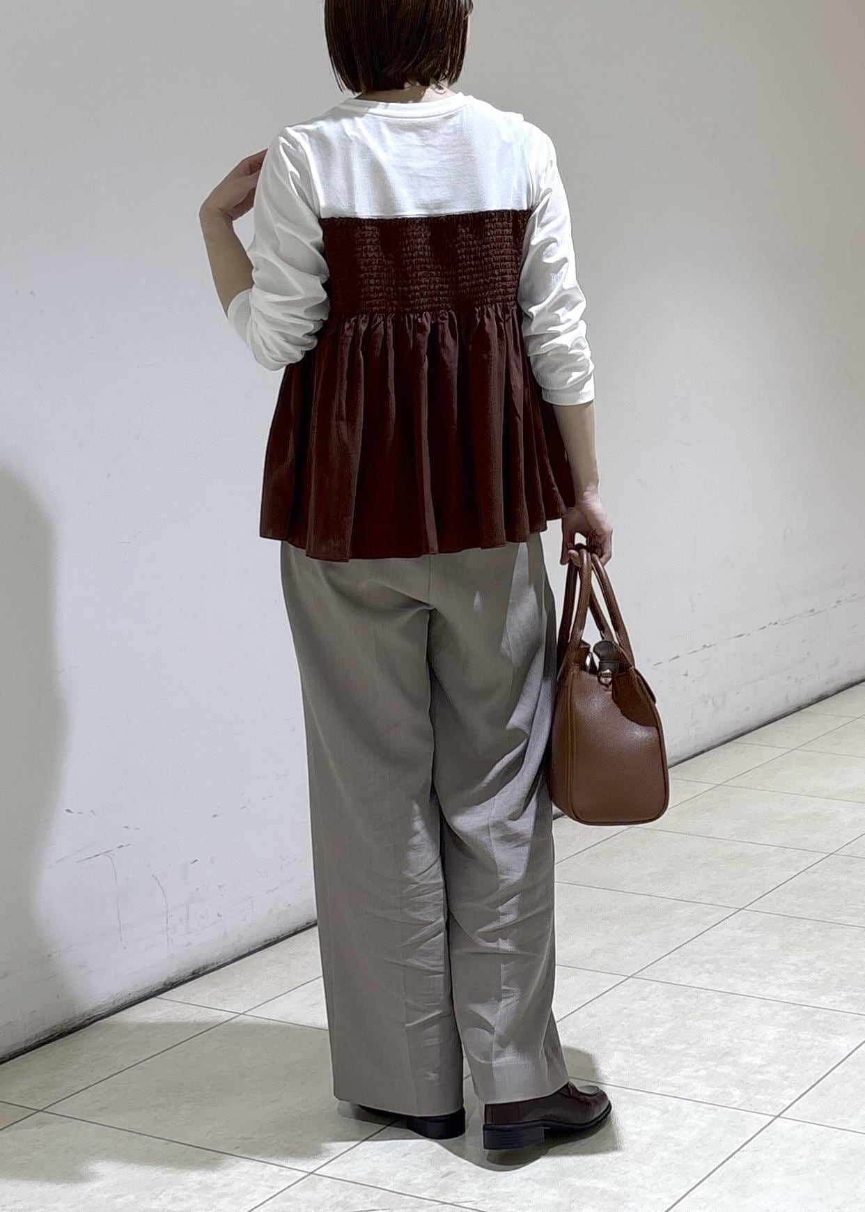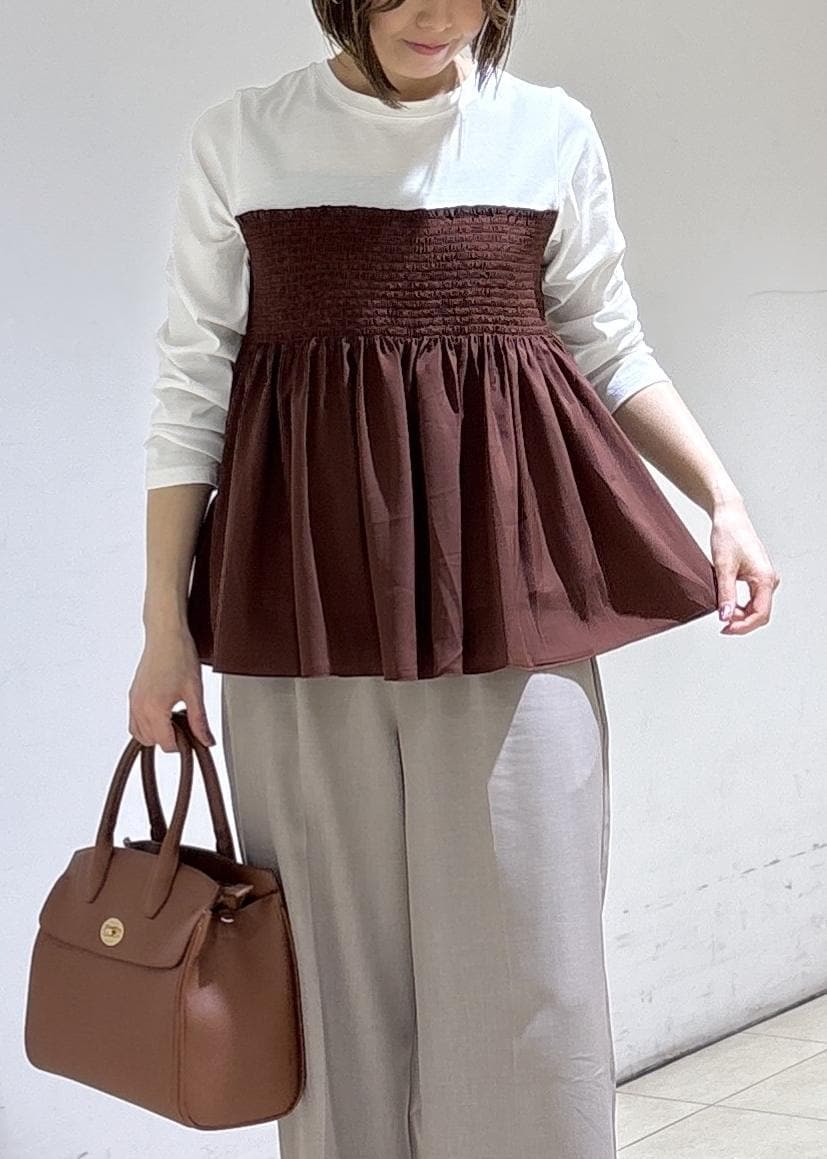 ROPÉ PICNICシャーリングビスチェ風ドッキングロングスリーブカットソー/リンクコーデダークブラウン系 / F¥4,499レビューほどよくゆとりがありシャーリング部分は締め付け感無く着用できました!ふわっとした柔らかな素材感でとても軽い着心地でした。