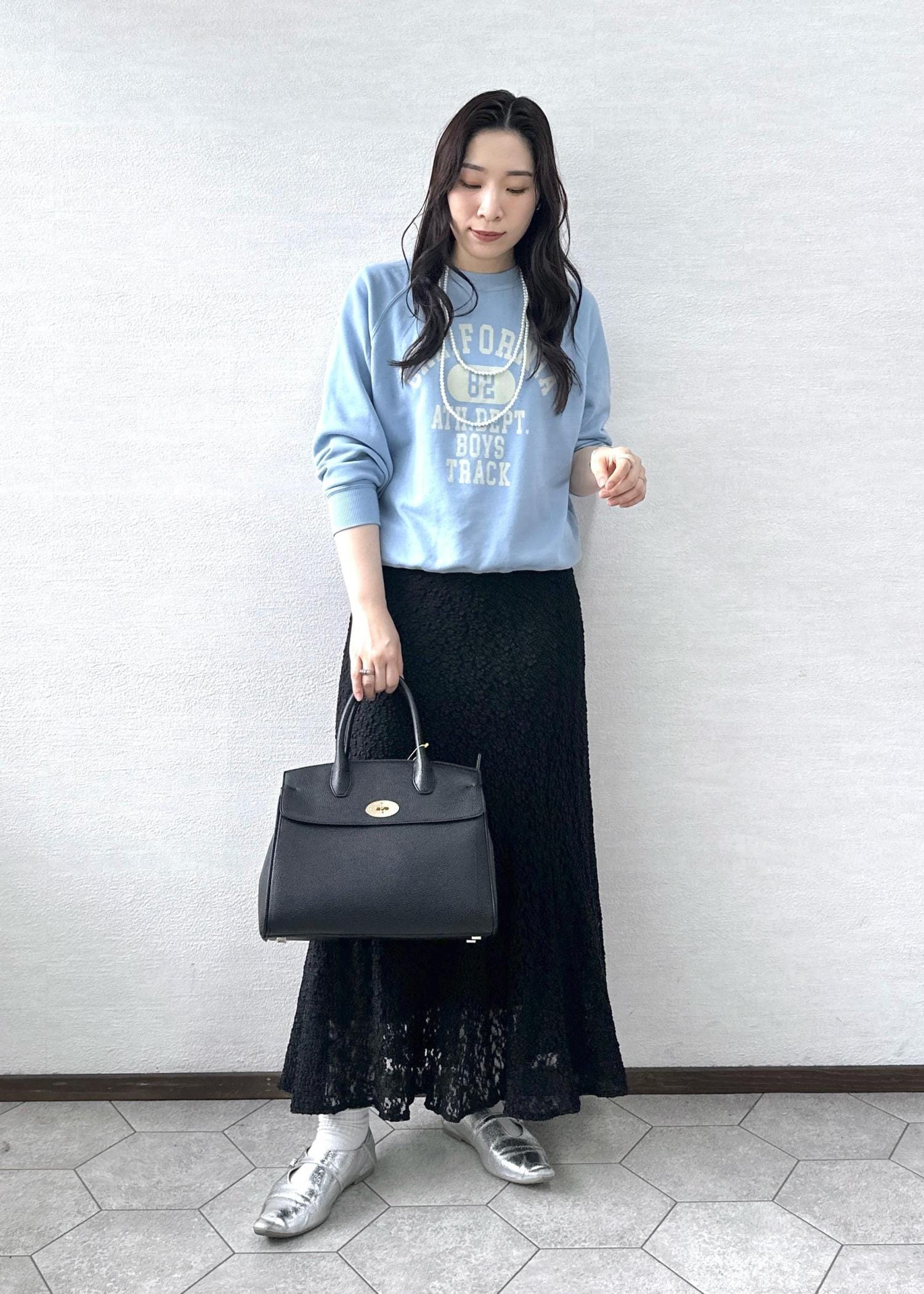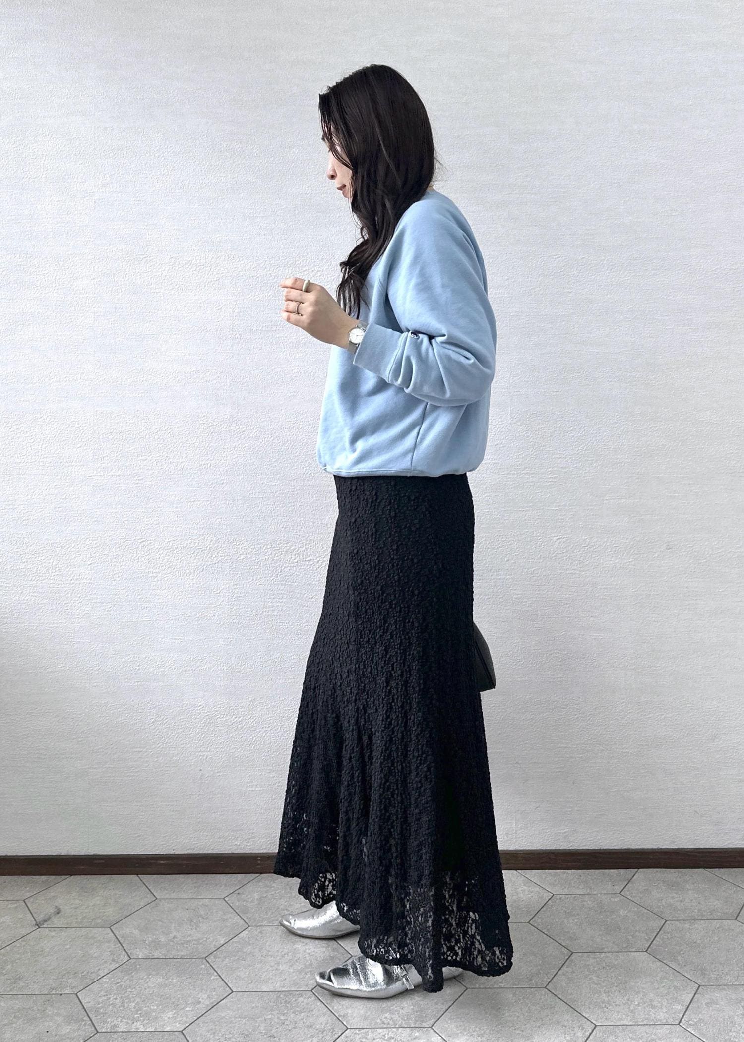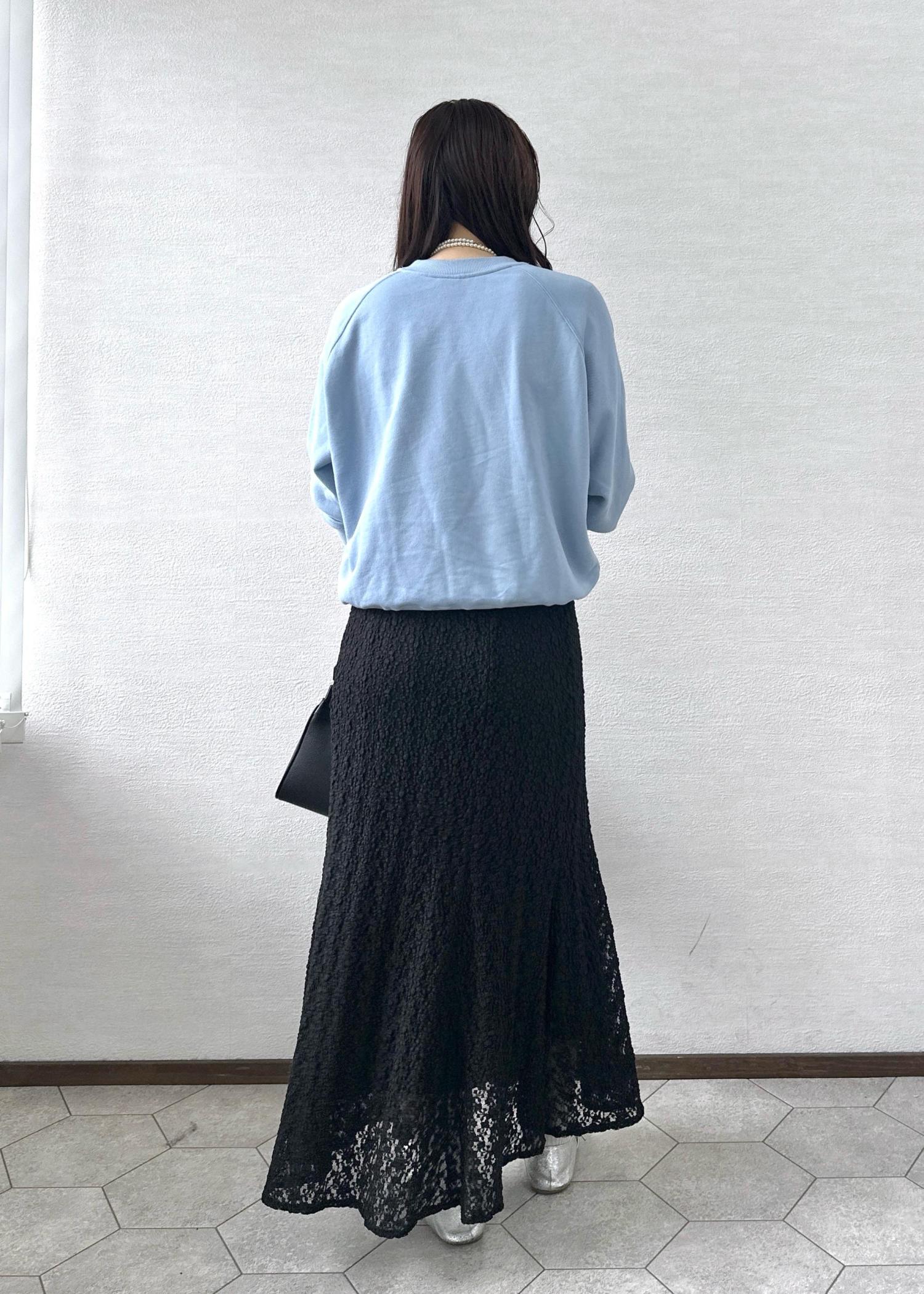 スウェットに大人っぽいレースを合わせて女性らしさをプラスしました♩