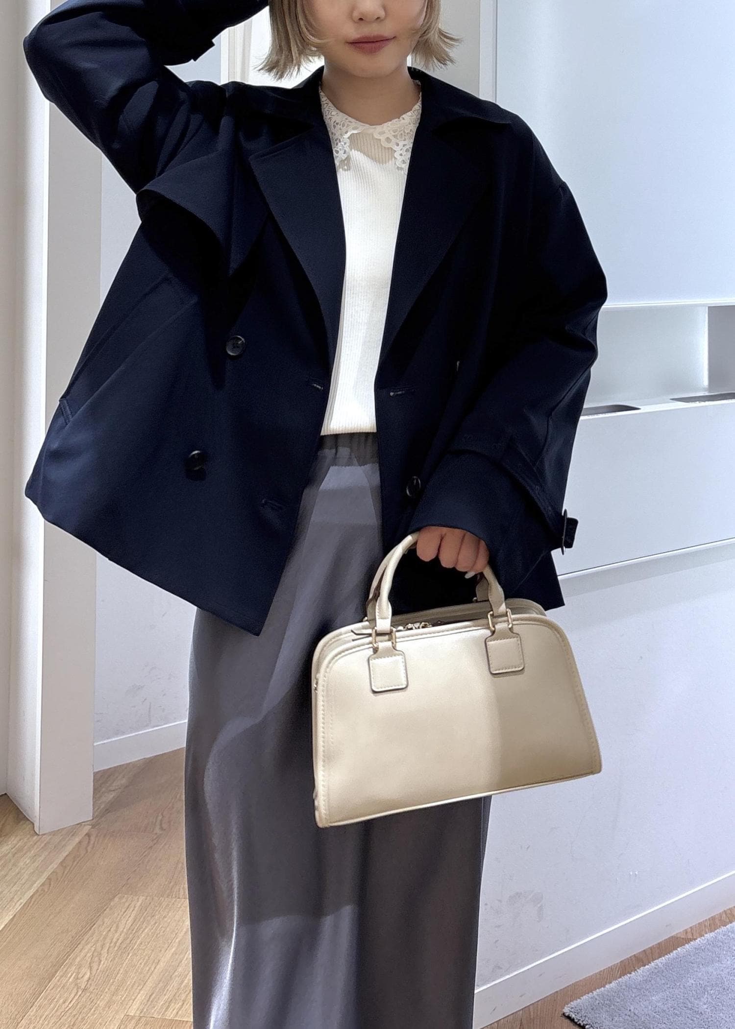 ROPÉ PICNICショート丈トレンチコート/撥水・花粉ガードネイビー / F¥13,200レビューゆとりのあるサイズ感なので、中にニットを着ても着膨れしないです。