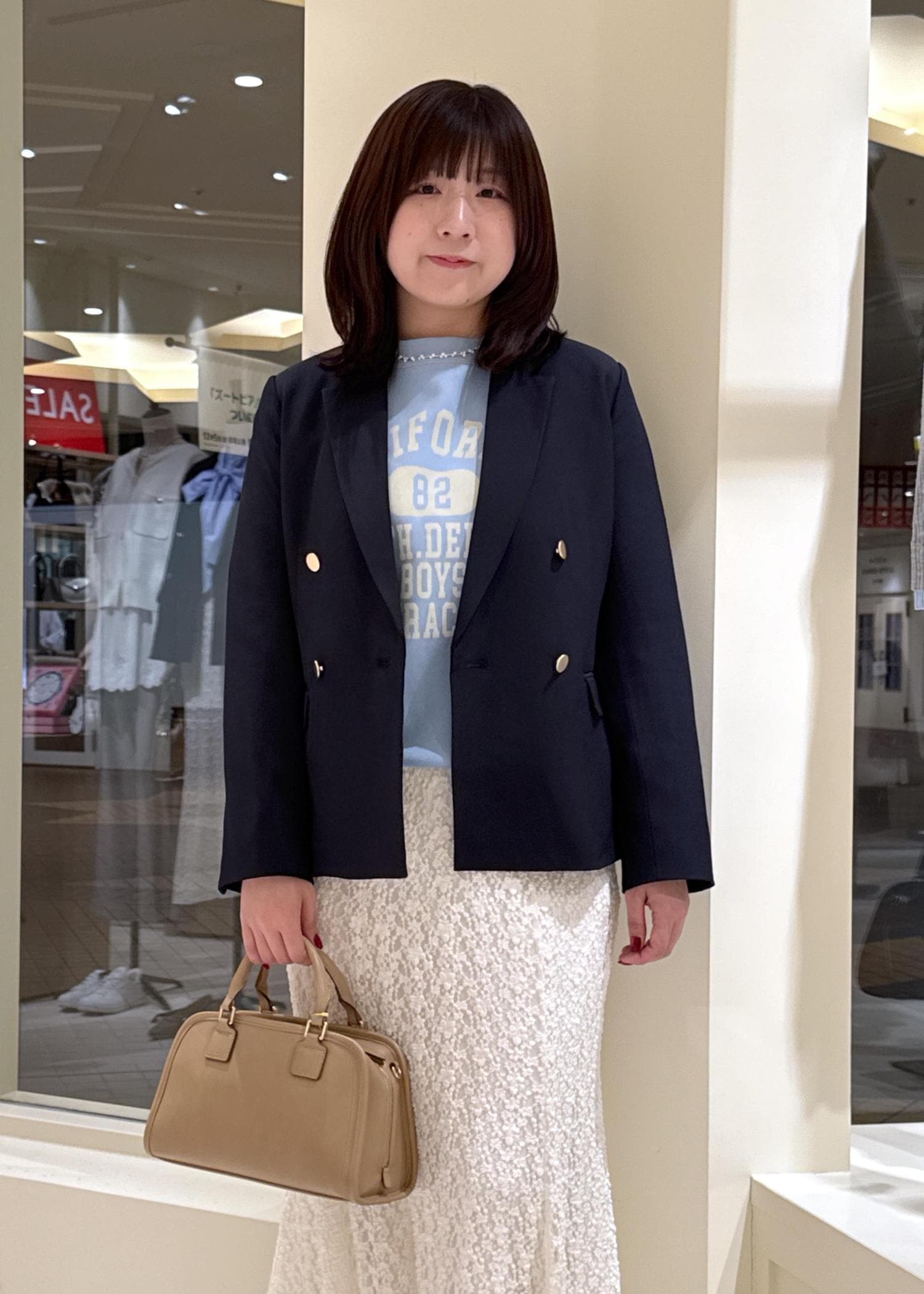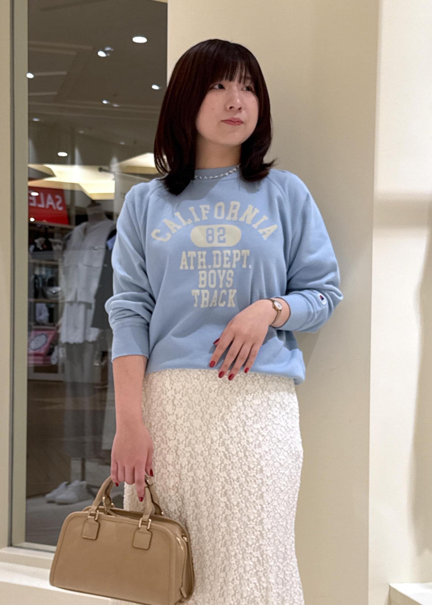 ただ、私はぽっこりお腹は気になるので、体型カバーできるようにインしないトップスで合わせます。 -