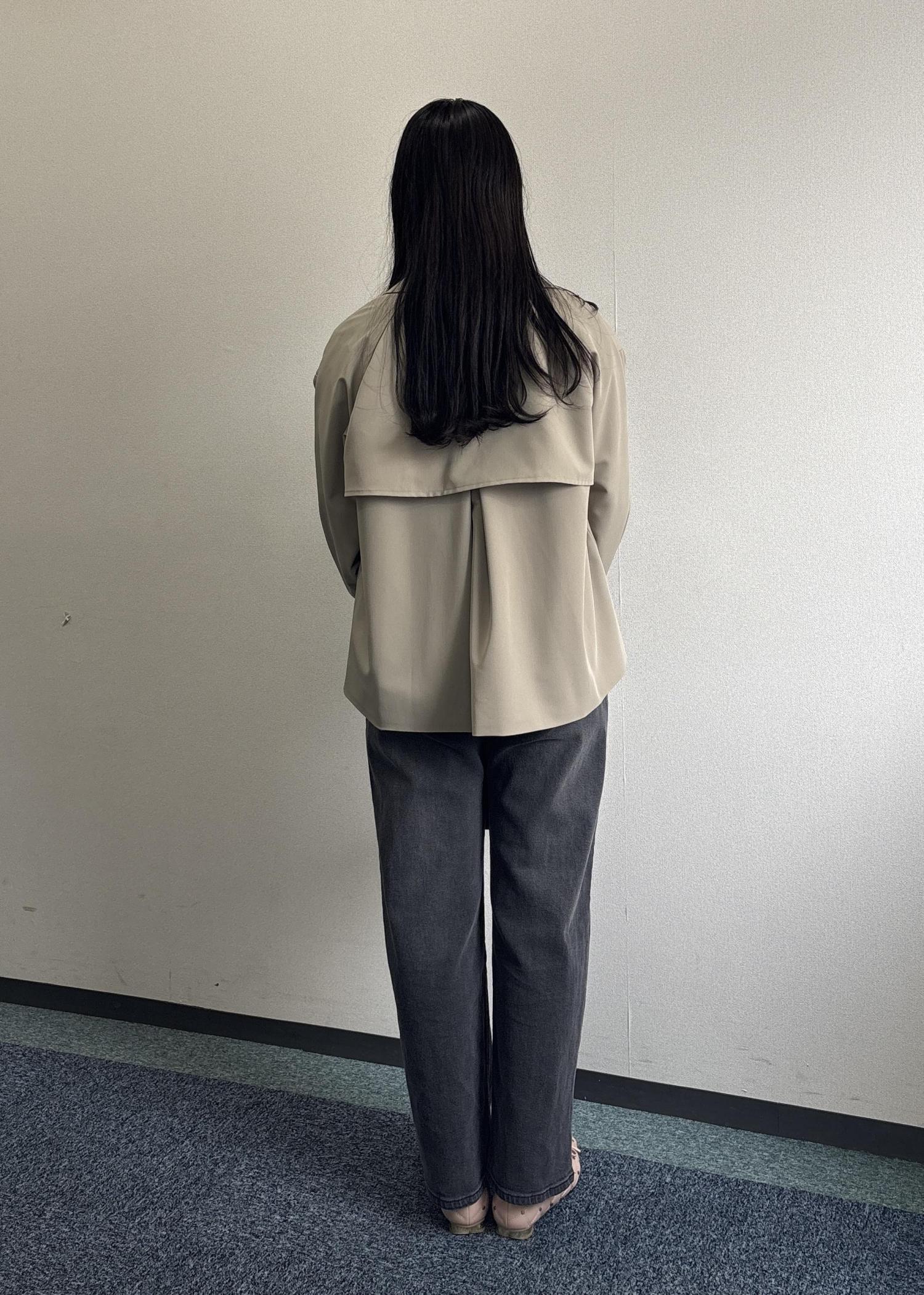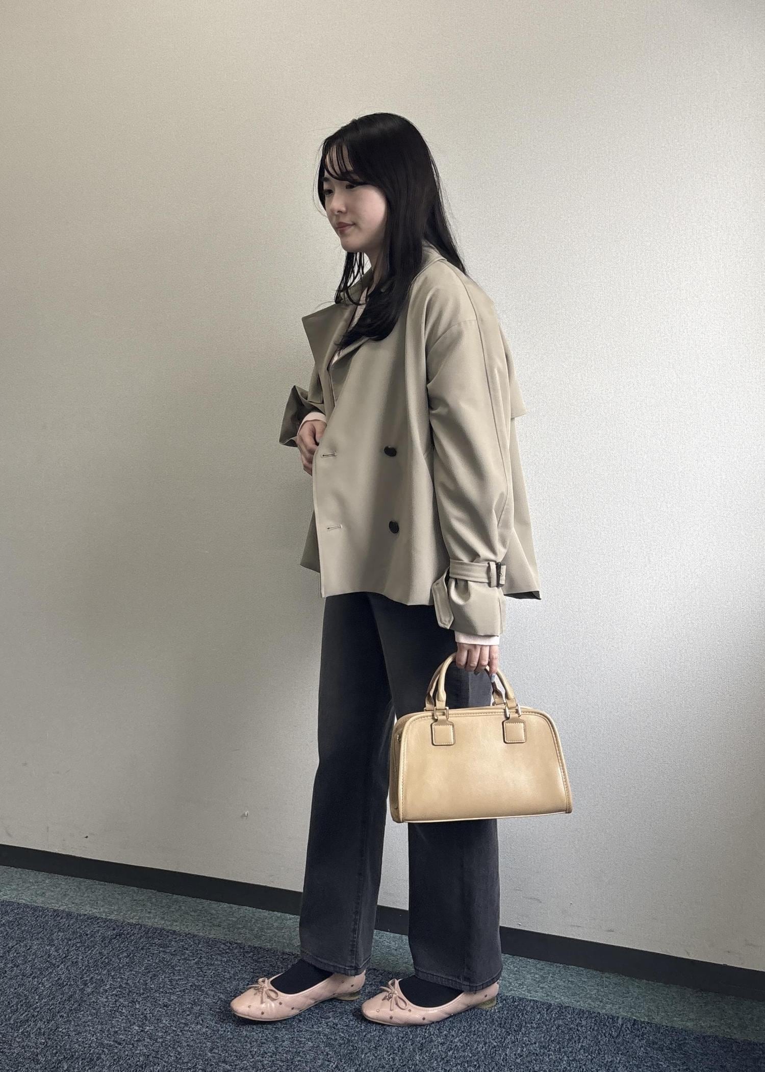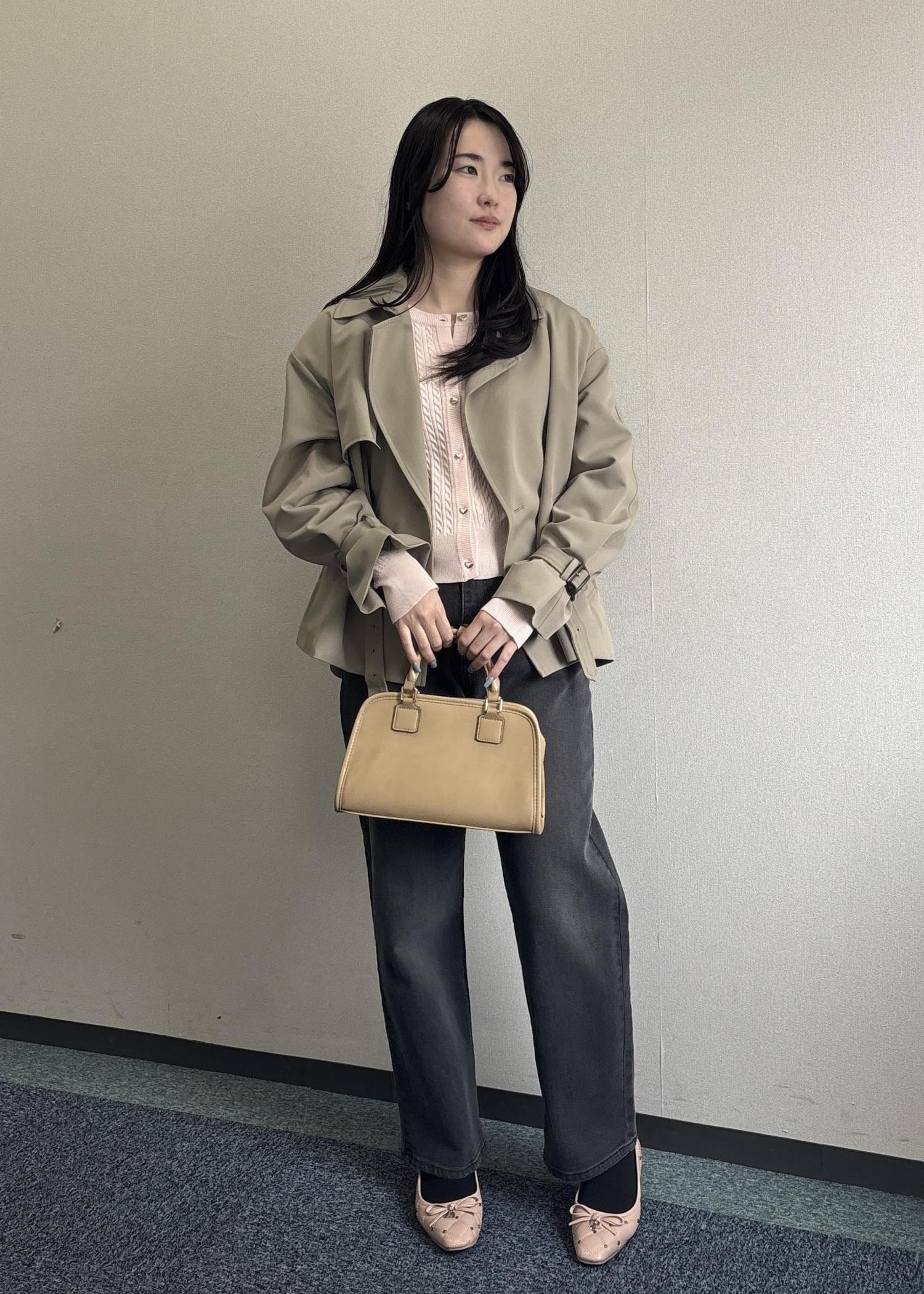 厚手トップスの上からさらっと羽織ることが出来るショートトレンチアウターが登場。