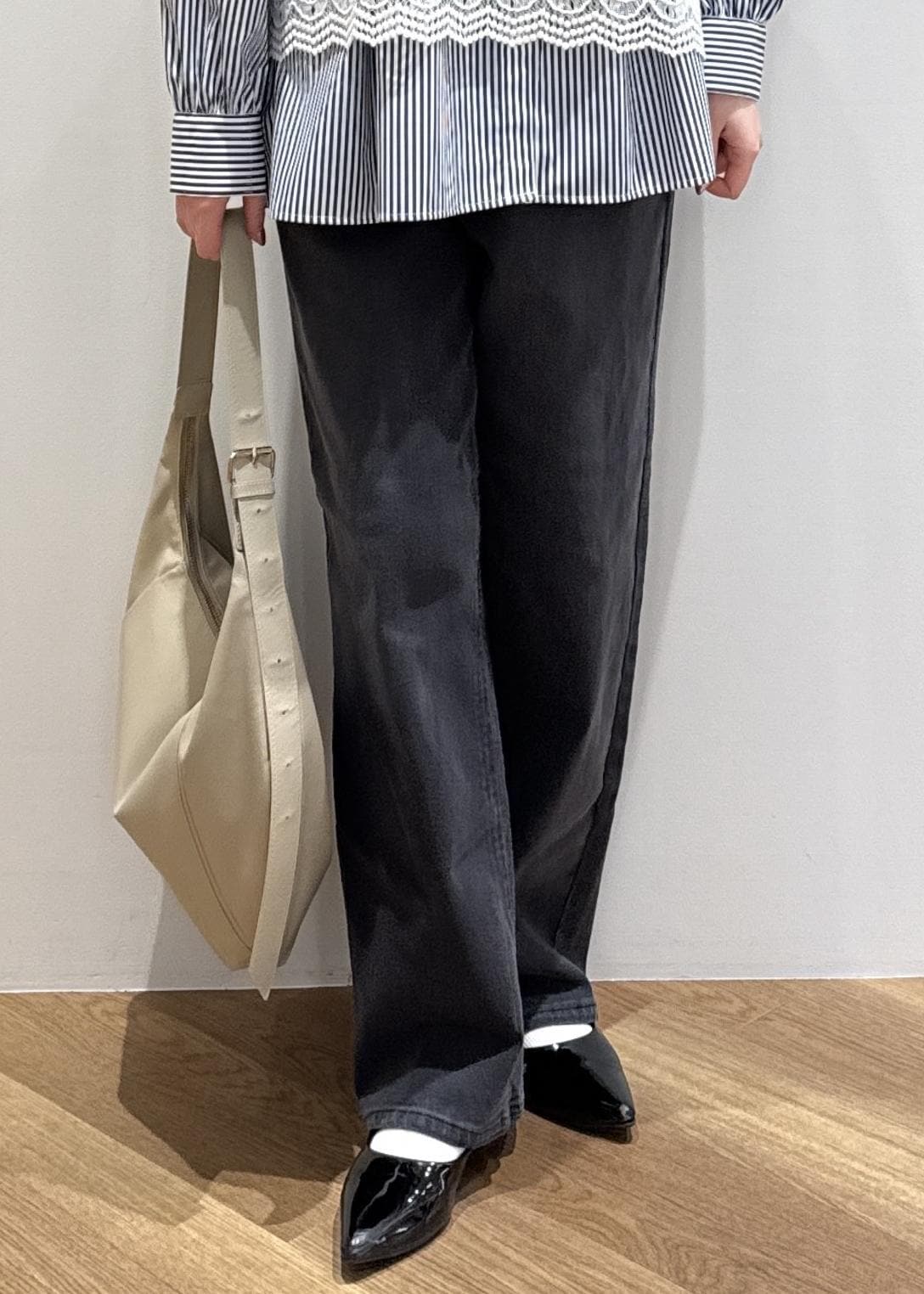 ワイドテーパードの形で、足首に向かって細まり過ぎていないので、脚が真っ直ぐ綺麗に見えます。 -