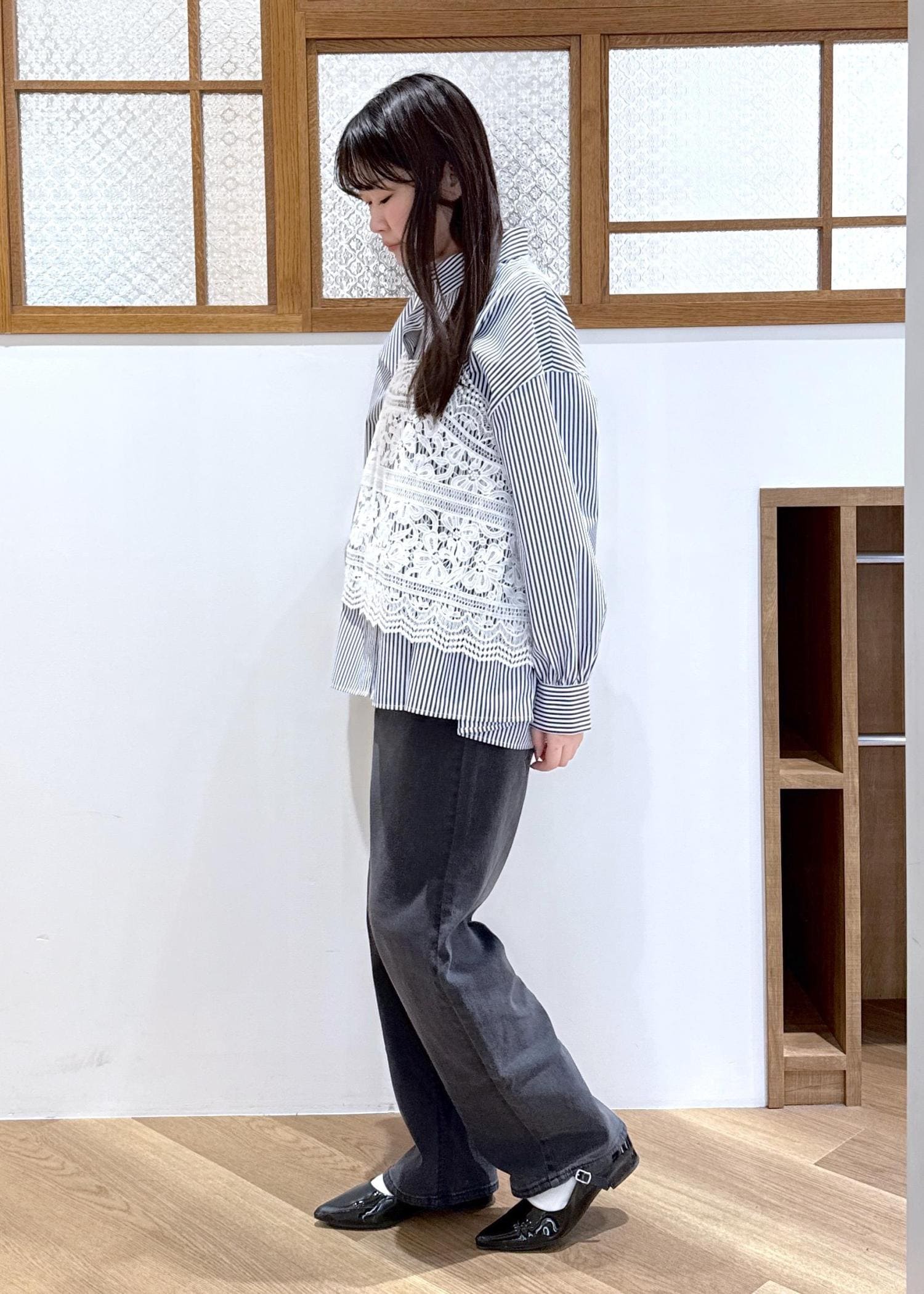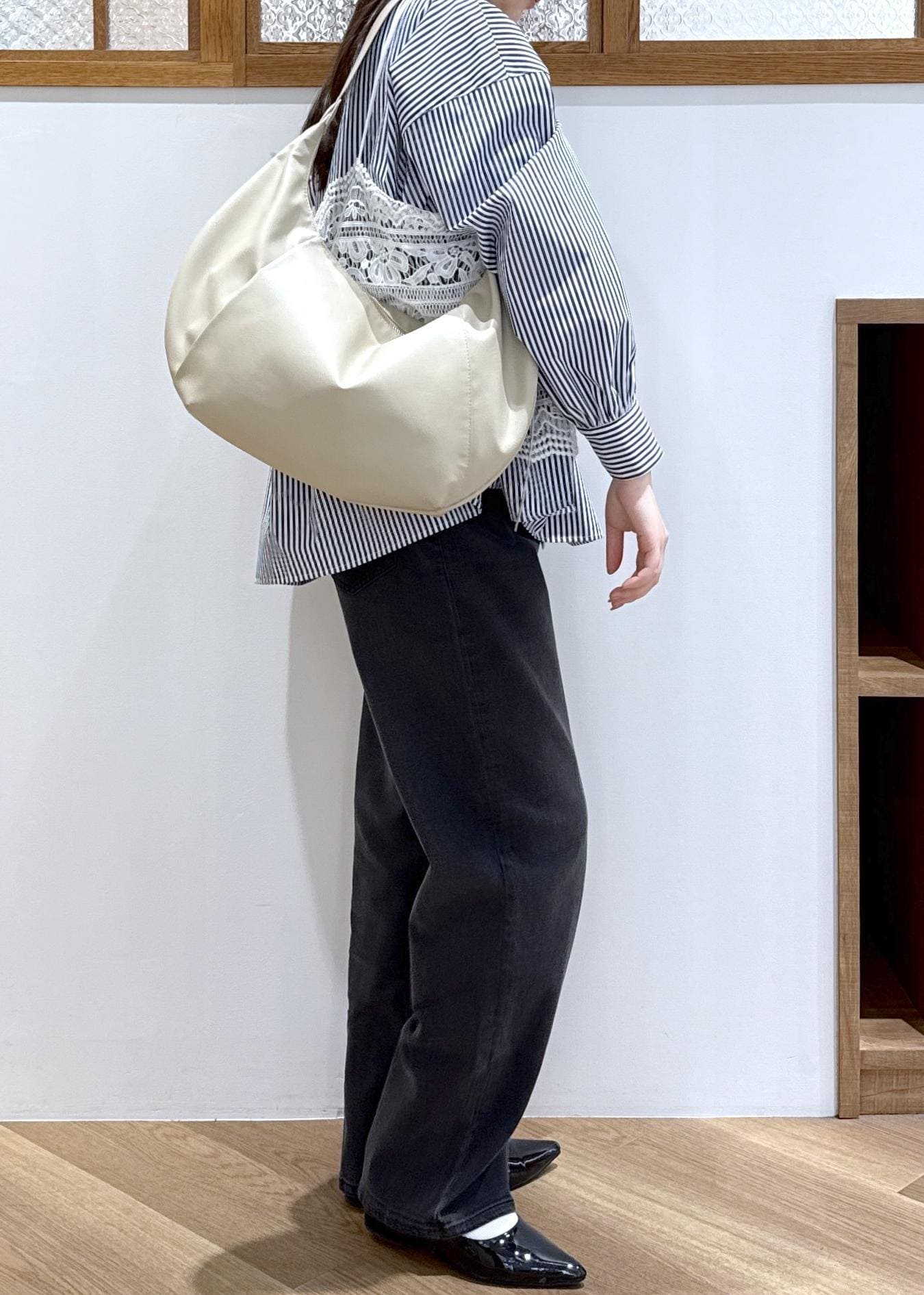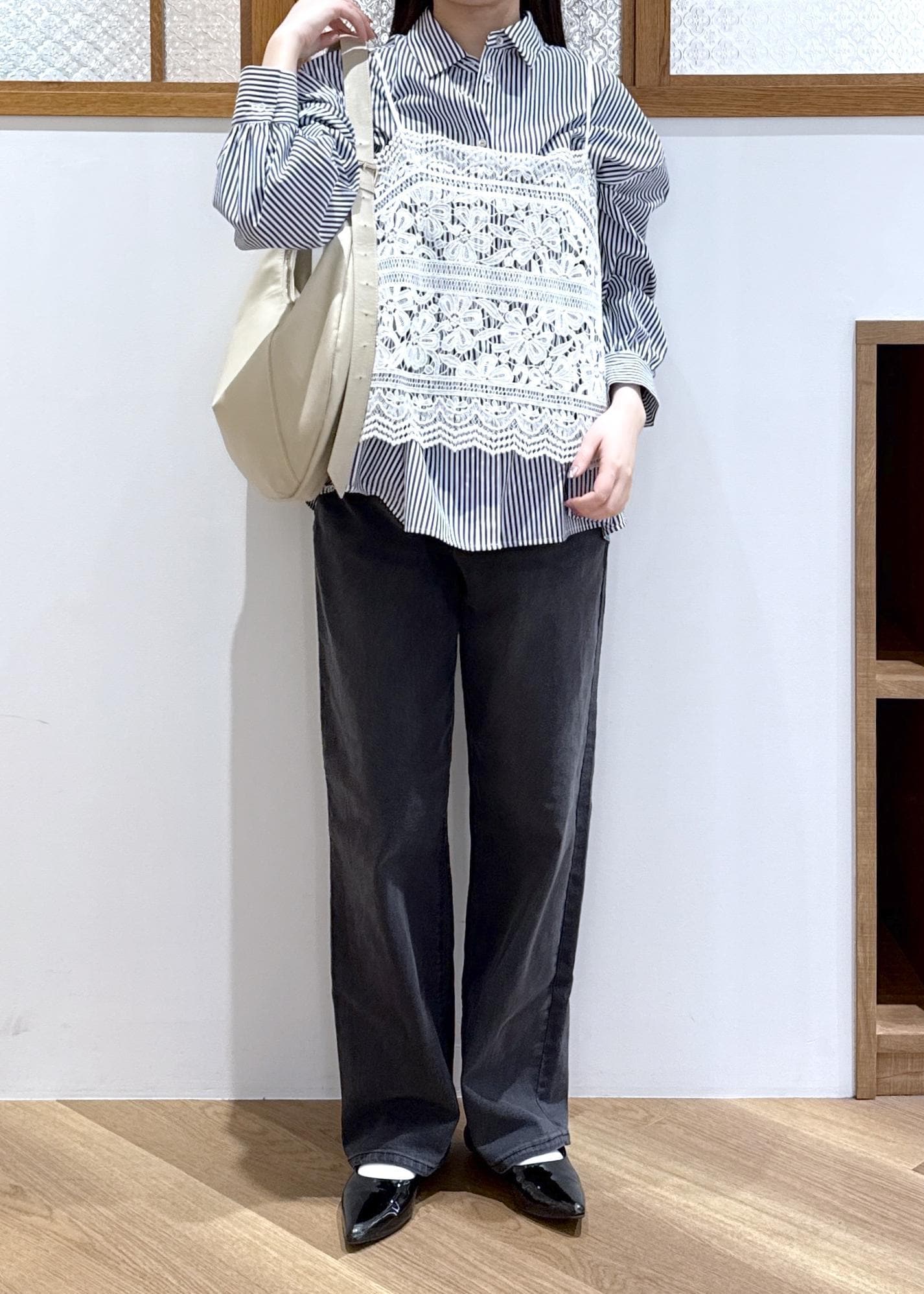 ブラックデニムを合わせて大人らしさもプラスしたのがポイントです。